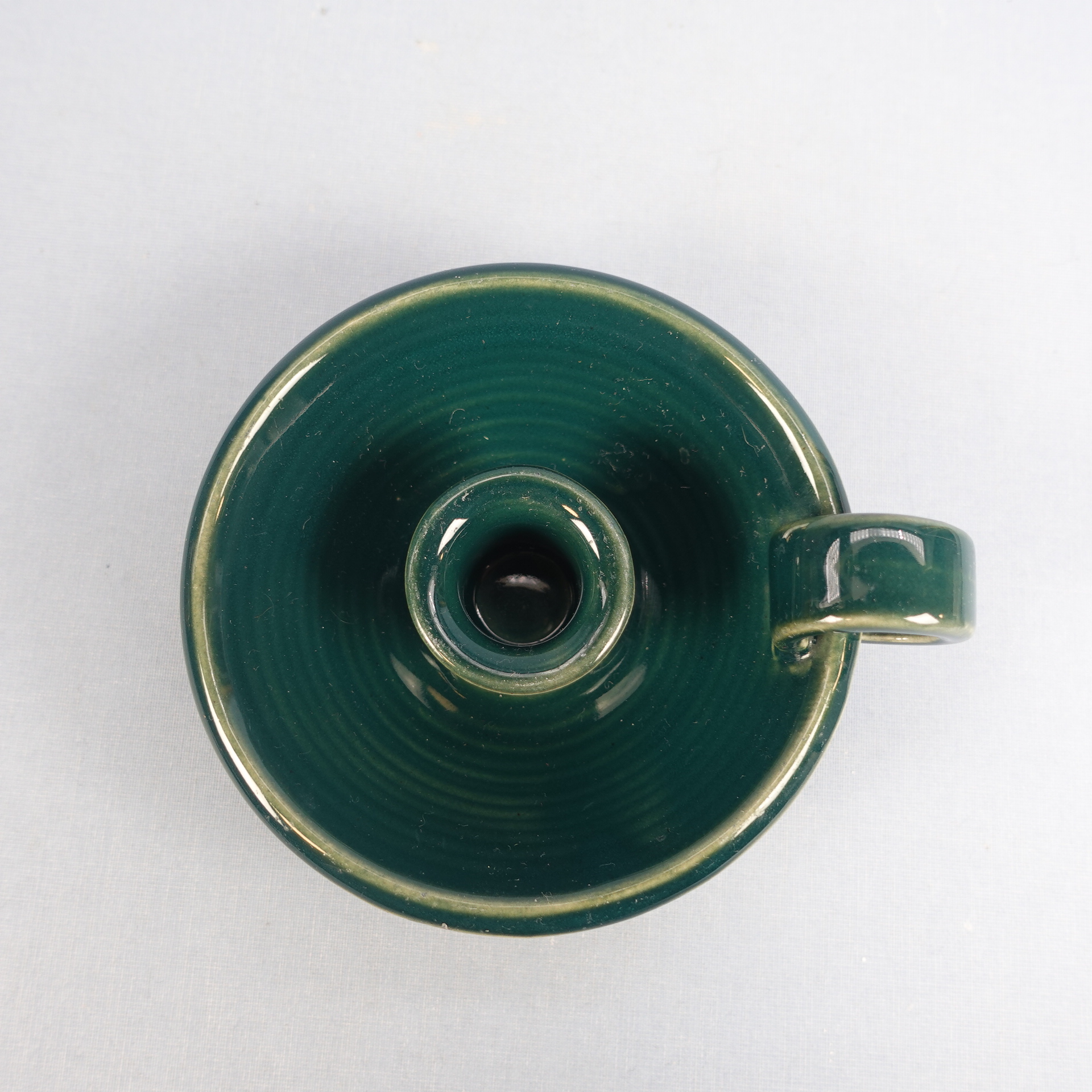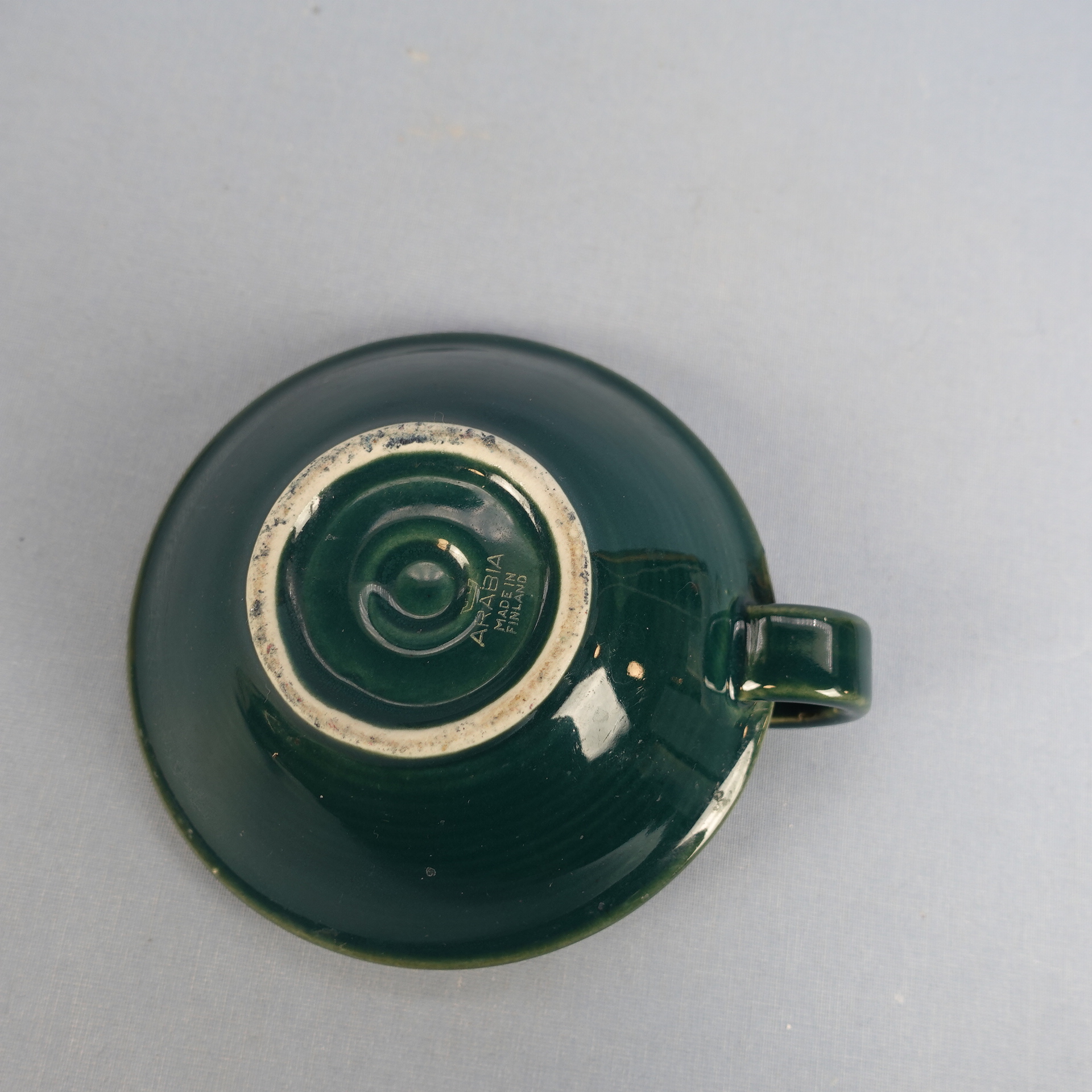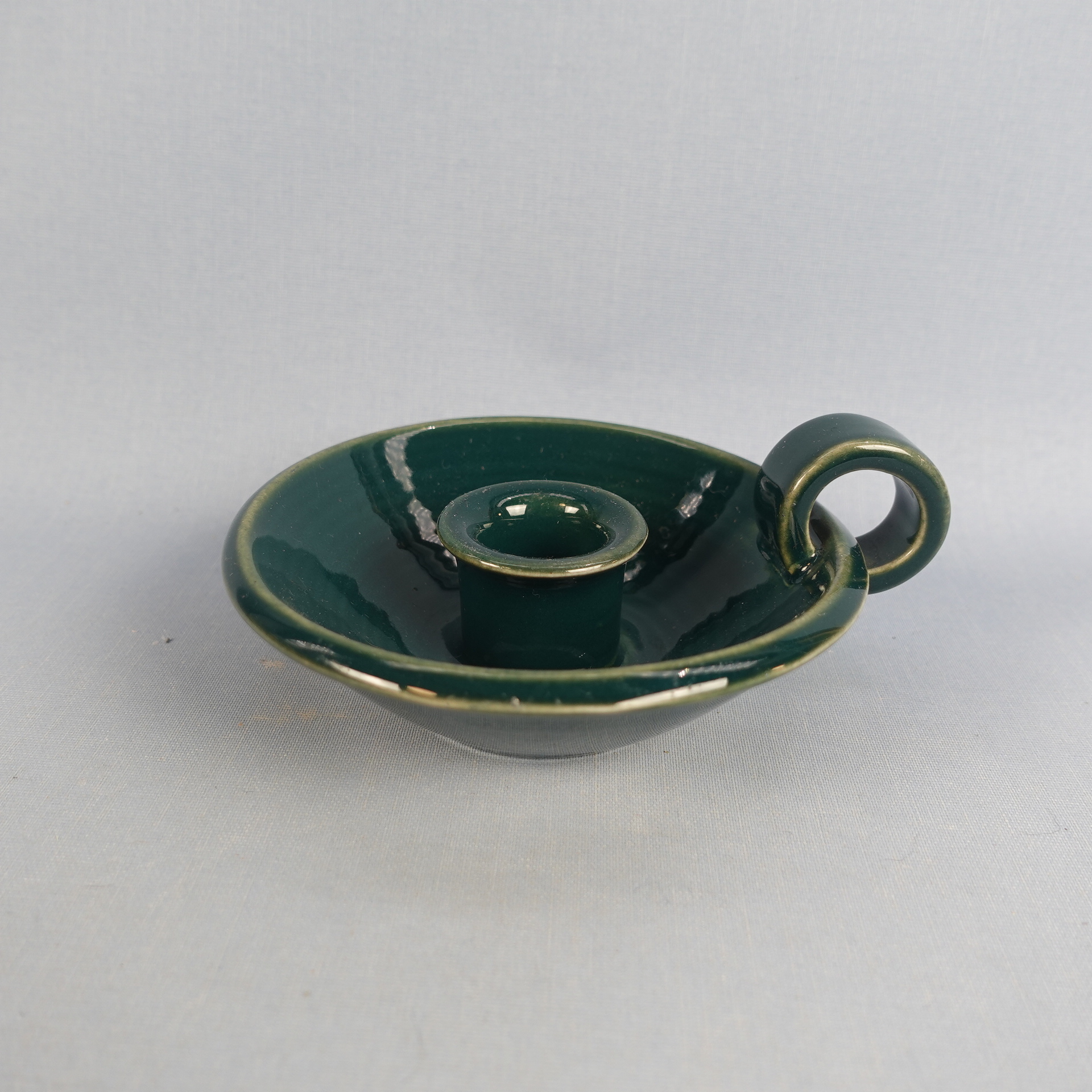 Green candlestick made by Arabia from the 1960s. The diameter of the candlestick is 12 cm and the height is 4 cm. The candlestick is intact and otherwise in good condition.