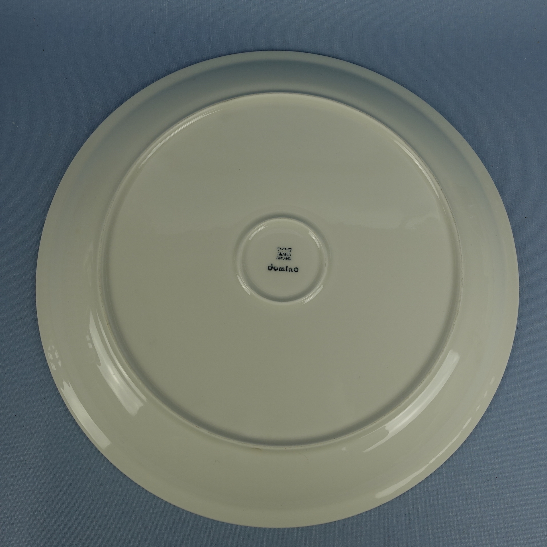 A round serving platter from the white Domino series designed by Kati Tuominen-Niittylä and Pekka Paikkari for Arabia. The series was produced from 1987-91. The diameter of the serving platter is 32 cm and the height is 3.5 cm. The platters for sale are intact and otherwise in good condition, almost unused.