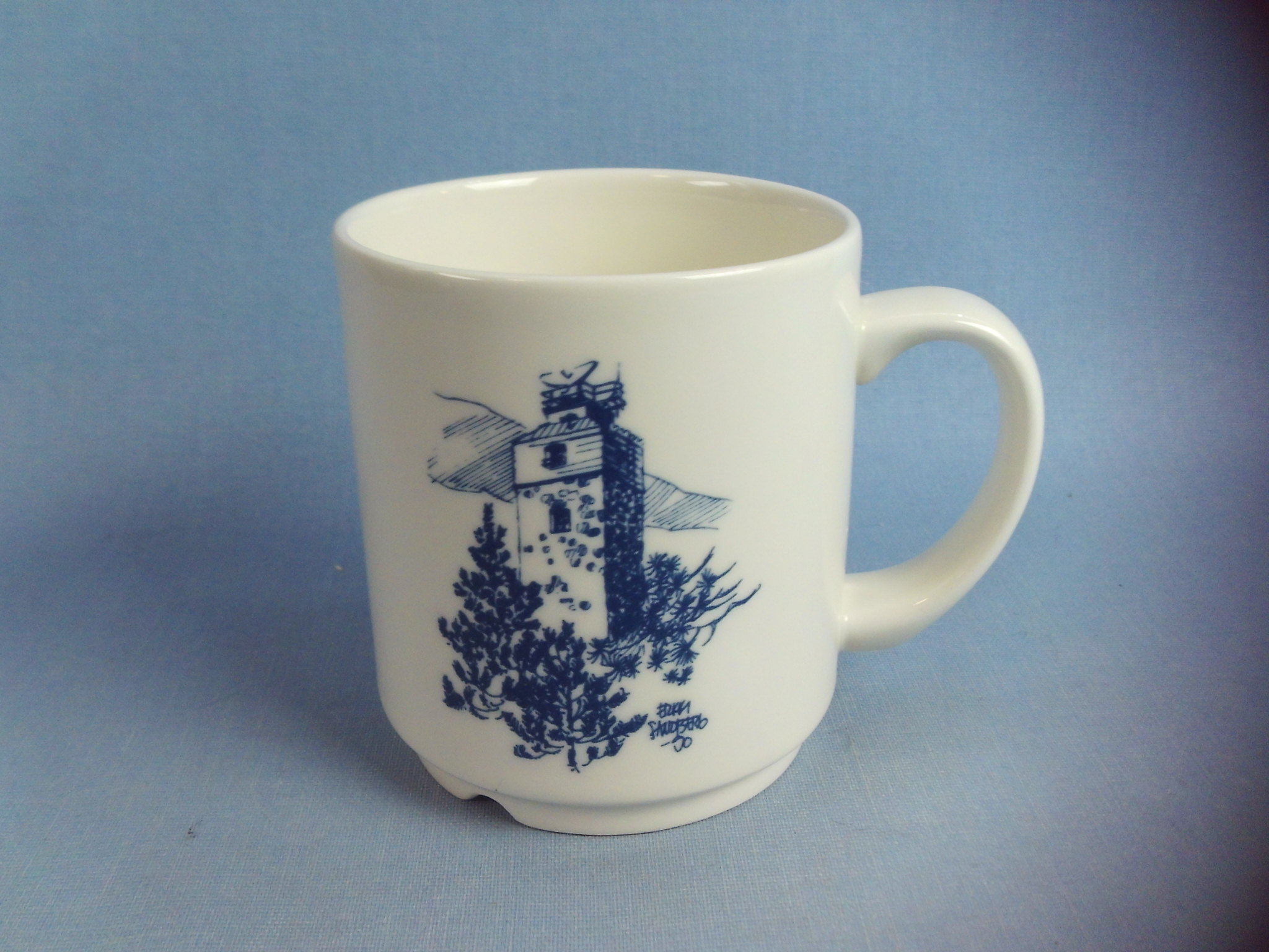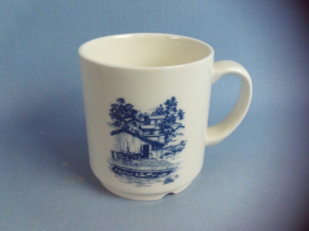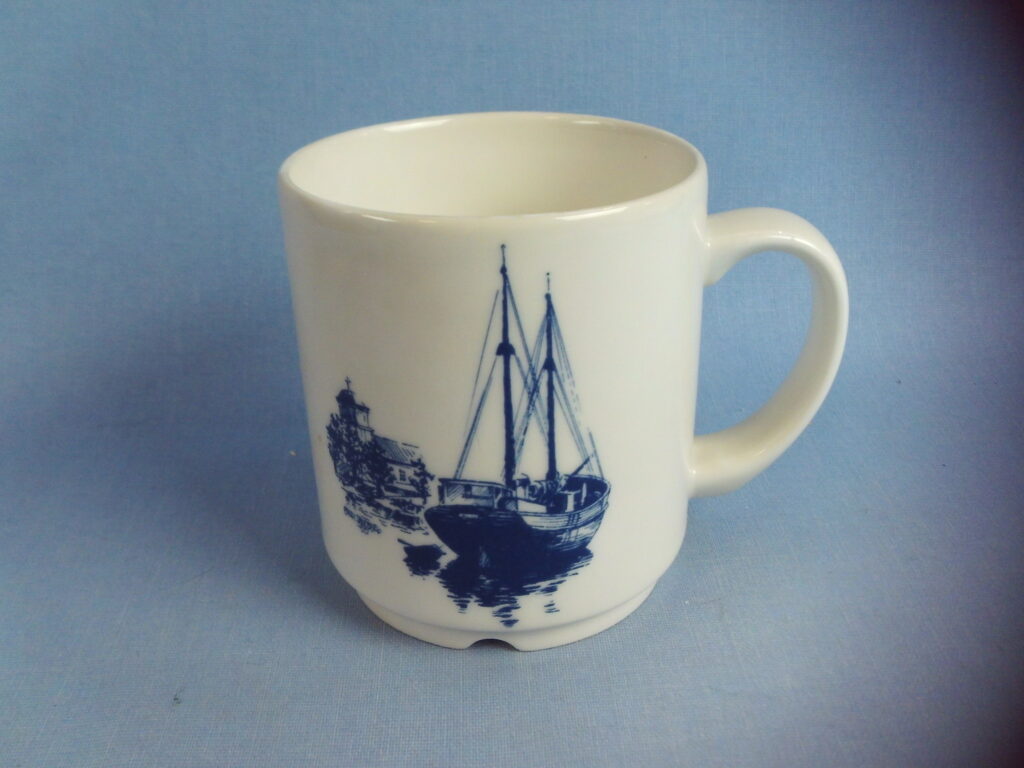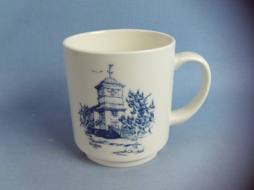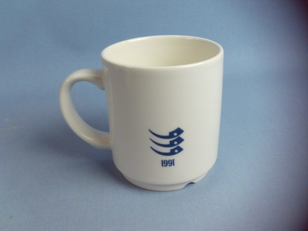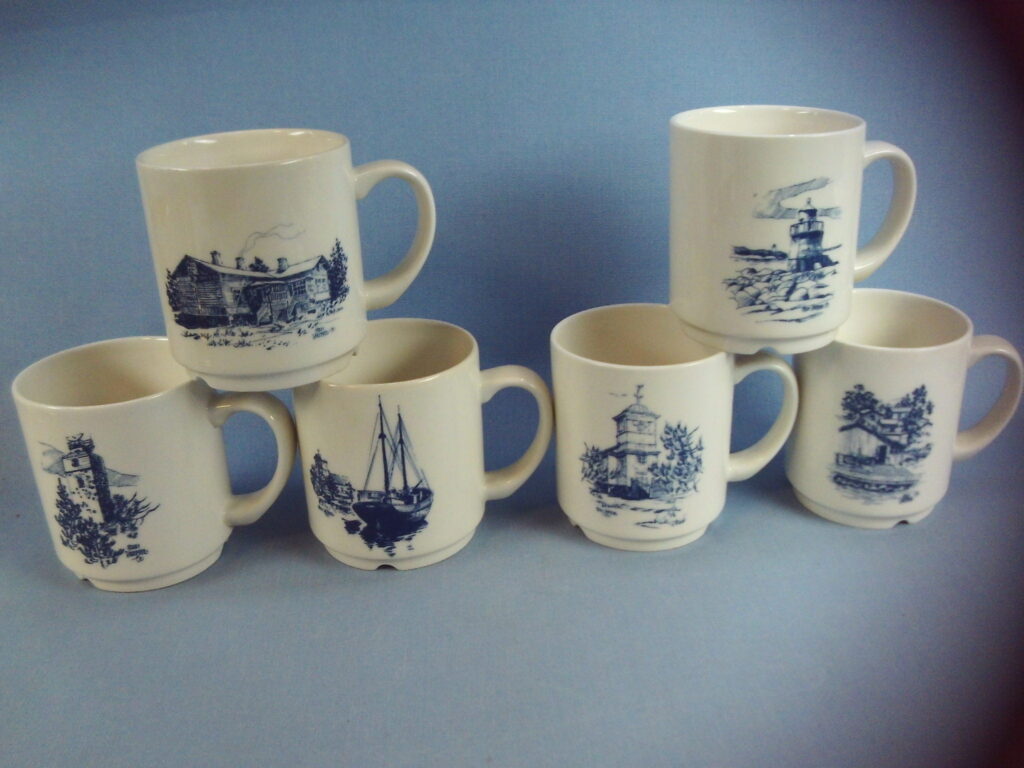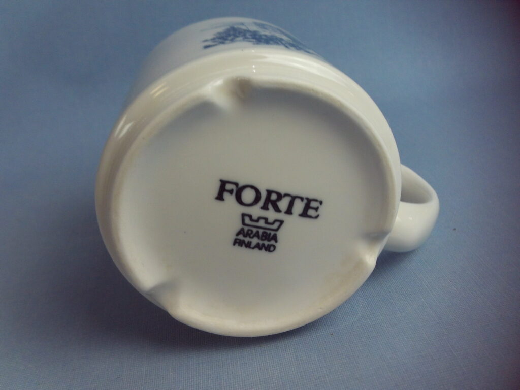 Arabia Haapasaari Association mug 6 pieces of different types. Volume 0.3 l. The mugs were made to order for the Haapasaari Association in 1990-1995. Decoration Erkki Sandberg. The year on the back of the mug. The mug’s model is Forte. The mugs are unused in their original boxes and each mug comes with an A4-sized story related to the picture.