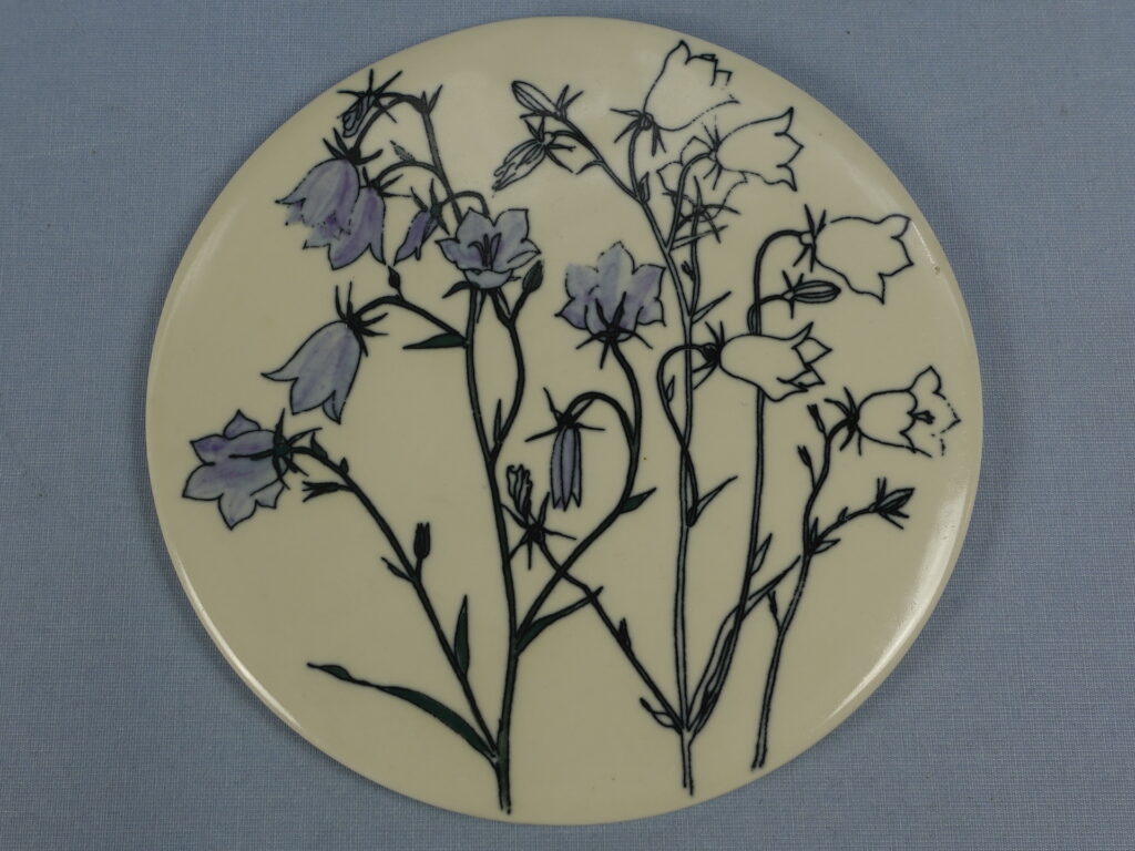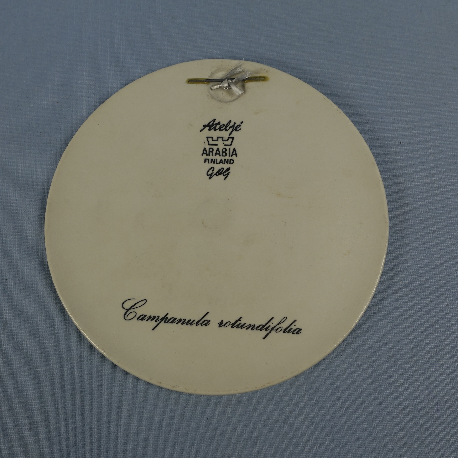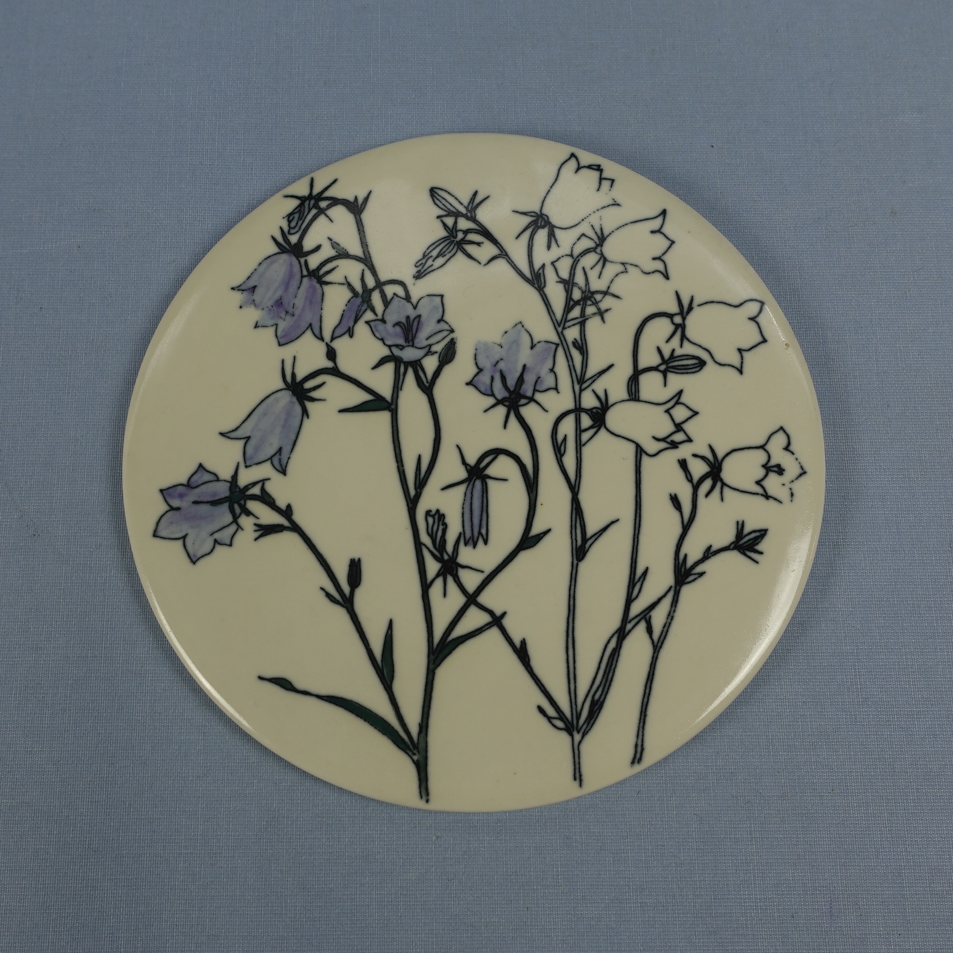 Kissankello Campanula rotundifolia wall plate designed by Gunvor Olin-Grönqvist for Arabia. The plate was made in the late 1970s. The diameter of the plate is 16.5 cm. The plate for sale is intact and otherwise in good condition.