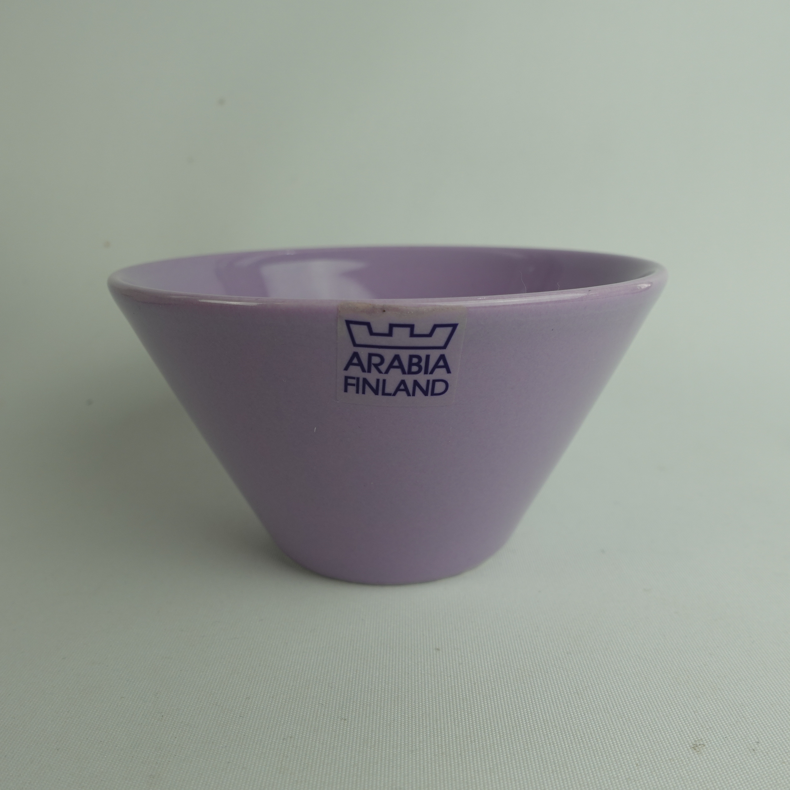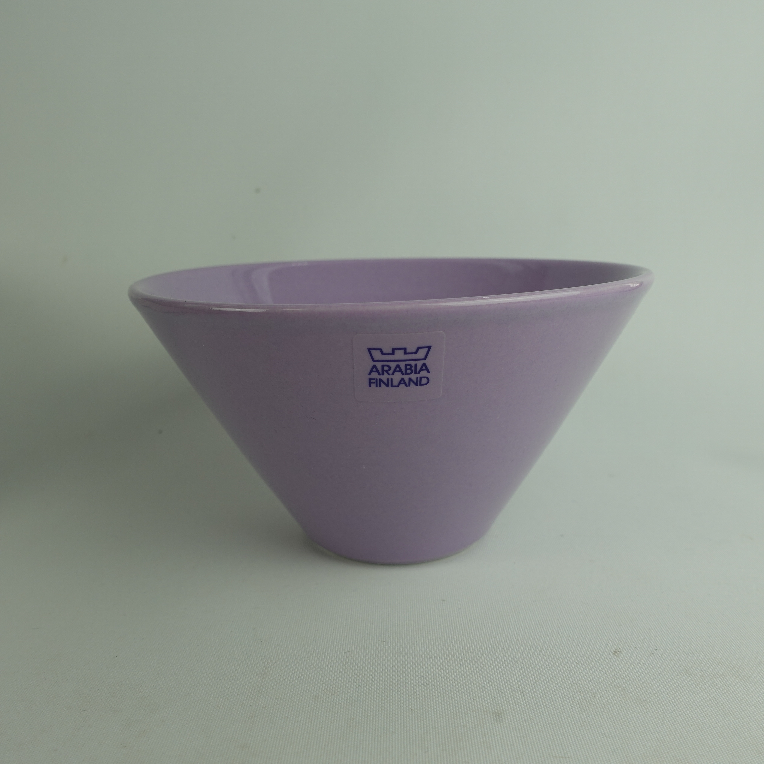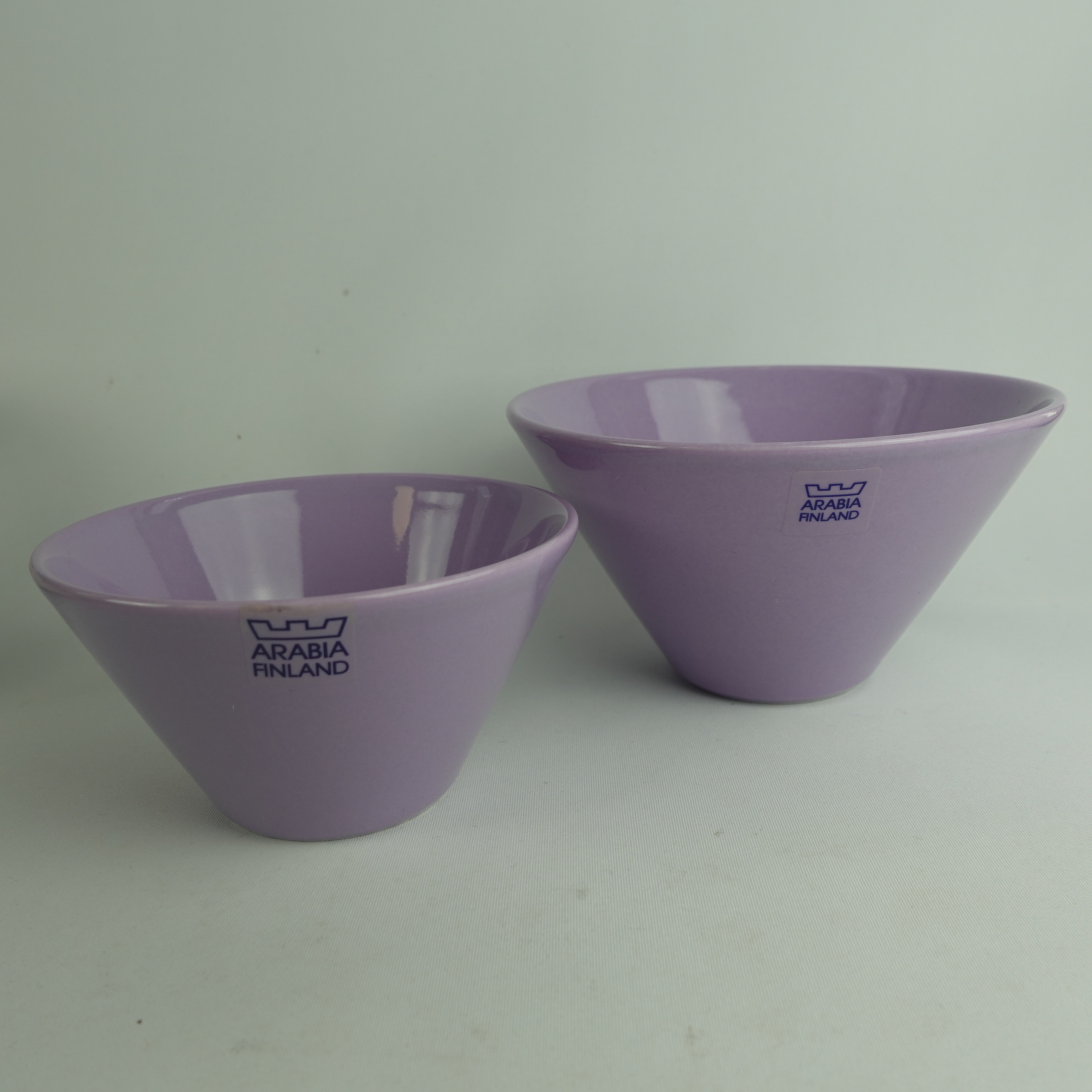 Lilac colored XS and S bowls from the KoKo series designed by Kati Tuominen-Niittylä and Kristina Riska for Arabia. The color was in production in 2008-11. The XS bowl is 6.5 cm high, 12 cm in diameter and has a capacity of 25 cl. The S bowl is 8.5 cm high, 15.3 cm in diameter and has a capacity of 50 cl. The bowls for sale are unused.