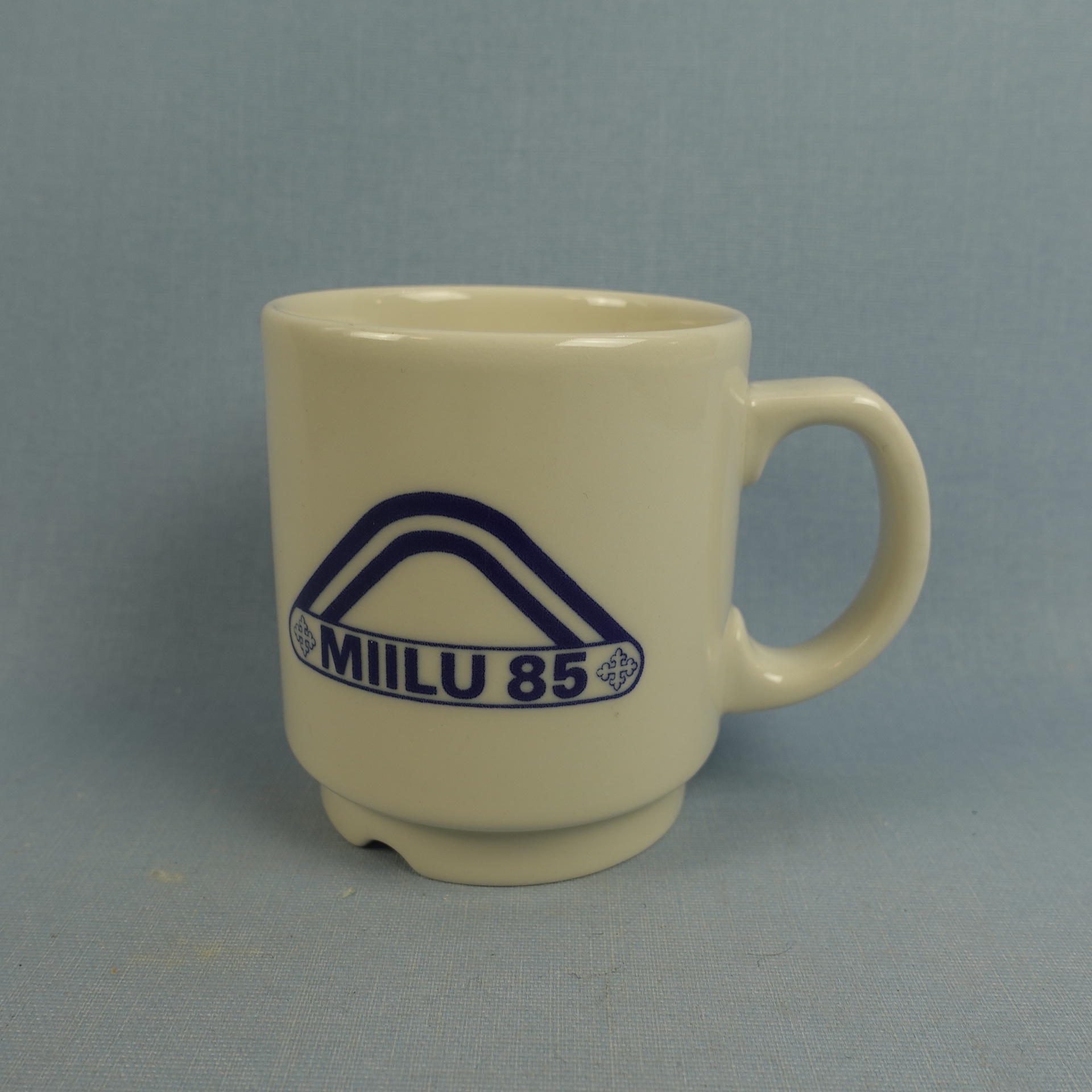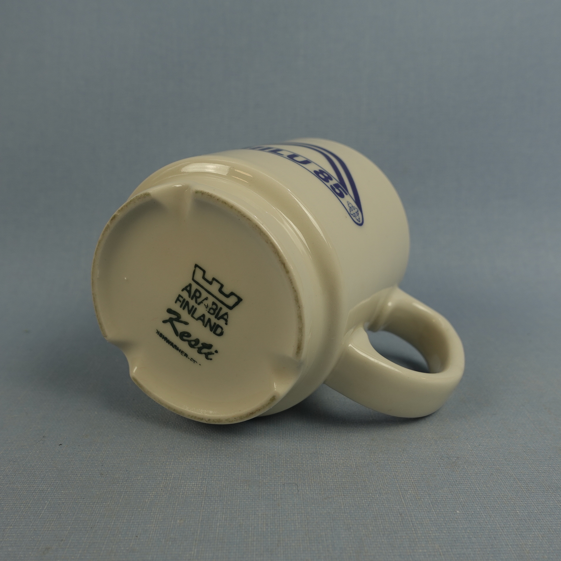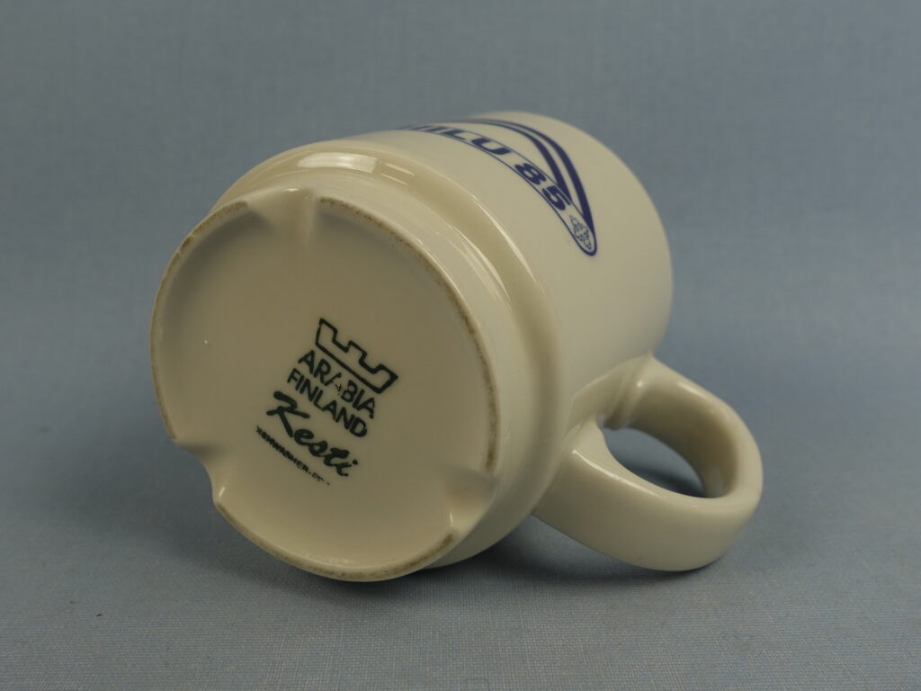 Kesti series mug with Miilu 85 scout camp logo, manufactured by Arabia. The mug is 8.5 cm high, 7.7 cm in diameter and has a capacity of 30 cl. The mug for sale is intact and in good condition.