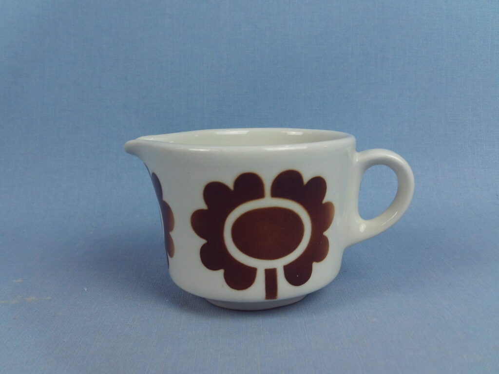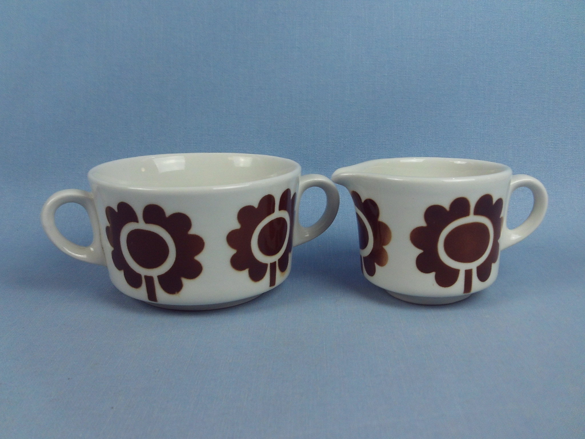 The sugar bowl’s height is 5.7 cm and diameter 9 cm. The creamer’s height is 5.7 cm, diameter 6.8 cm and capacity 14 cl.