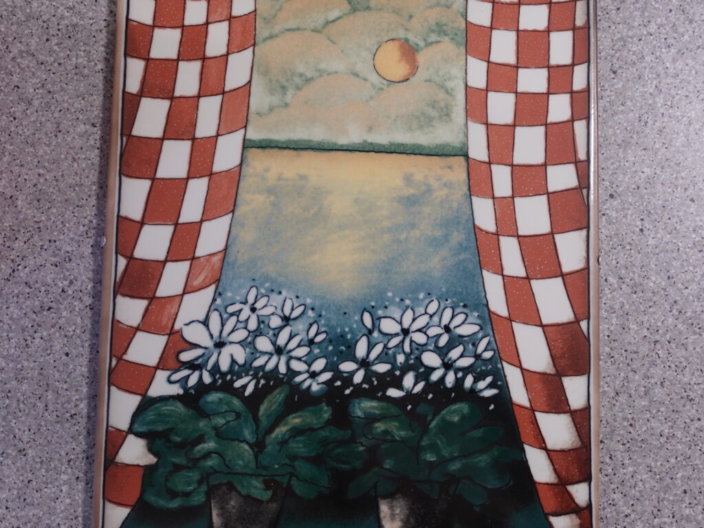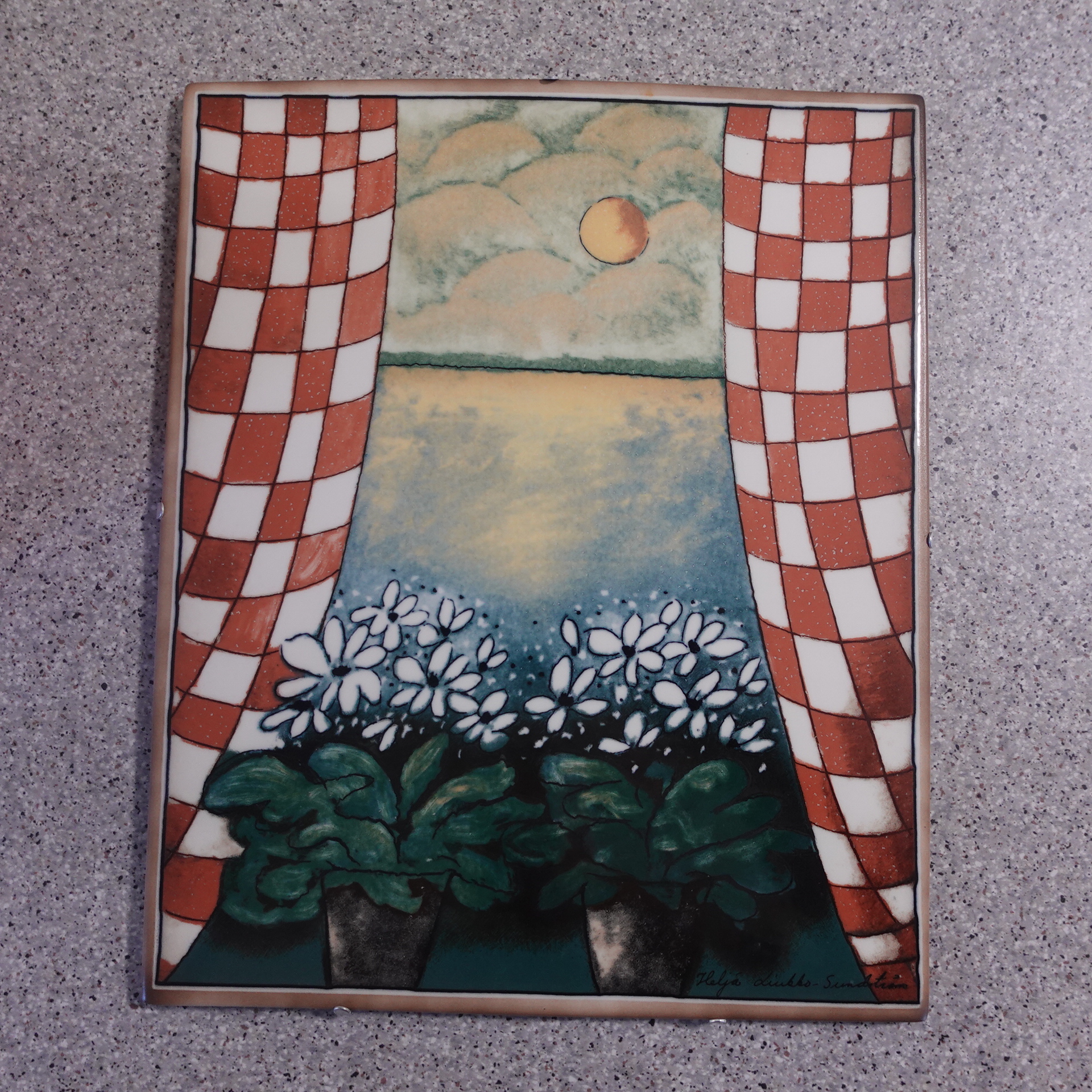 My Home is my Castle ceramic tile designed by Heljä Liukko-Sundström for Arabia. The tile was in production from 1997-99. The tile is 35.5 cm high and 28.5 cm wide. The wall bracket is also included in the price. The ceramic tile for sale is intact and in good condition.