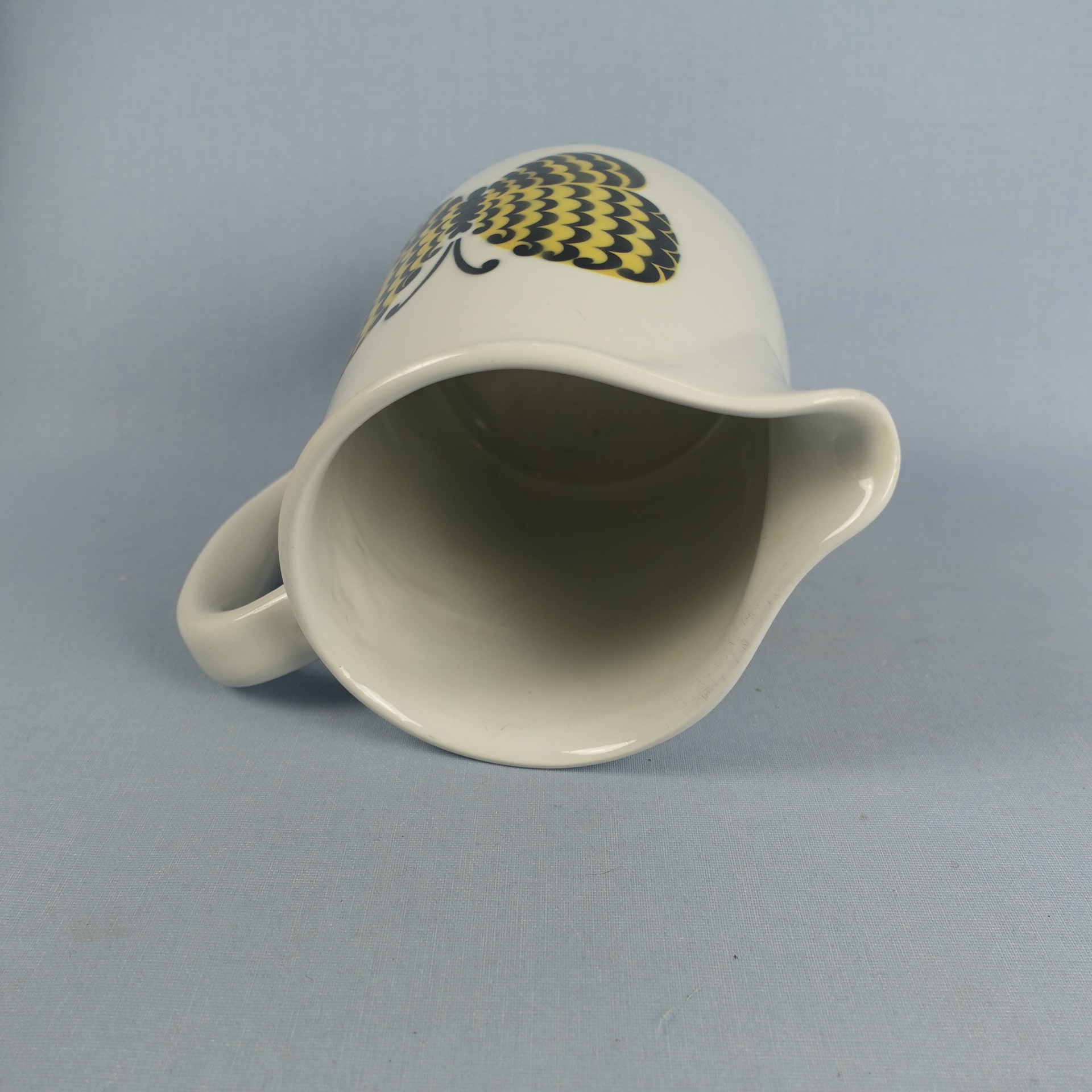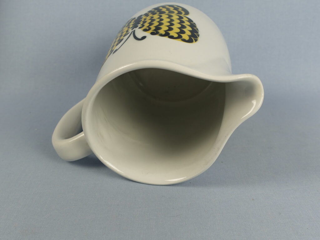 Arabia Perhonen milk jug, yellow and black, FL model. The jug is intact and otherwise in good condition.