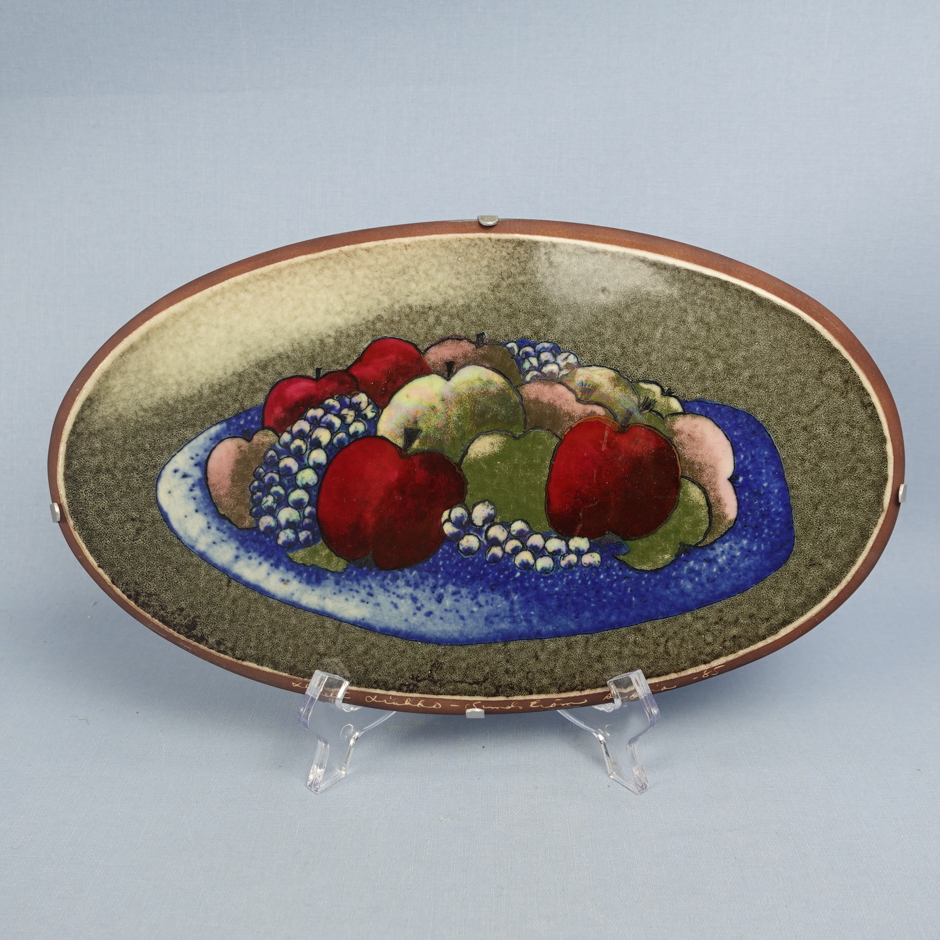 Still Life wall plate designed by Heljä Liukko-Sundström for Arabia. The plate was designed in 1983. The plate is 16.5 cm high and 28 cm wide. The wall plate for sale is intact and otherwise in good condition.