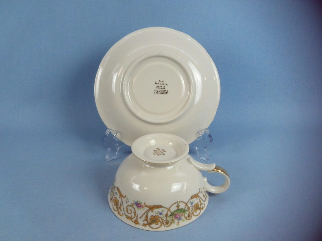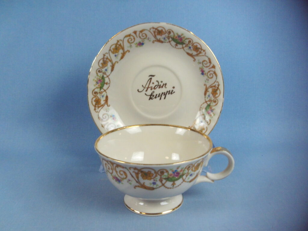 Mother’s cup with Teresa decoration made by Arabia. The cup is an RE model and was produced in the 1950s. The height of the cup is 6 cm, the diameter is 10.3 cm and the volume is 24 cl. The diameter of the saucer is 15 cm. The cup for sale is intact and otherwise in good condition.