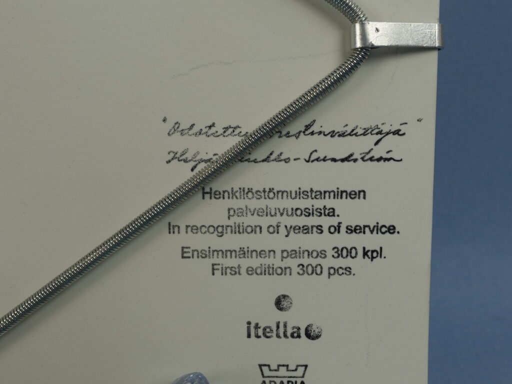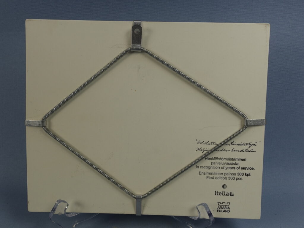 The Expected Messenger wall plaque designed by Heljä Liukko-Sundström for Arabia/Itella. Itella gave the plaque as a personal memento of years of service to its staff. The size of the plaque is 25.5 x 20.5 cm. The first edition was 300 pieces. The rare plaque for sale is intact and otherwise in good condition.