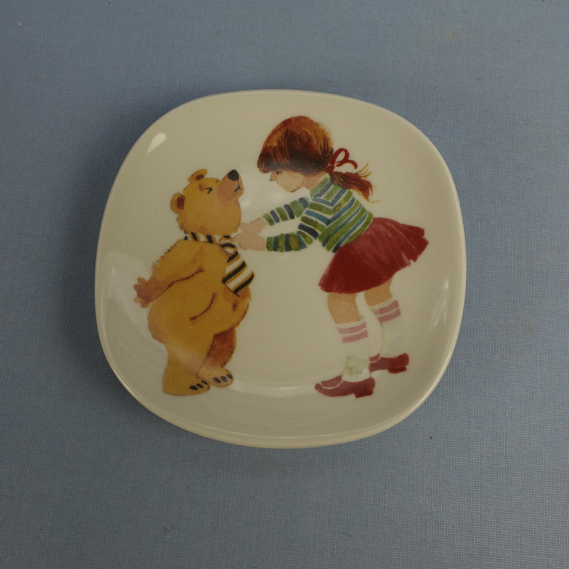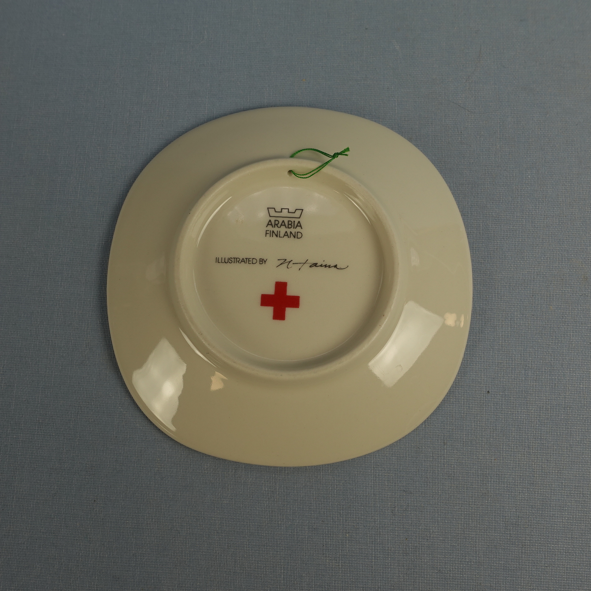 A wall plate fUppo-Nalle, diameter 12 cm, made by Arabia for the Finnish Red Cross. The wall plate is intact and otherwise in good condition.