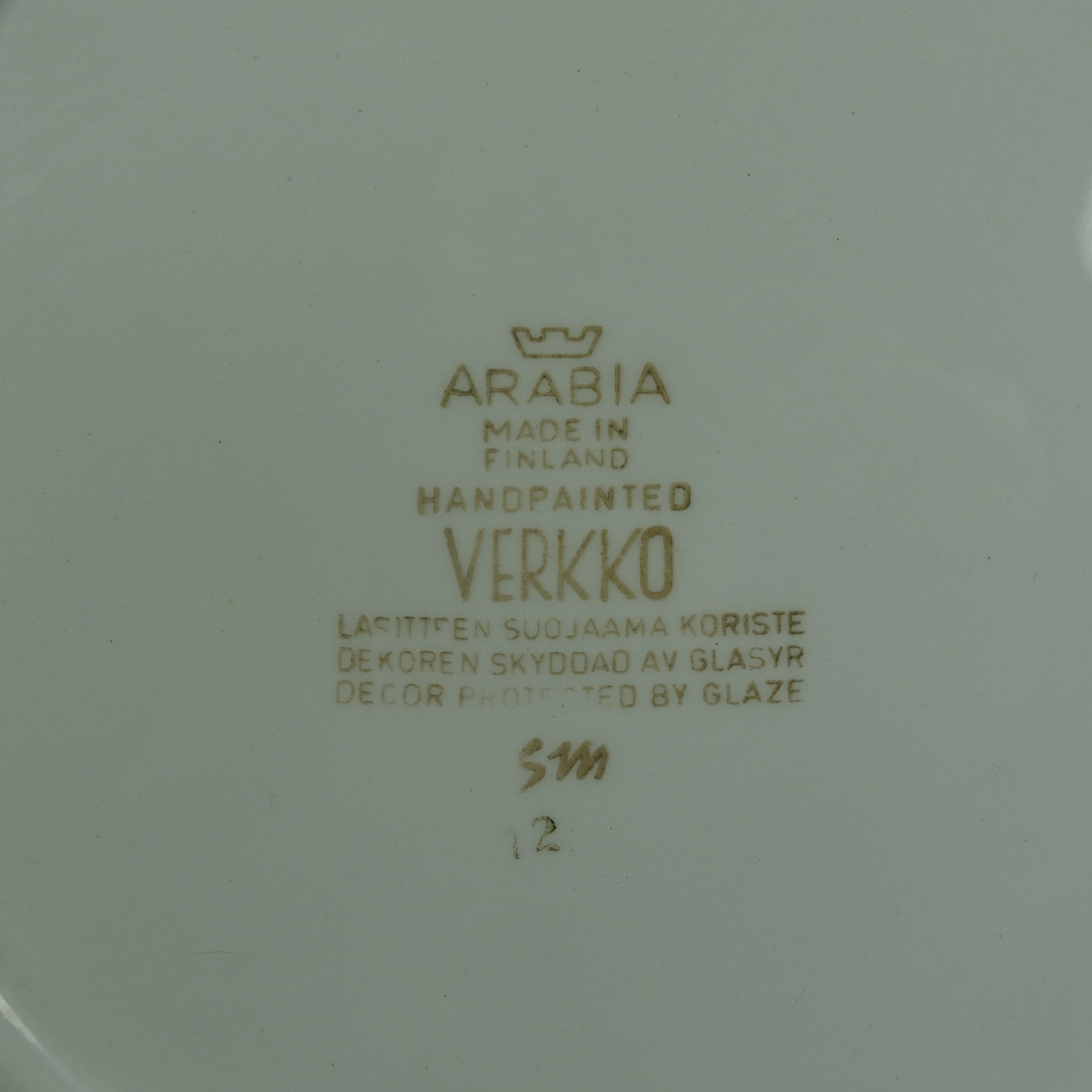 Hand-painted plates of various sizes from the Verkko series designed by Raija Uosikkinen for Arabia. The decoration was produced on the AR model dishes designed by Kaarina Aho in 1958-66. The plates for sale are intact and otherwise in good condition.