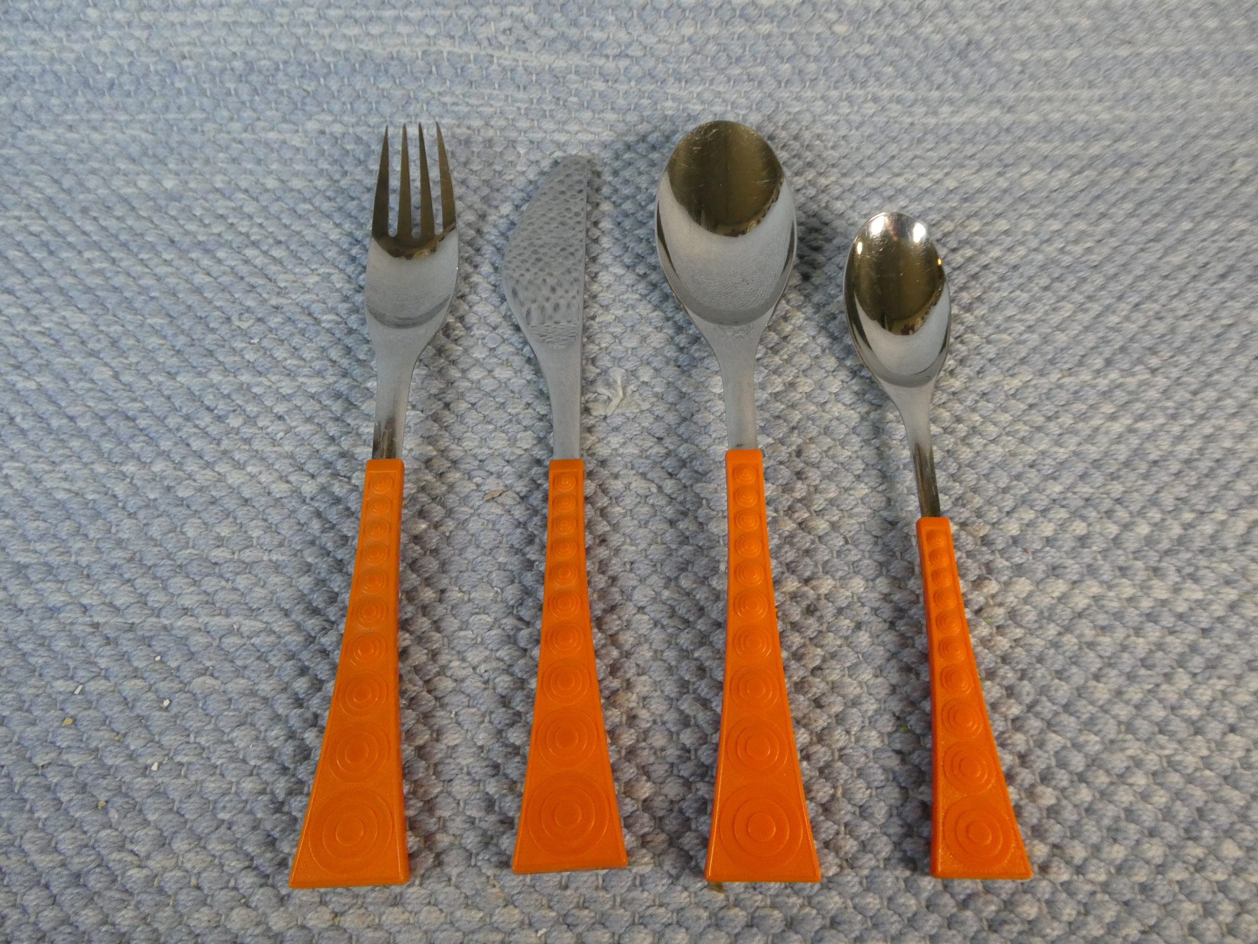 5 forks, 2 knives, 3 spoons, 3 teaspoons. Made in the early 1970s.
