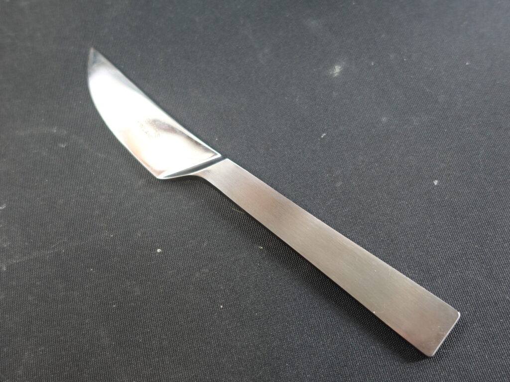 A fruit knife from the Finnline series designed by Bertel Gardberg for Hackman. The series, made of stainless steel, was produced from 1957 to 1974. The knife is 14.2 cm long. The knives for sale are unused, unscratched and in very good condition.