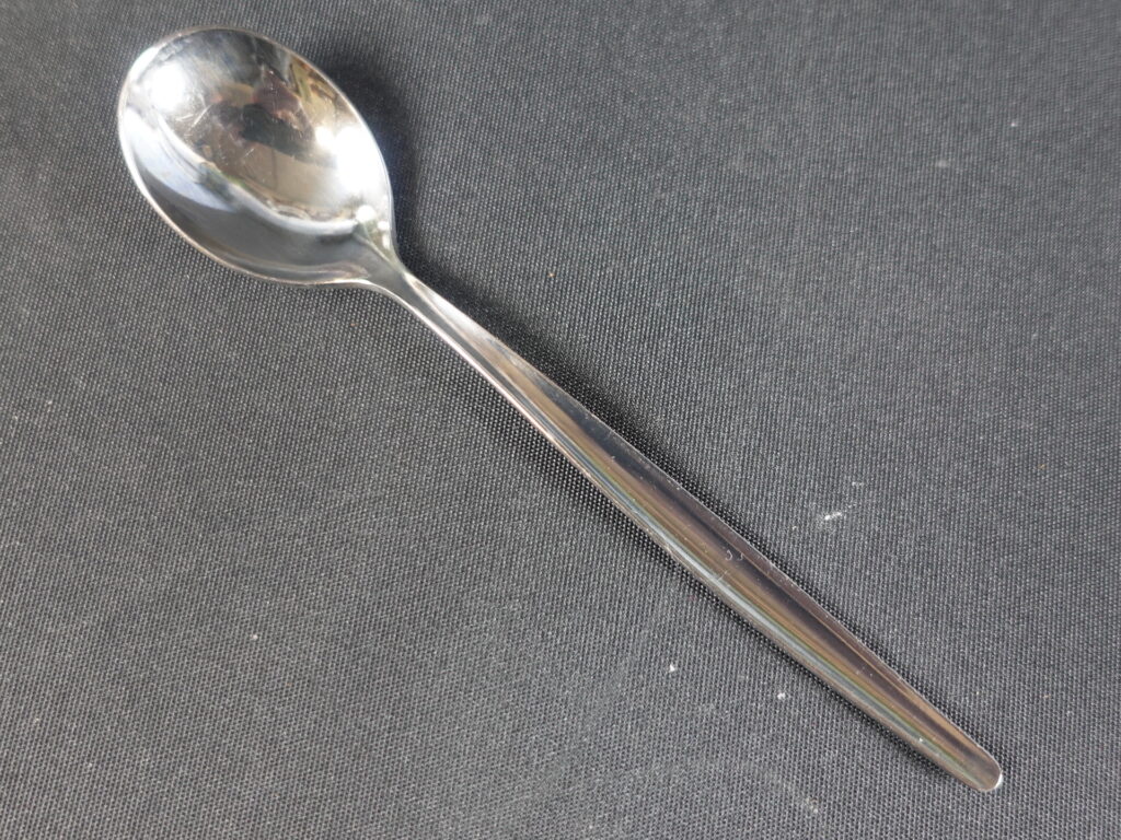 A Polar-series coffee spoon designed by Ilmari Tapiovaara for Hackman. The series was in production 1964–76. The spoon’s length is 12.5 cm. The spoons for sale are used but in very good condition.