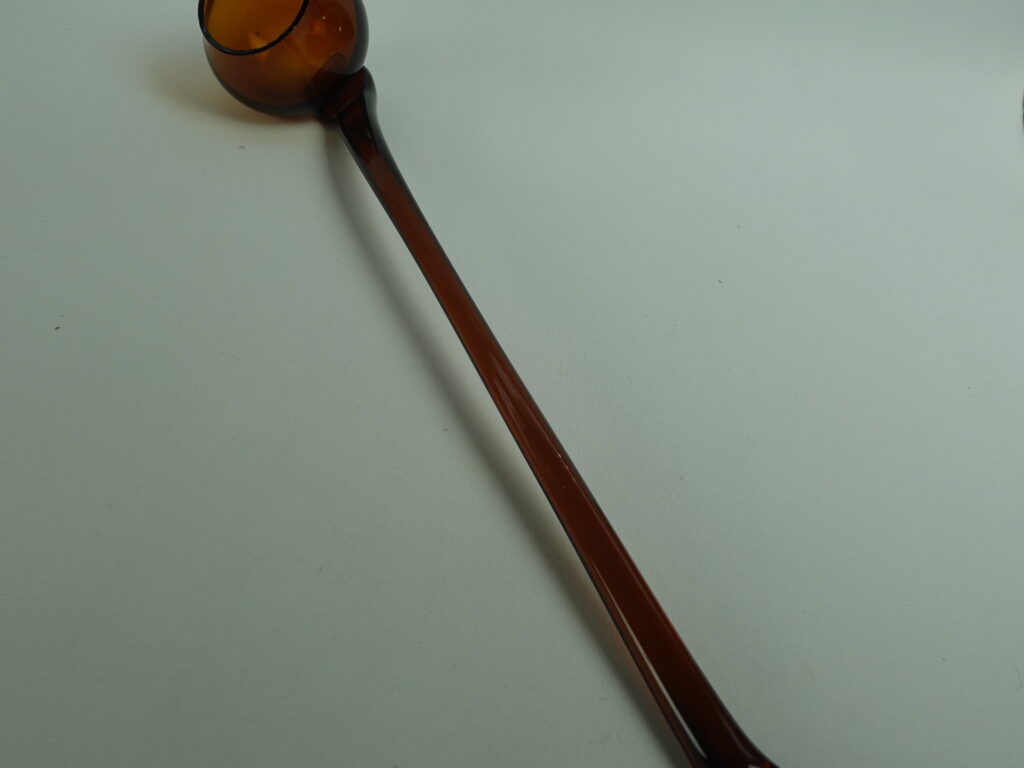 A brown punch spoon from the Talonpoika series, manufactured by Humppilan Glass. The series was produced from 1972-87. The length of the bowl is 26 cm. The bowl for sale is intact and otherwise in good condition.