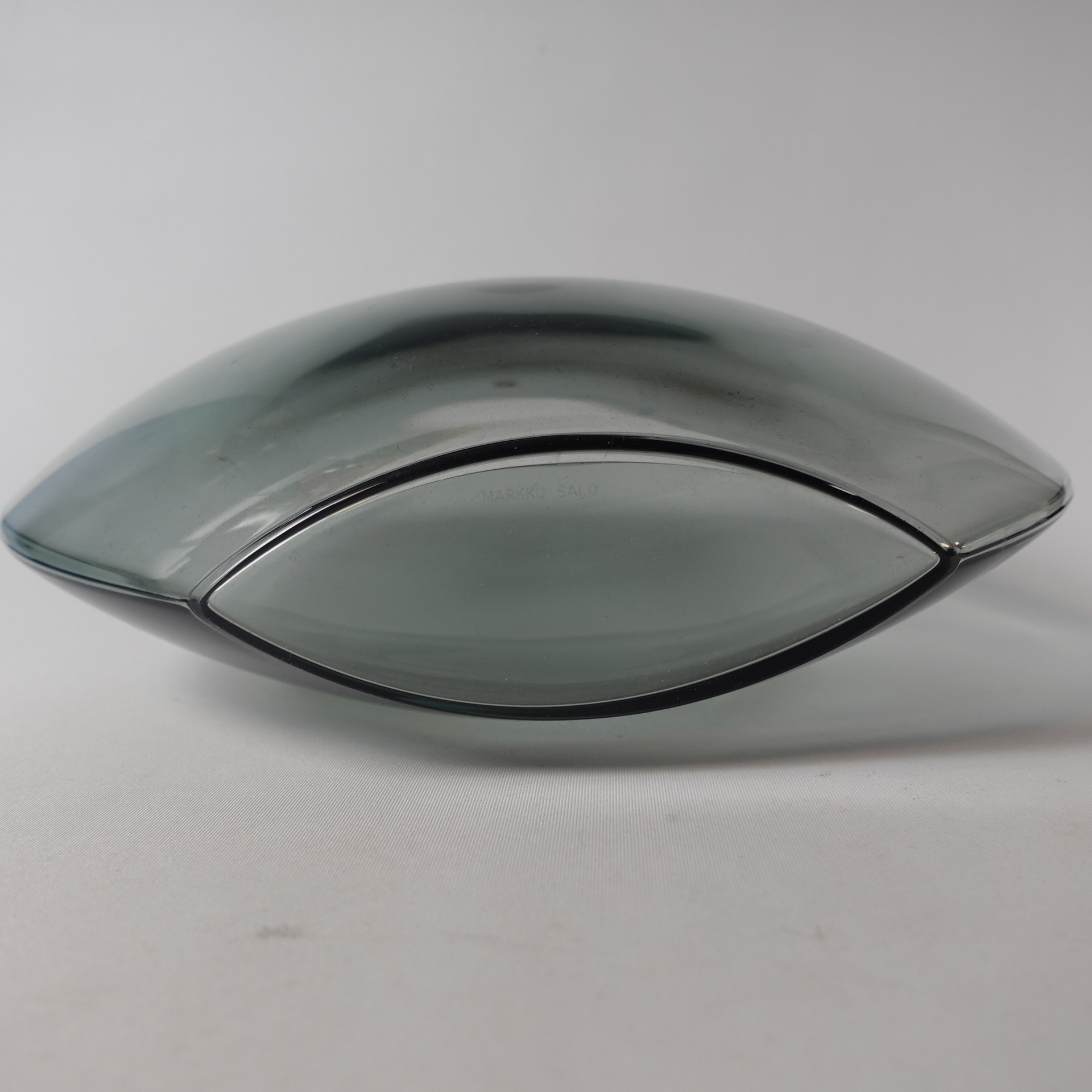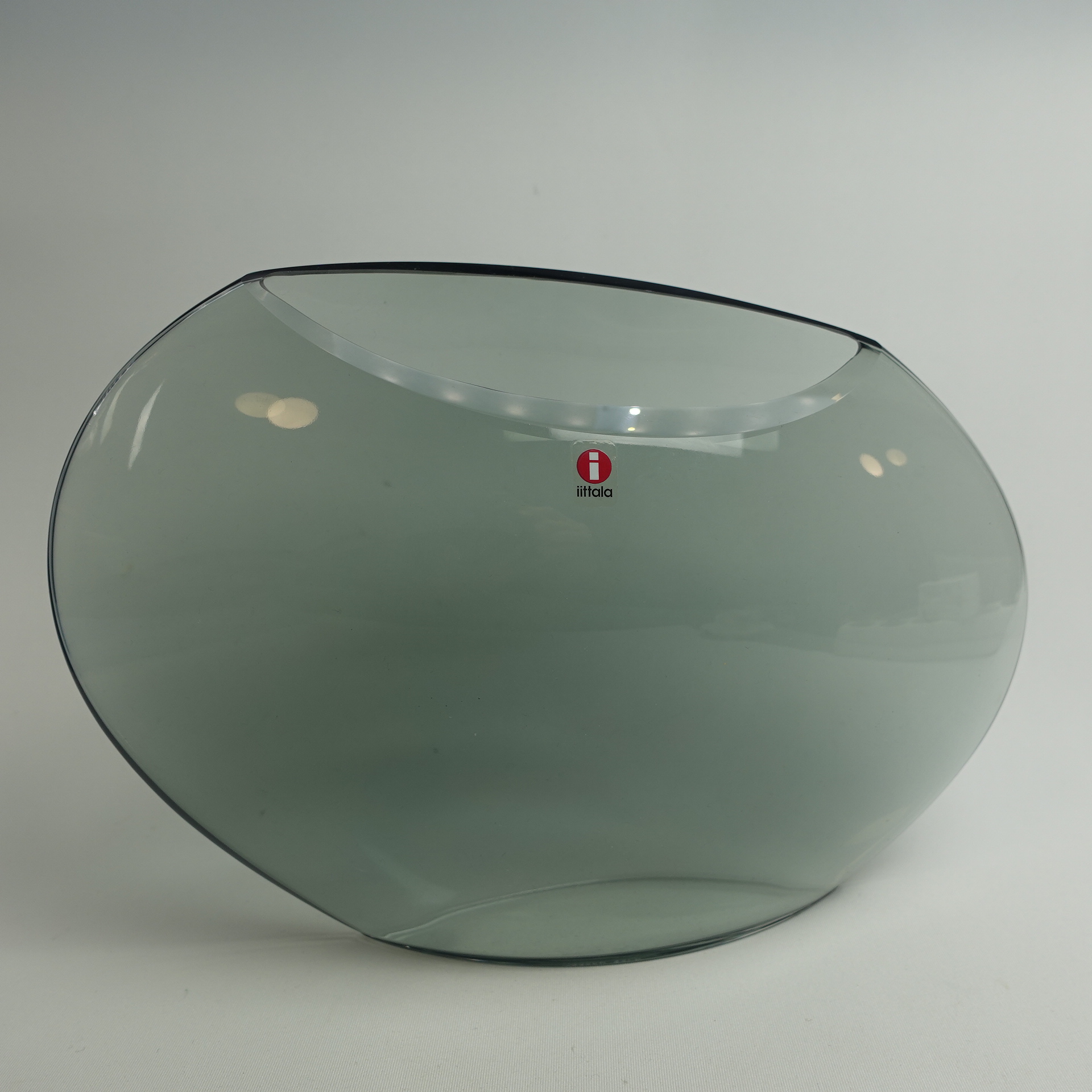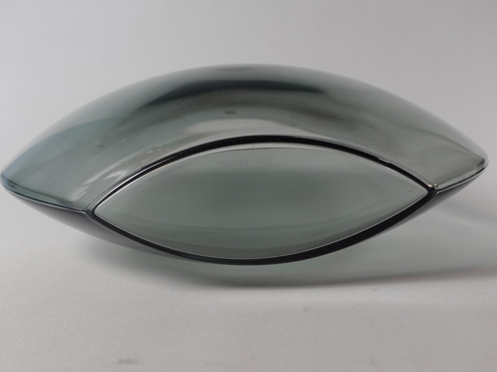 A grey Aava vase designed by Markku Salo for Iittala. The vase was produced from 1999-2004. The height of the vase is 18 cm, width 26 cm and depth 9 cm. The vase is machine-signed: Markku Salo. The vase for sale is intact, in good condition and almost scratch-free.