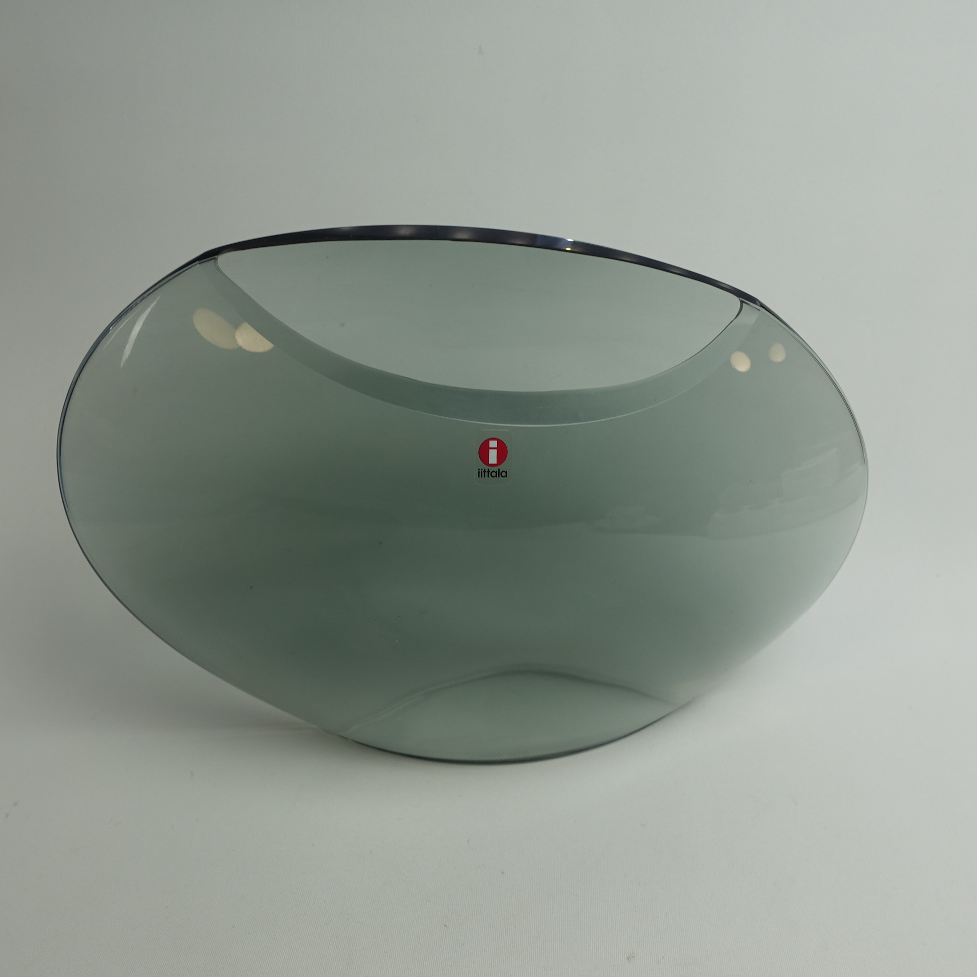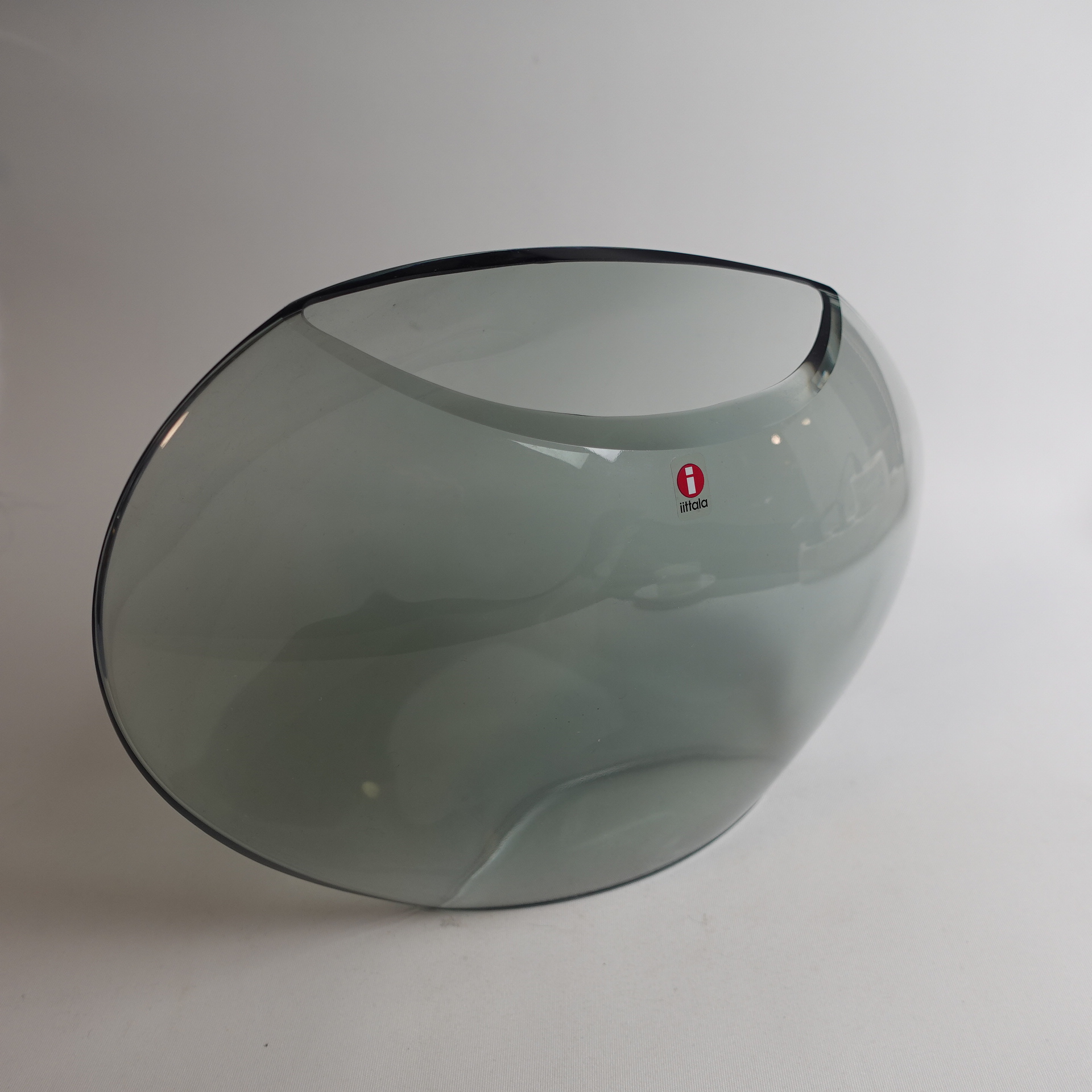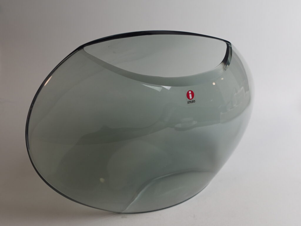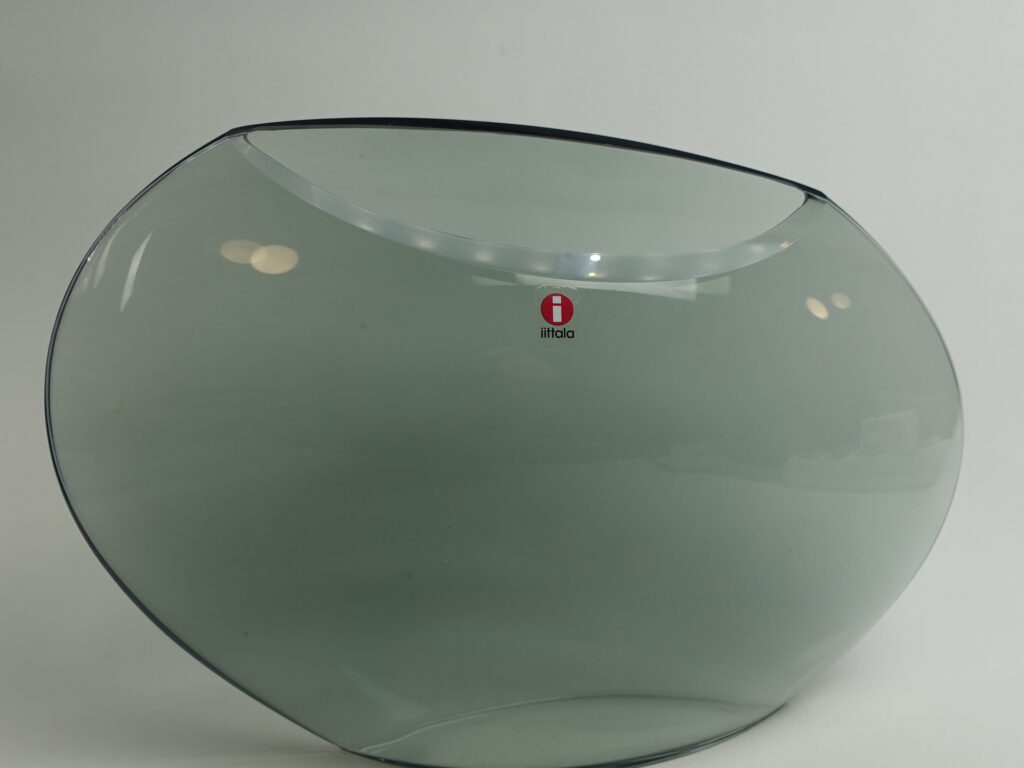 A grey Aava vase designed by Markku Salo for Iittala. The vase was produced from 1999-2004. The height of the vase is 18 cm, width 26 cm and depth 9 cm. The vase is machine-signed: Markku Salo. The vase for sale is intact, in good condition and almost scratch-free.