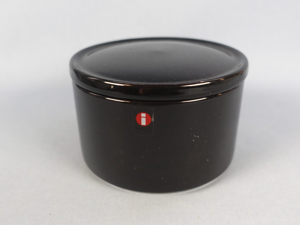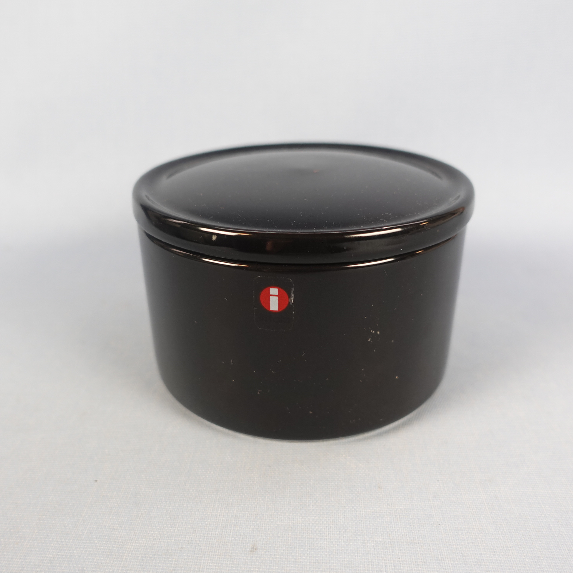 Black-colored lidded jar from the Teema-series designed by Kaj Franck.