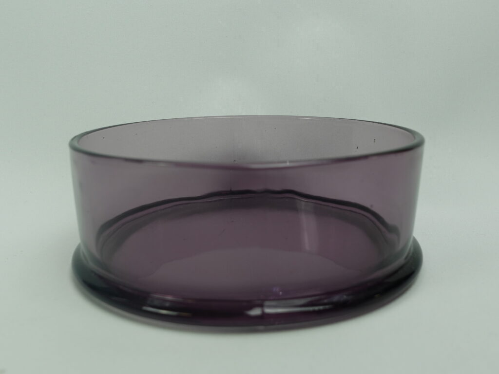 A light lilac yogurt bowl designed by Olavi Ruottinen for Kumela glass. The bowl’s height is 5 cm, diameter 13.5 cm and capacity 40 cl. Bowls were manufactured in several different colors in 1964–75. The bowls for sale are intact and show only minor signs of use.