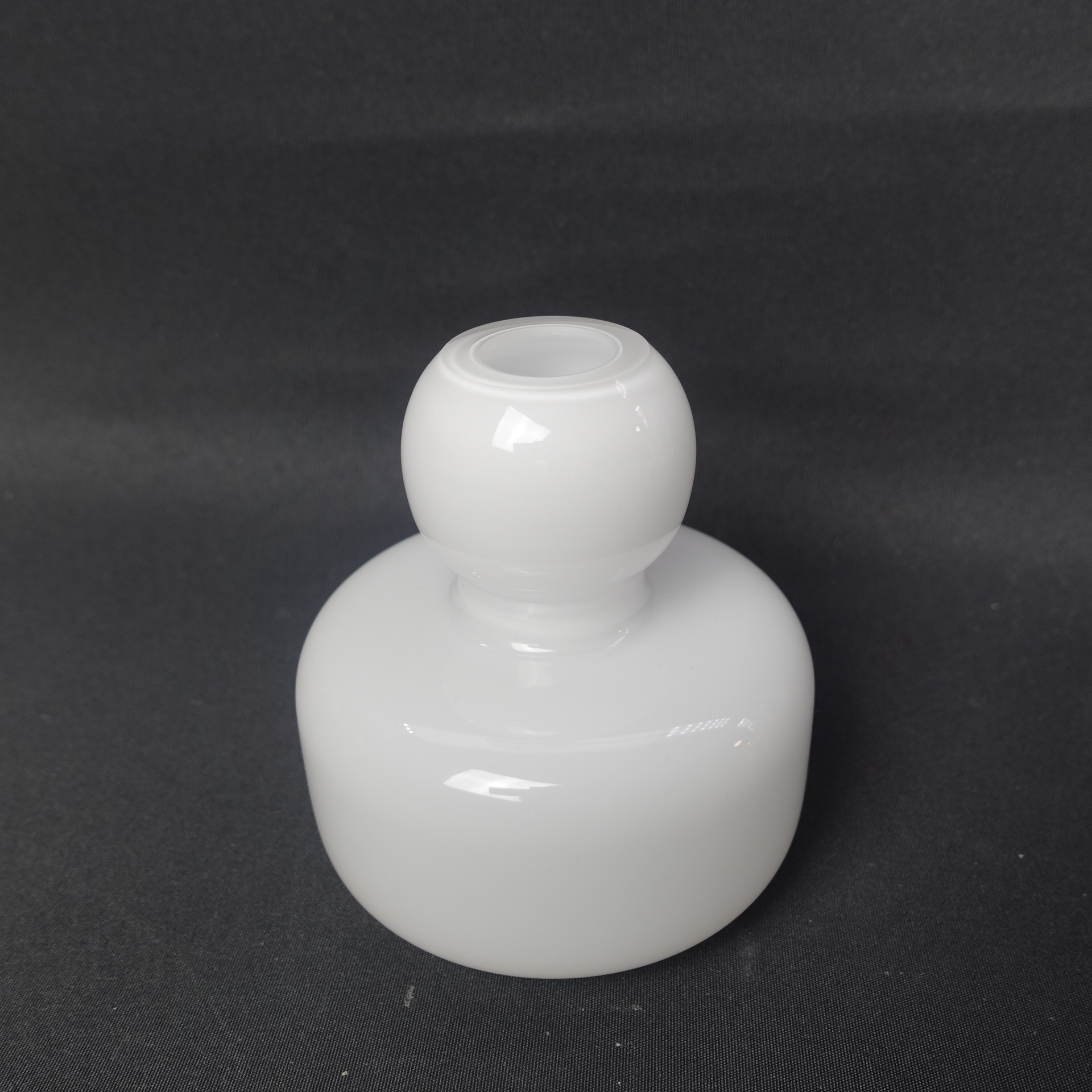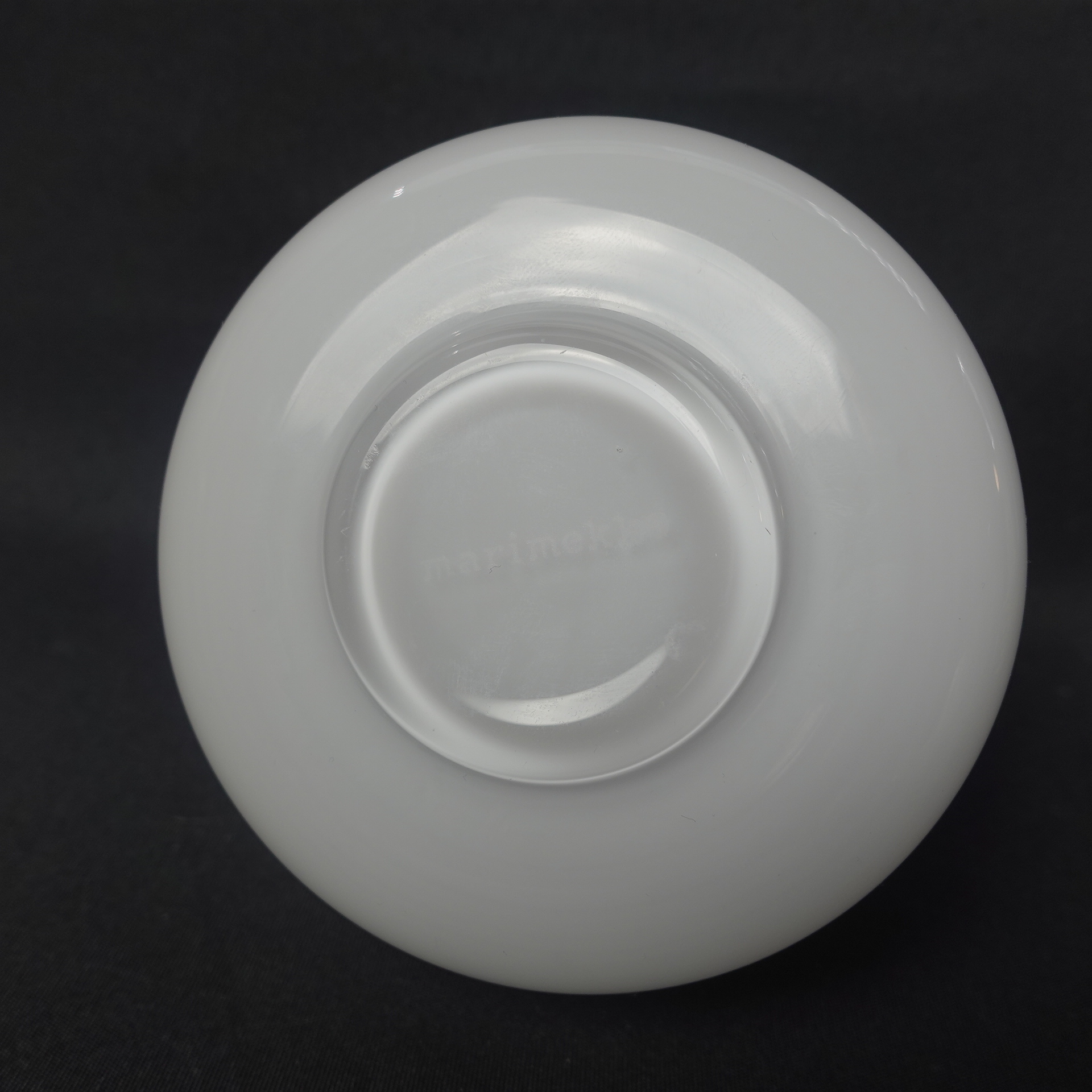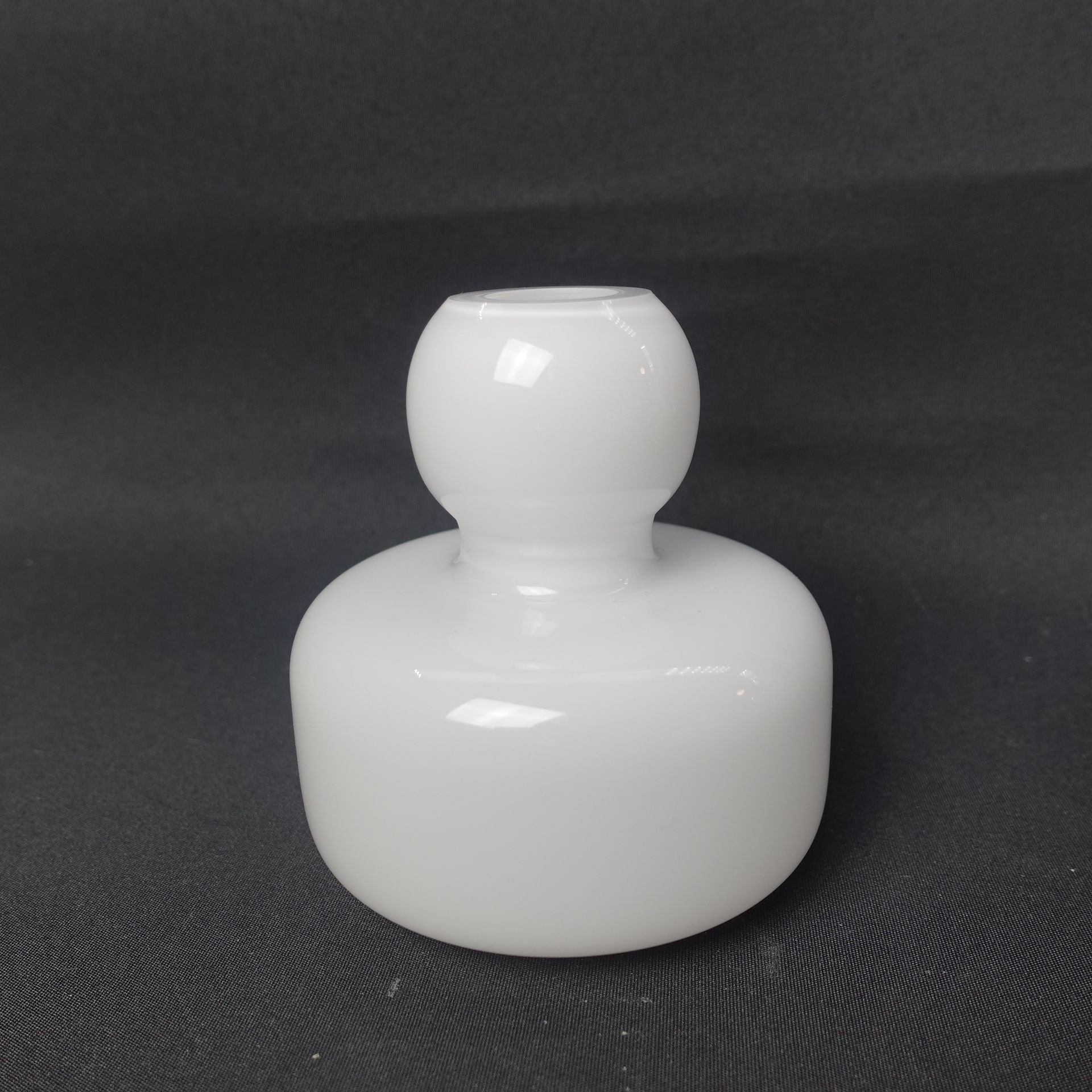 White hand-blown Flower vase designed by Carina Seth Andersson for Marimekko. The height of the vase is 10.5 cm and the diameter is 10 cm. The vase for sale is intact and otherwise in good condition.