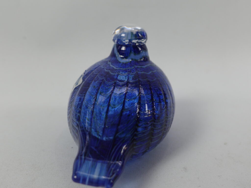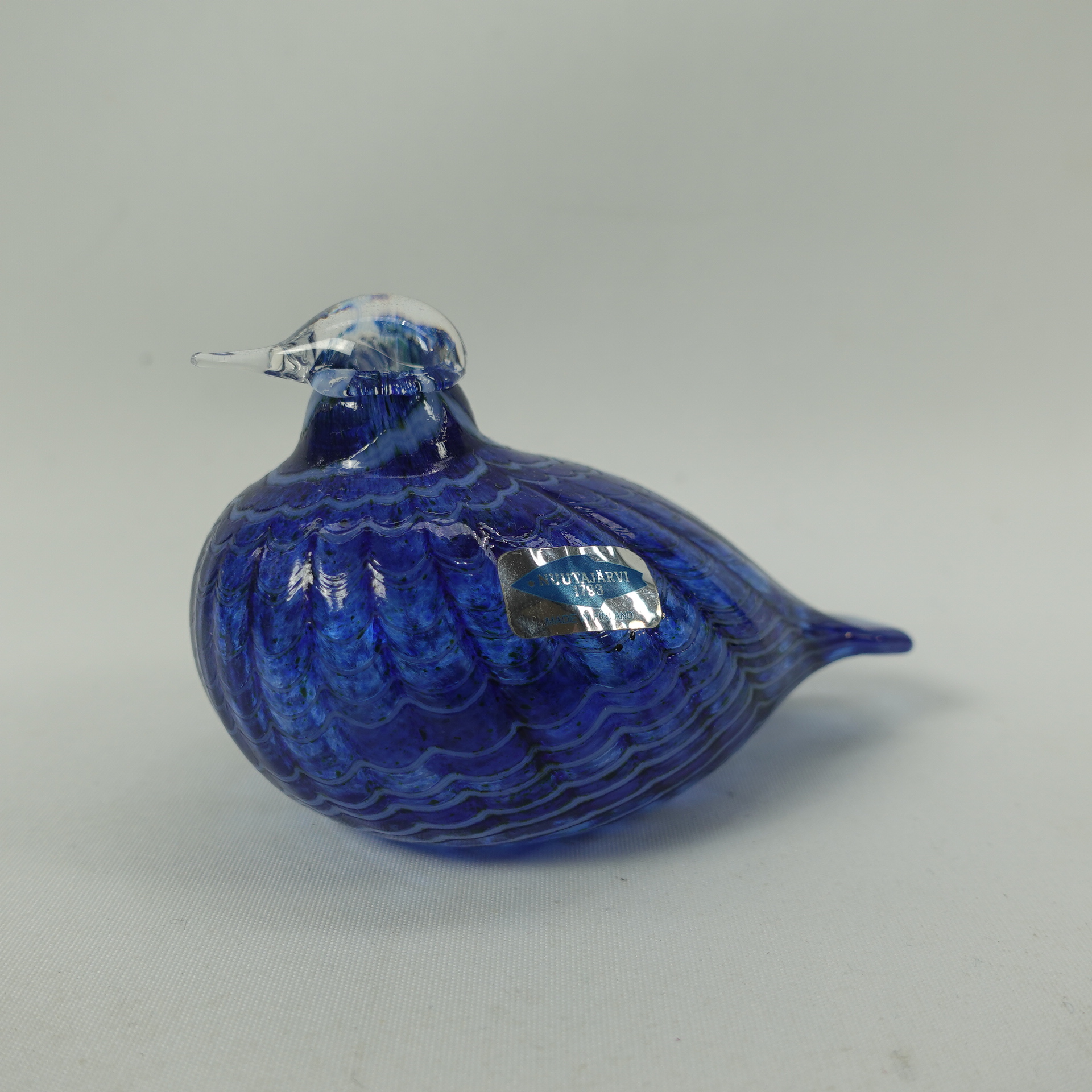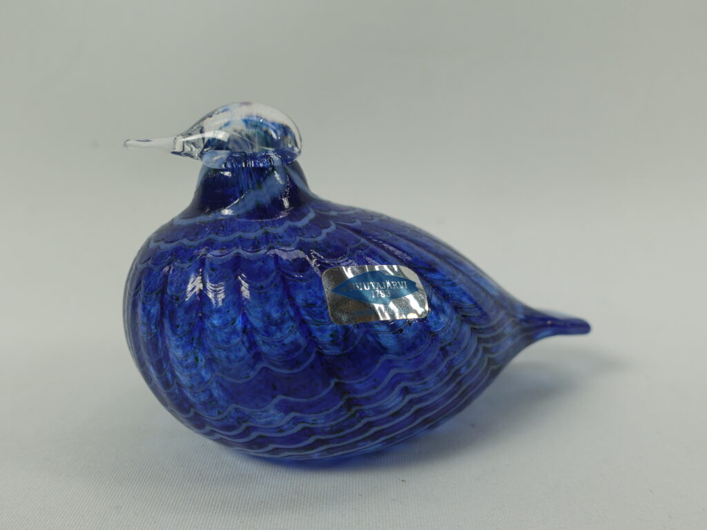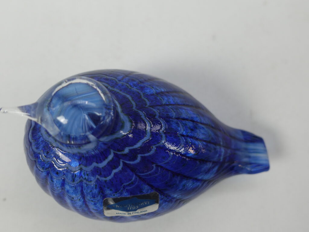 Sinisulka art glass bird designed by Oiva Toikka for Nuutajärvi glass. The bird was in production from 1991-97. The bird is part of the Migratory Birds series of 12 birds. The bird is signed: O. Toikka Nuutajärvi. The bird is approx. 6.5 cm high and 10 cm long. The bird for sale is intact and unscratched.