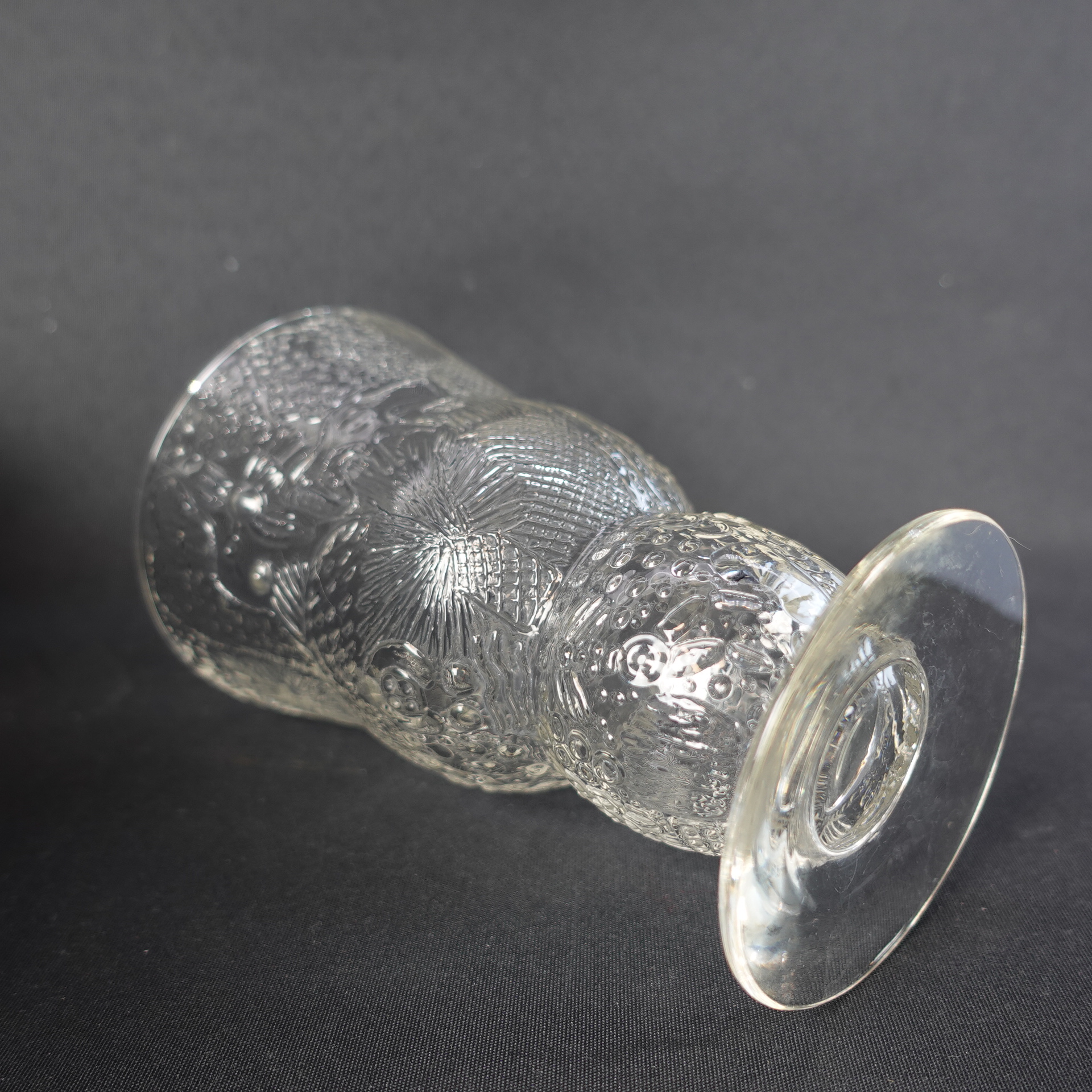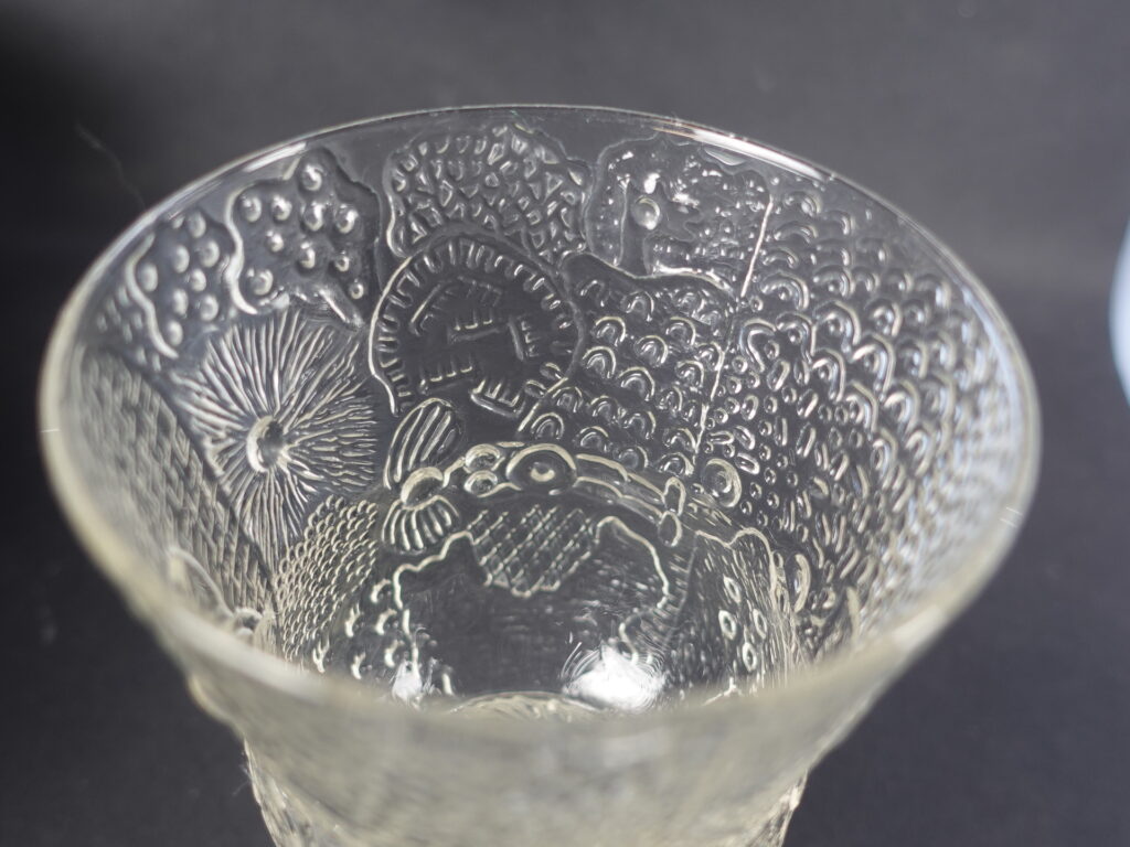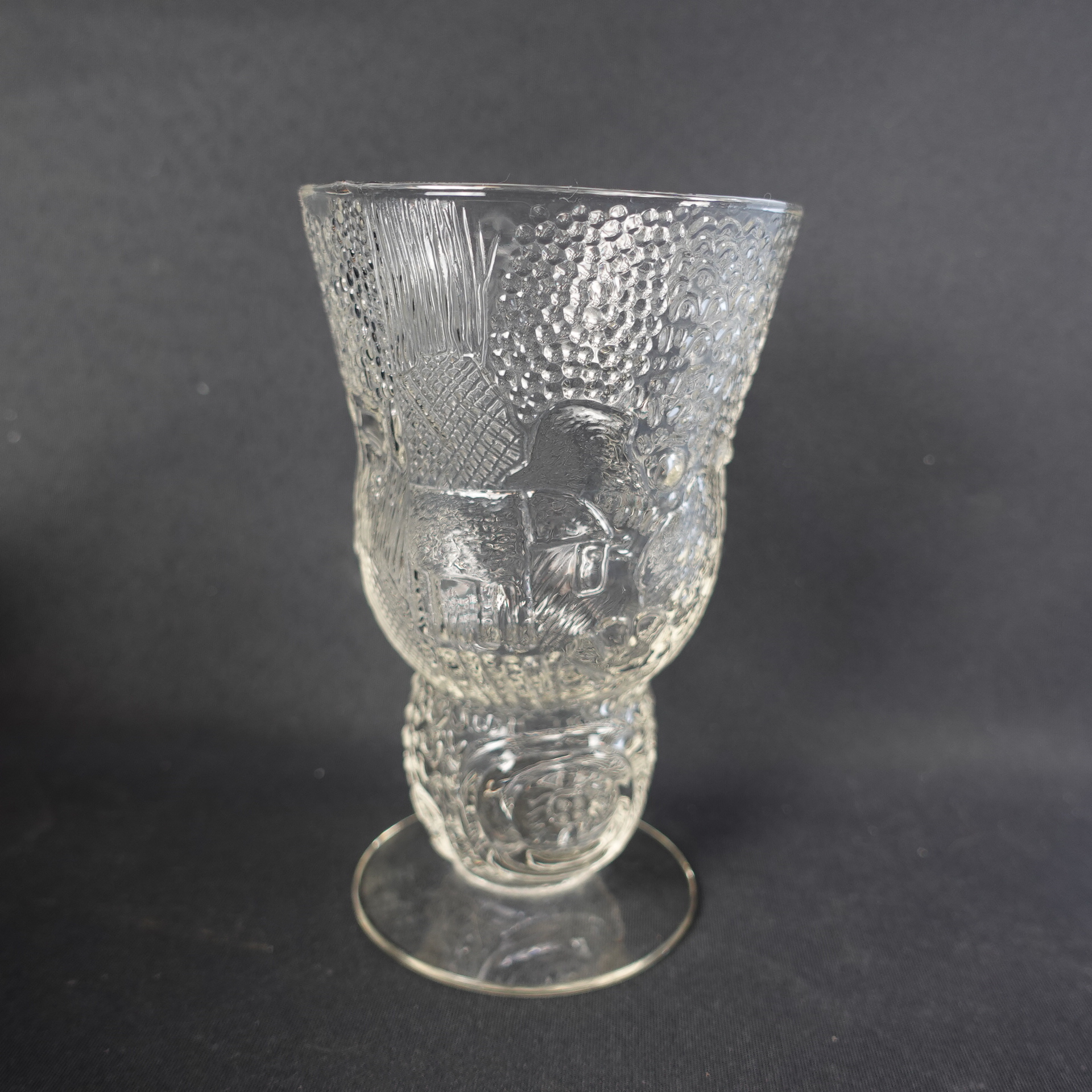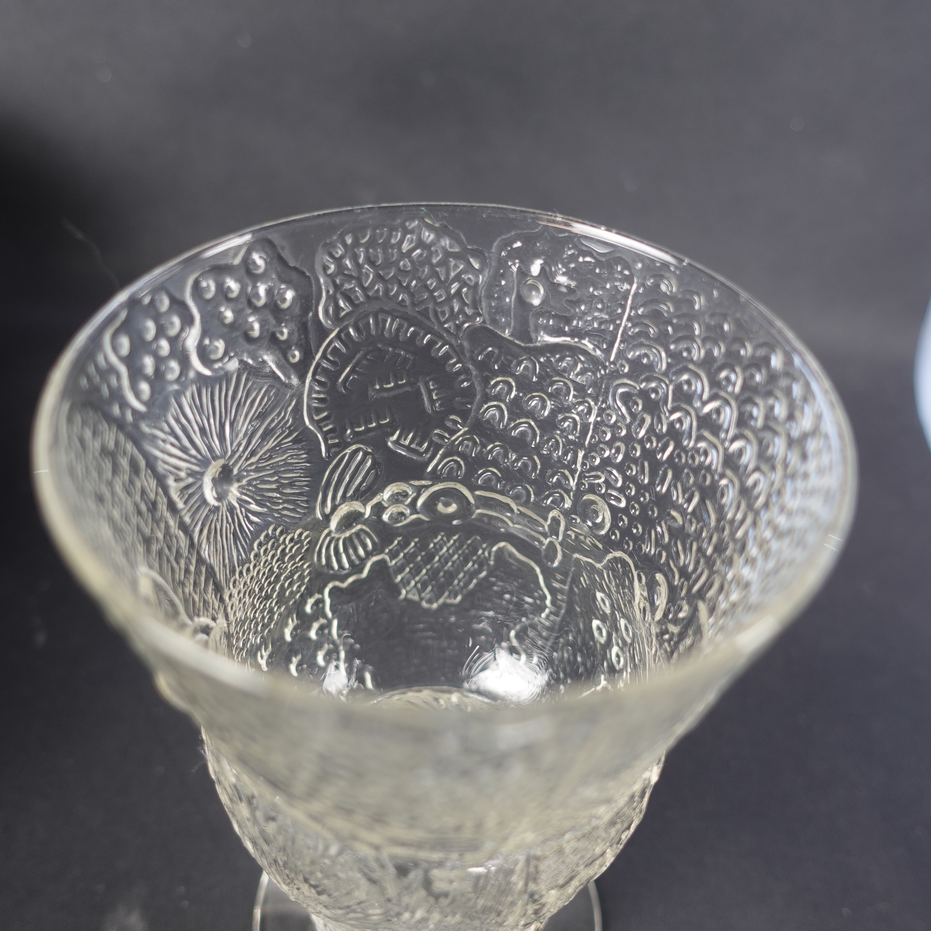 A slightly rarer clear wine glass from the Fauna series designed by Oiva Toikka for Nuutajärvi Glass. The glass was produced in 1970-75. The height of the glass is 14.5 cm, diameter 8.7 cm and volume 35 cl. The glass for sale is intact and otherwise in good condition.