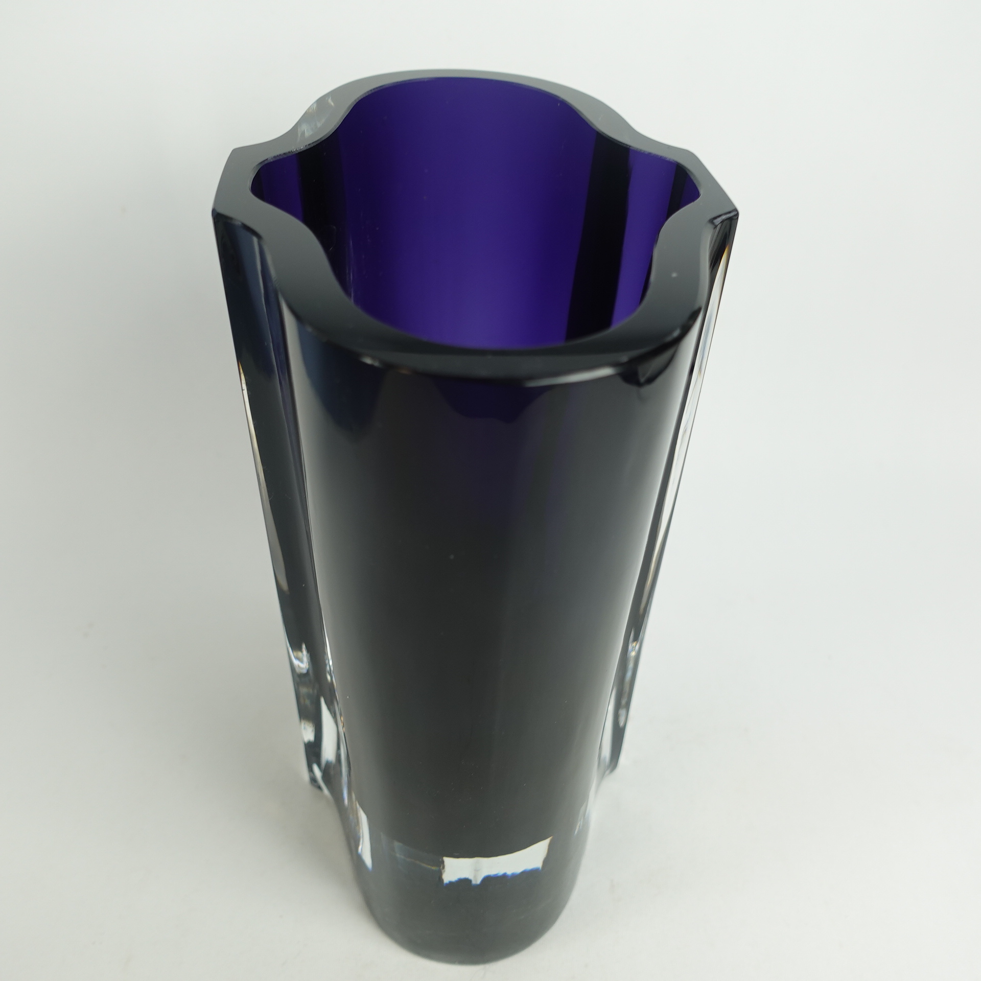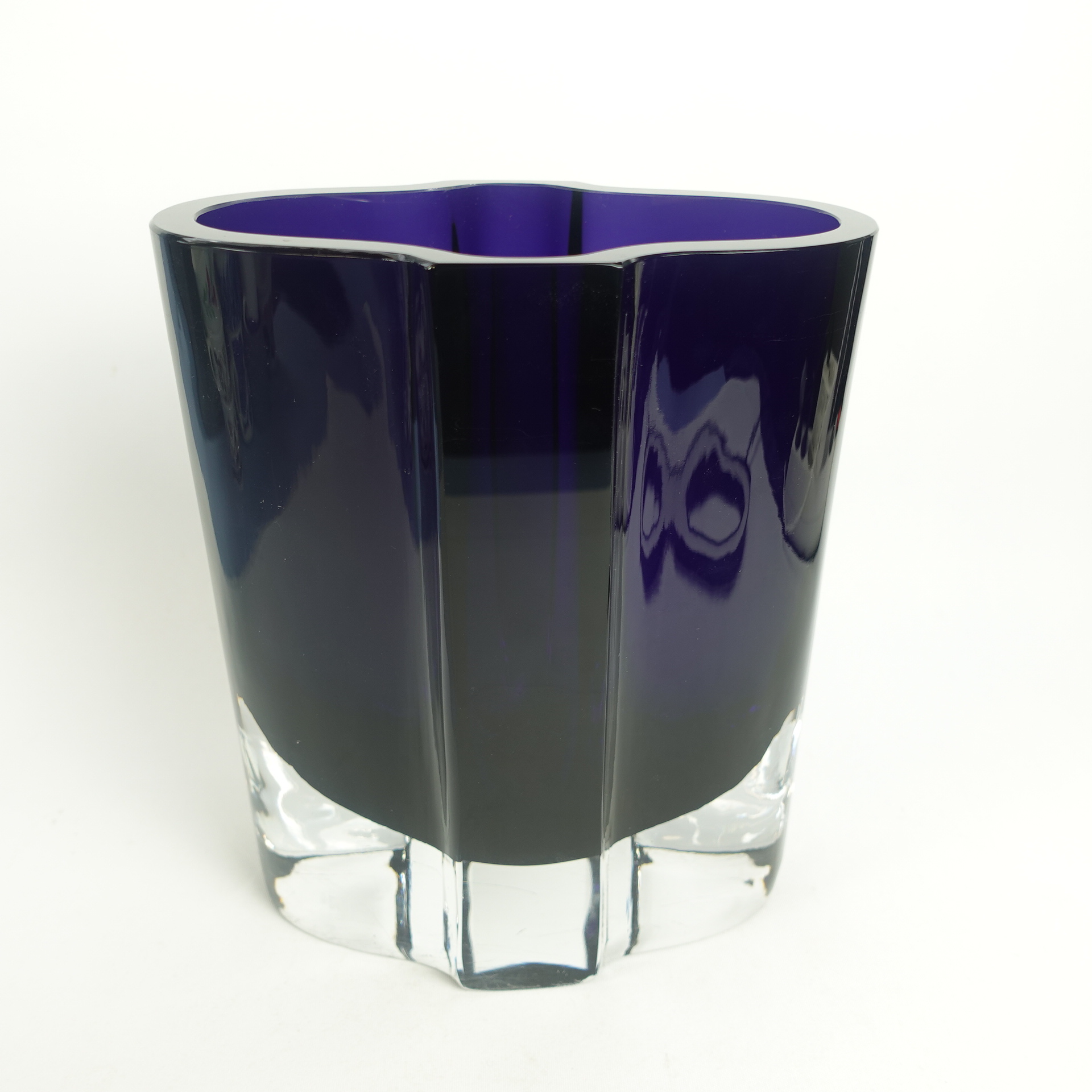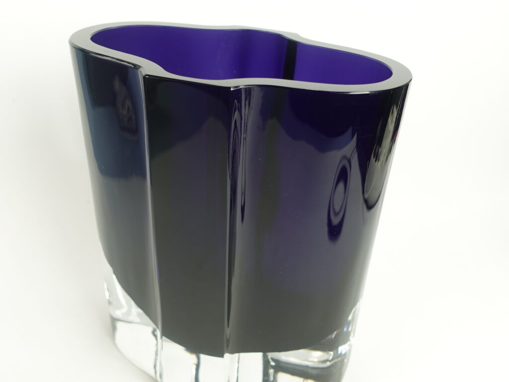 Vase N463 designed by Kaj Franck for Nuutajärvi glass. The vase was produced in 1968. The height of the vase is 20 cm and the size of the mouth is 17 x 11 cm. The vase is signed: Nuutajärvi Notsjö. The vase for sale is intact and otherwise in good condition. Only scratches on the outer base from moving.