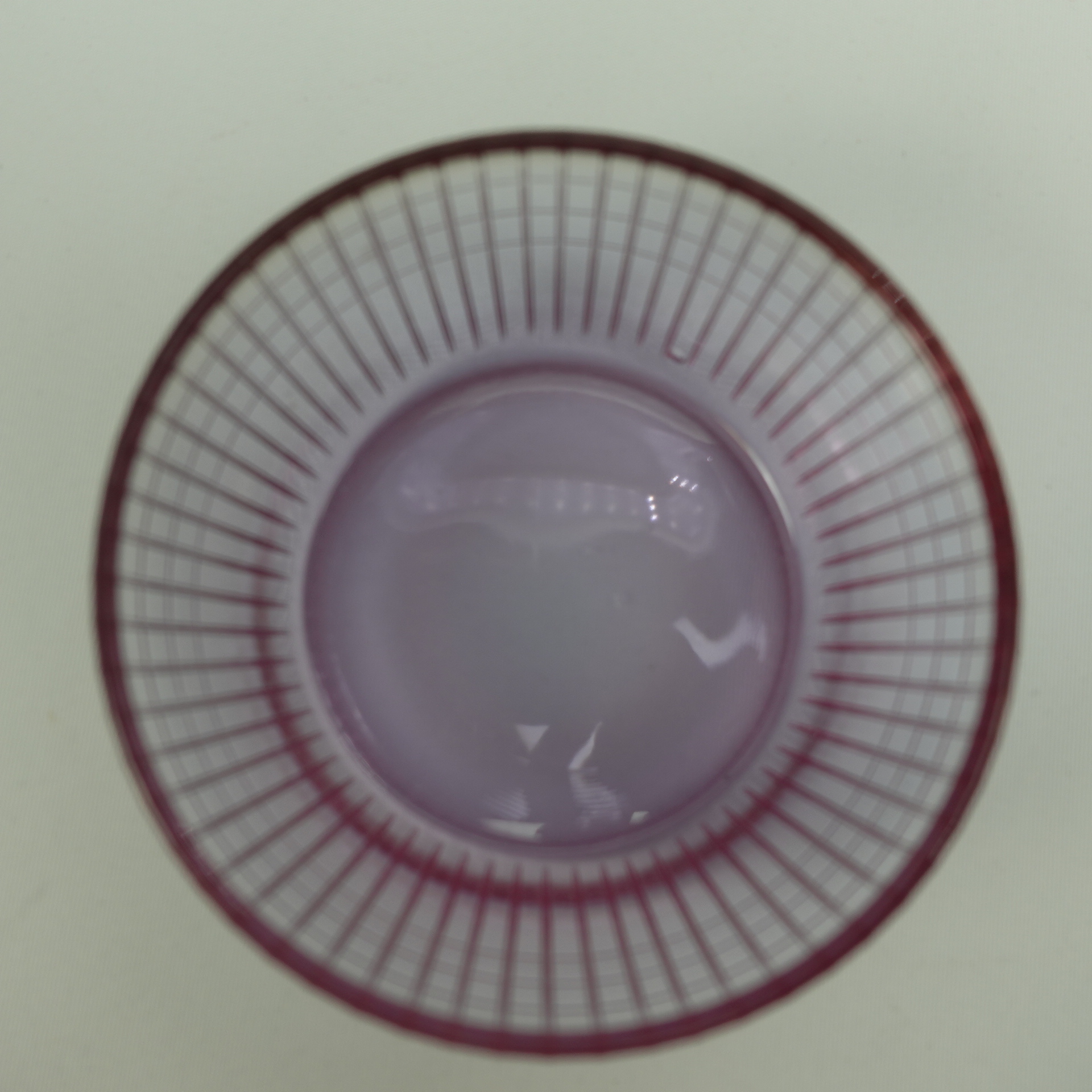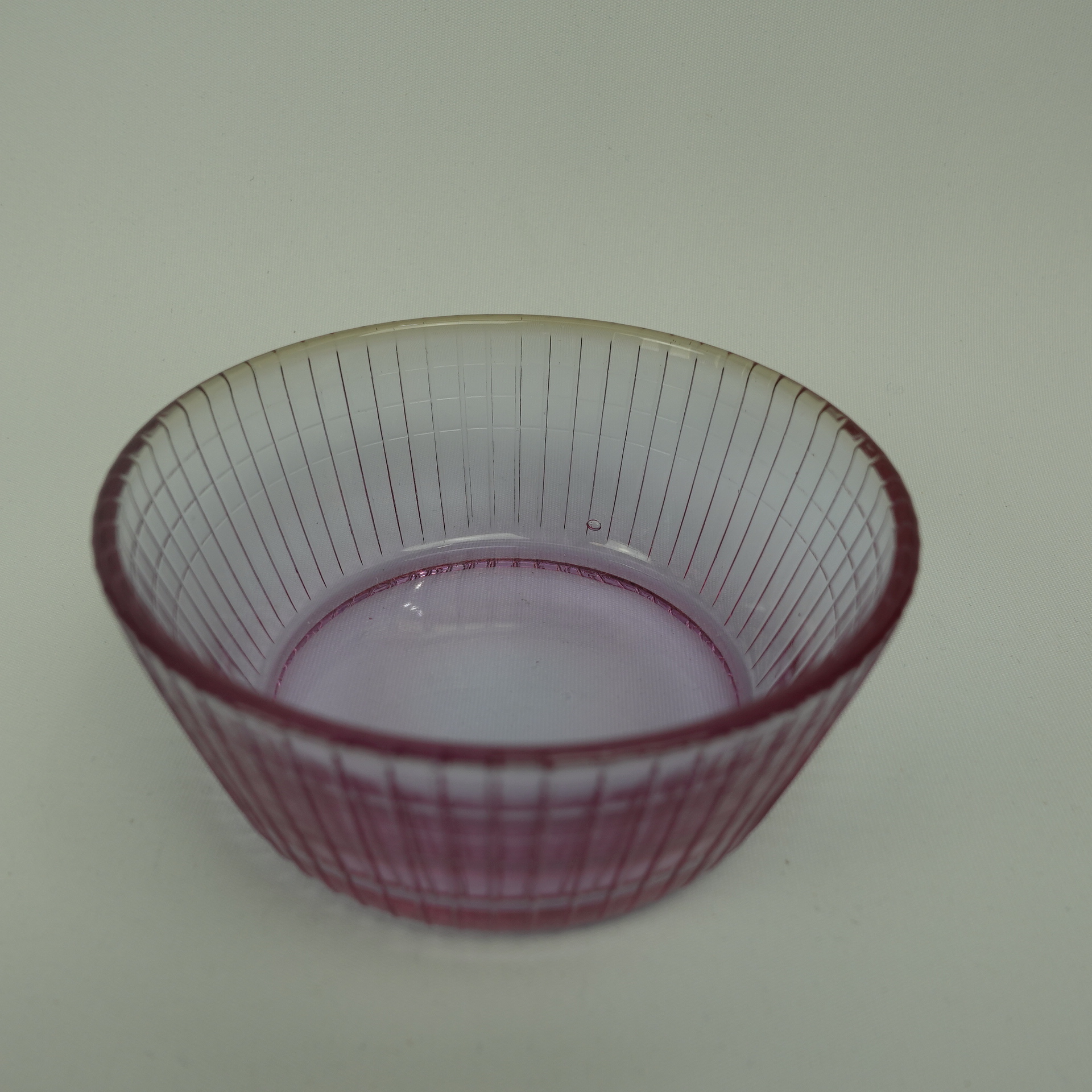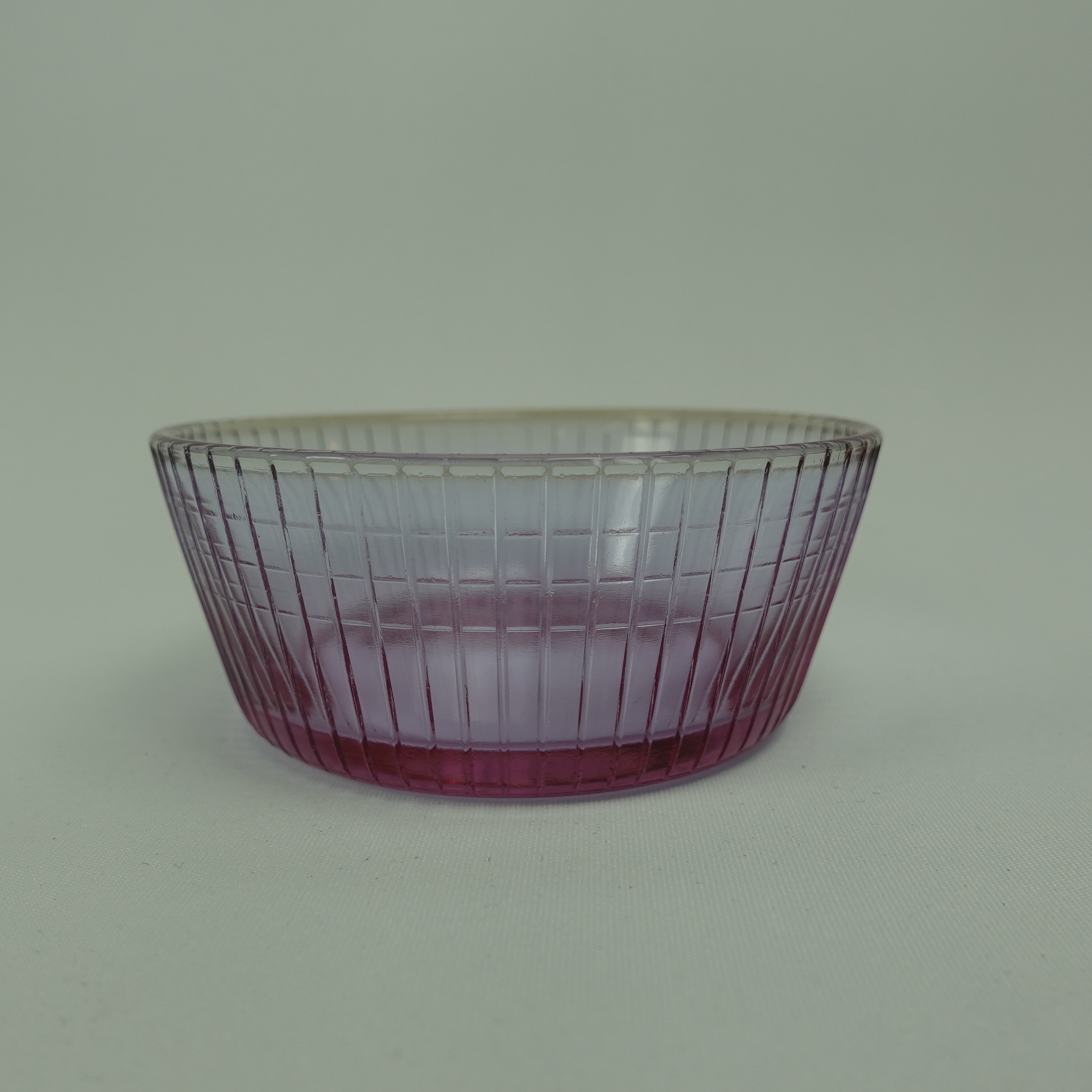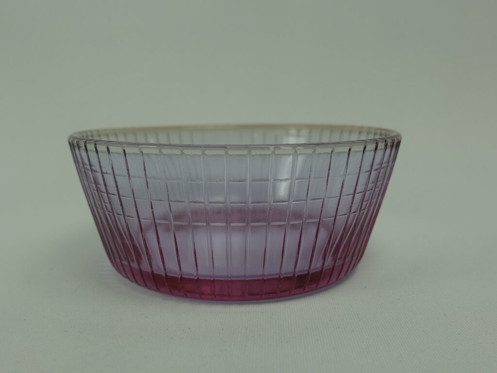 A neodymium-colored sugar bowl from the Ruutu series designed by Helena Tynell for Riihimäki Glass. The series was produced in different colors in 1967-68. The sugar bowl is 4 cm high and 9.5 cm in diameter. The sugar bowl for sale is intact and otherwise in good condition.