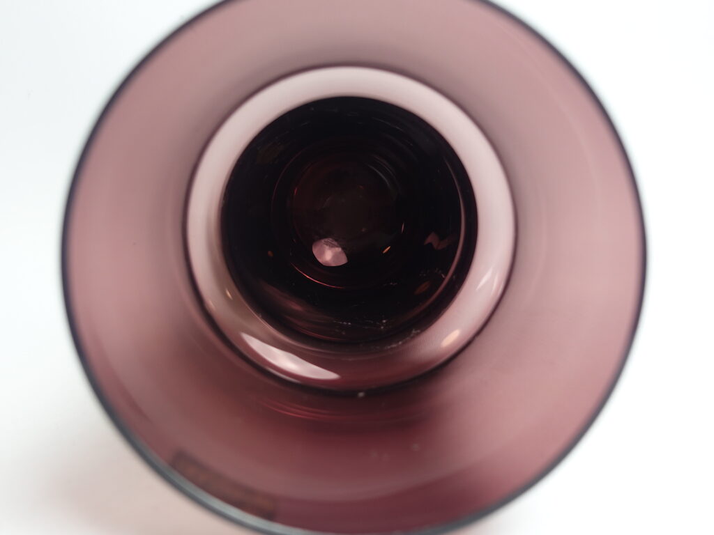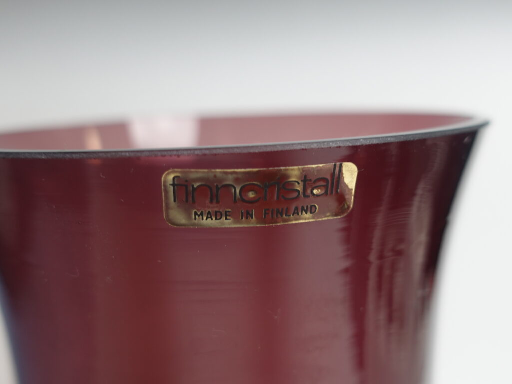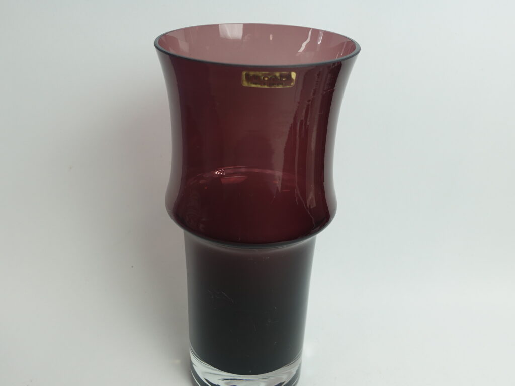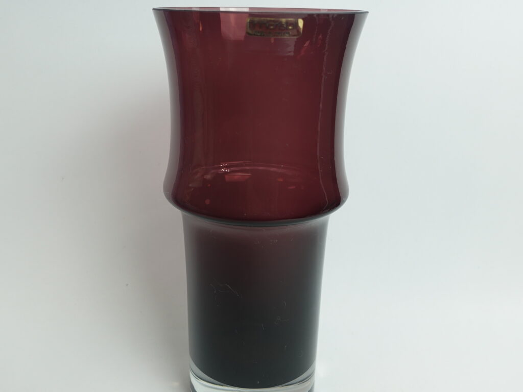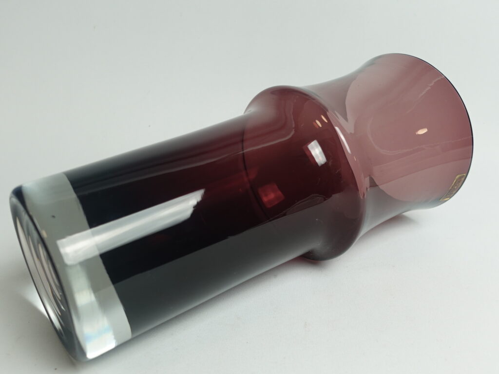 Lilac vase 1473 designed by Tamara Aladin for Riihimäki Glass. The vase was produced in 1967 and was made in several different sizes and colors. The largest vase in the series for sale is 25 cm high and its diameter is 11 cm. The vase is intact and otherwise in good condition. It also has a sticker with the text: Finn Cristall Made in Finland.