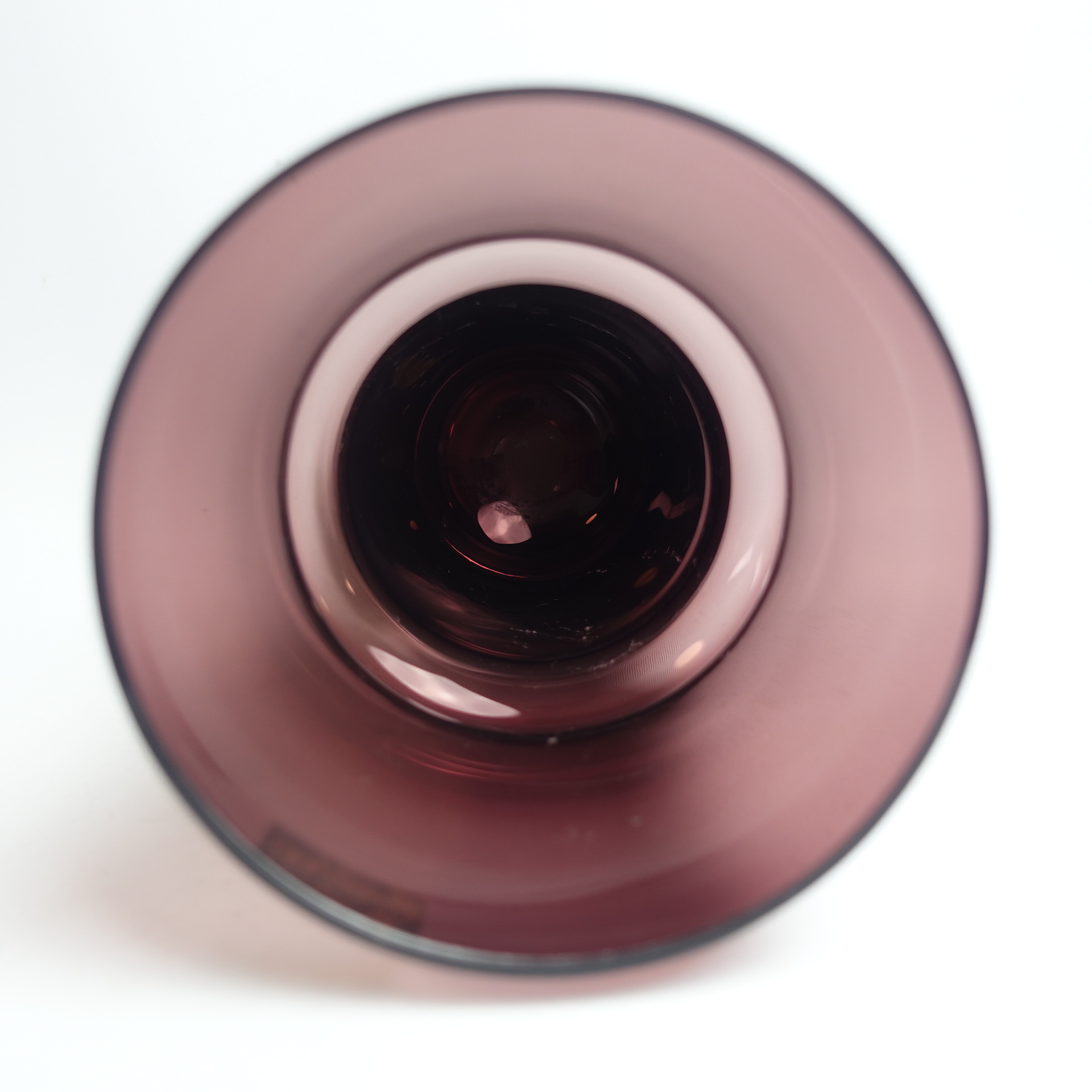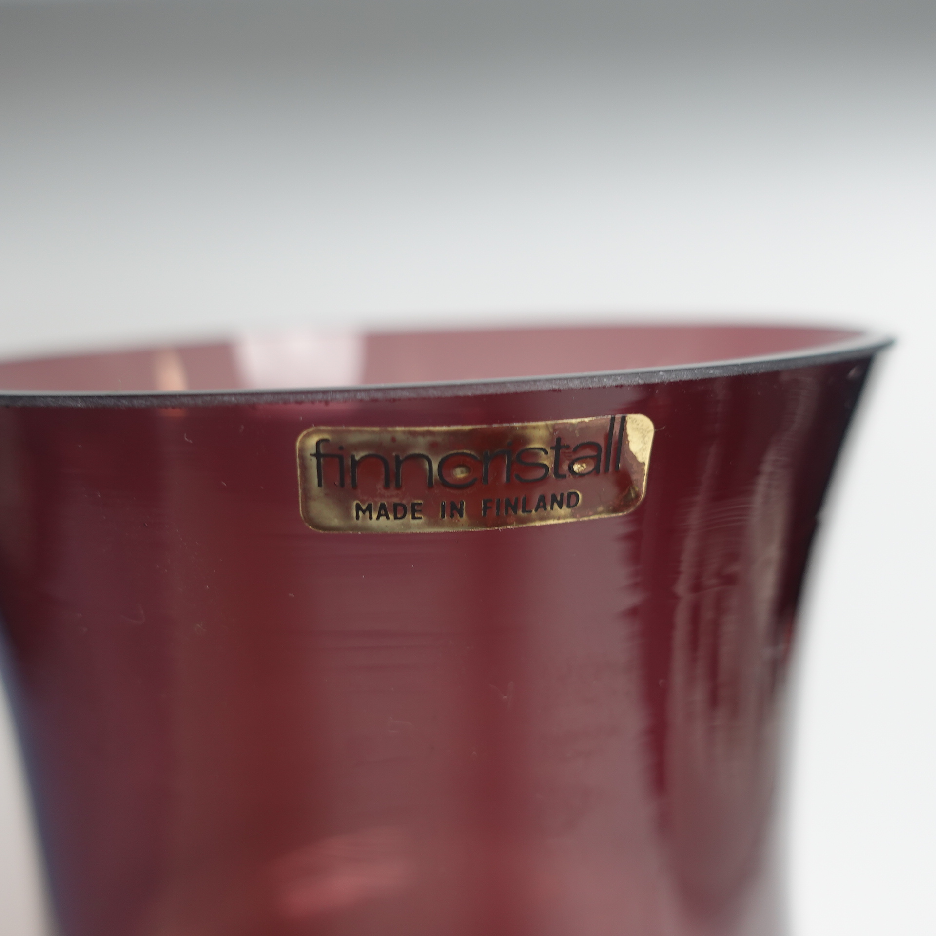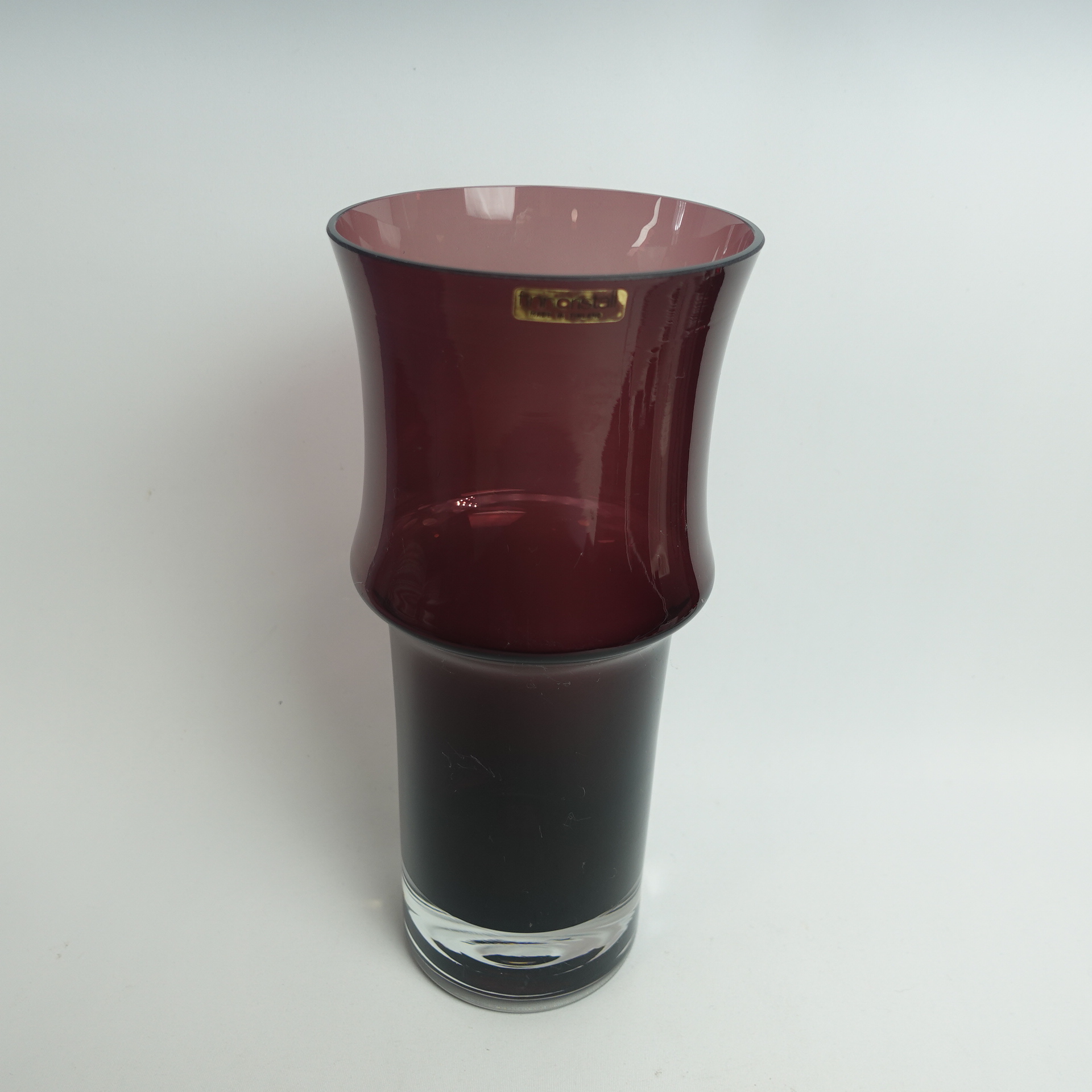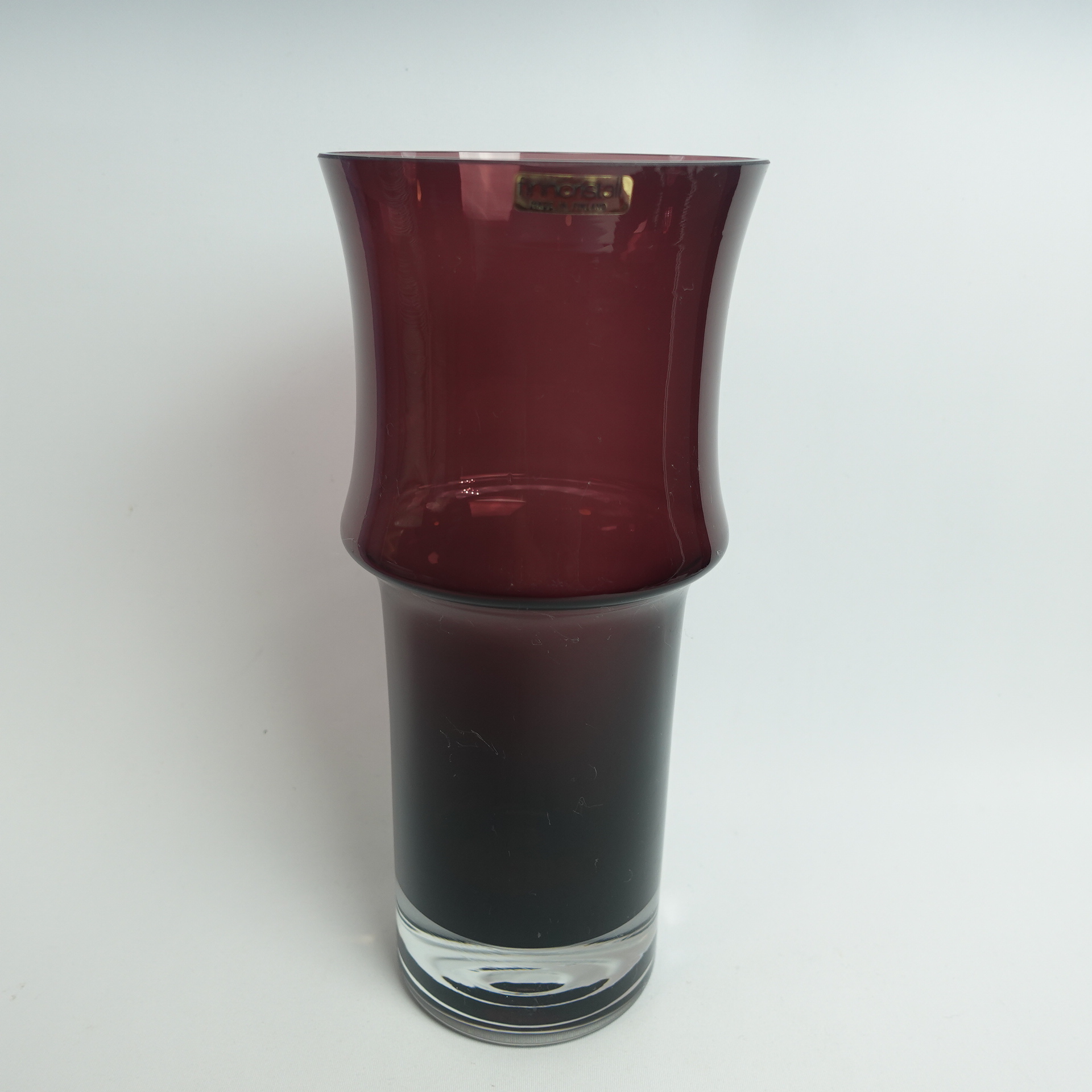 Lilac vase 1473 designed by Tamara Aladin for Riihimäki Glass. The vase was produced in 1967 and was made in several different sizes and colors. The largest vase in the series for sale is 25 cm high and its diameter is 11 cm. The vase is intact and otherwise in good condition. It also has a sticker with the text: Finn Cristall Made in Finland.
