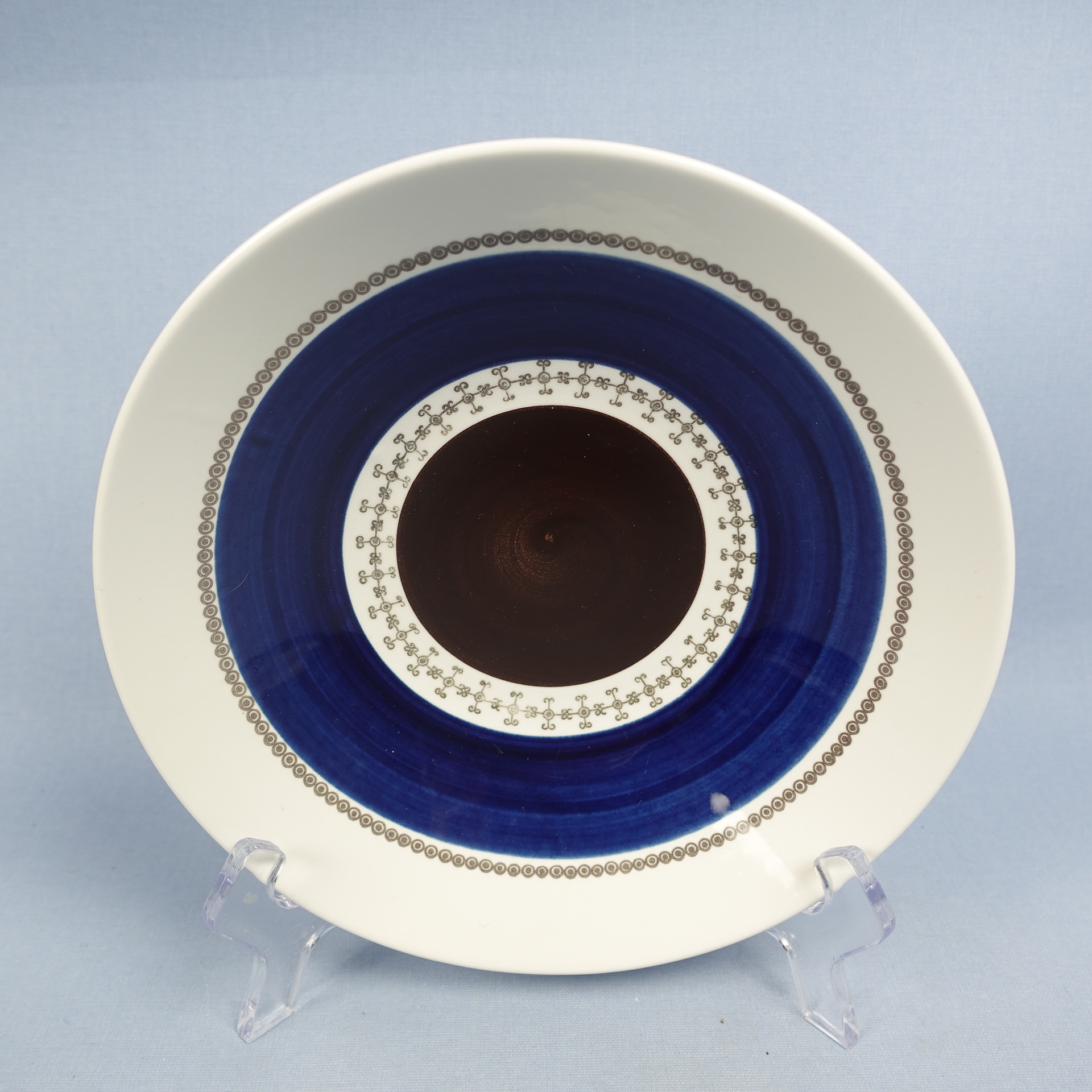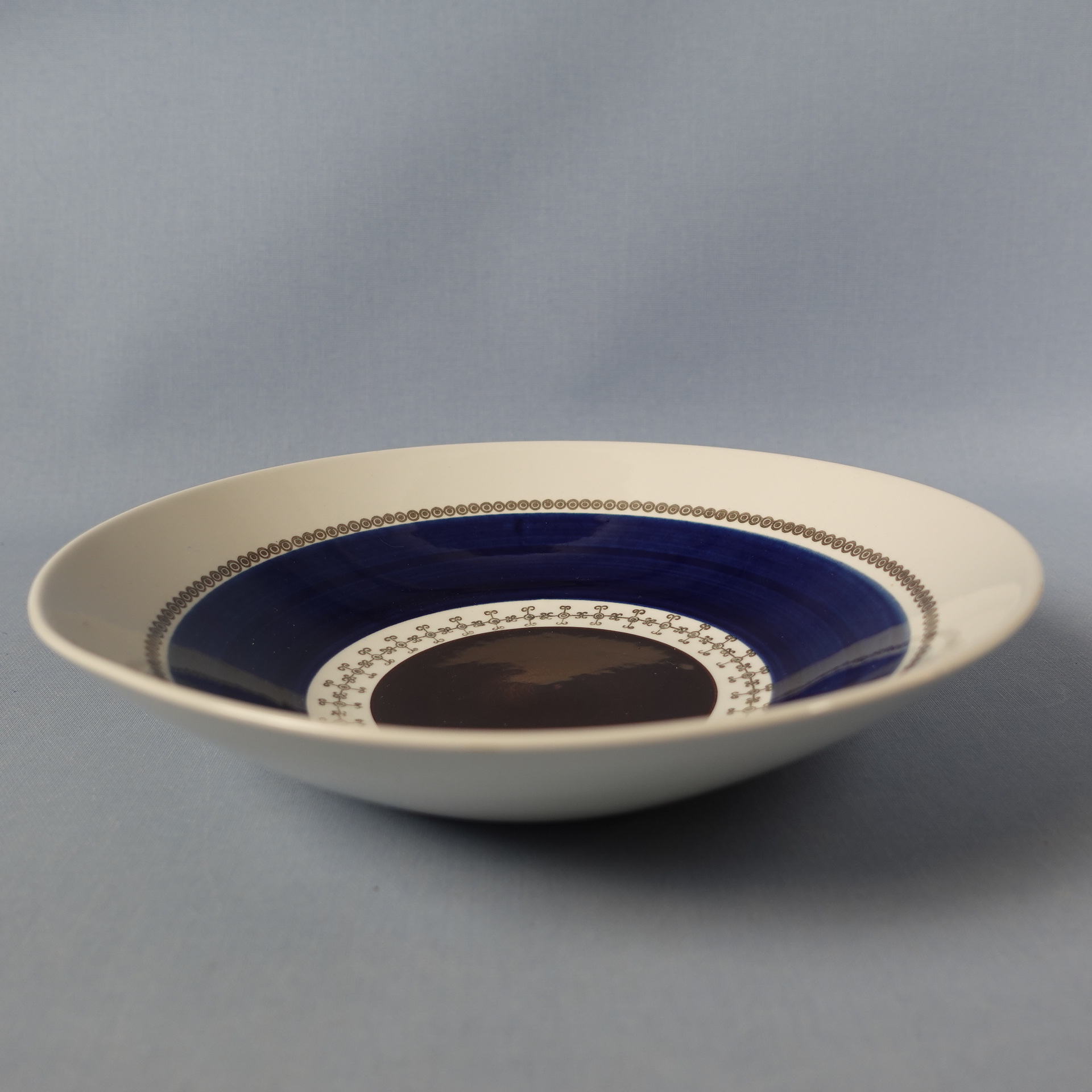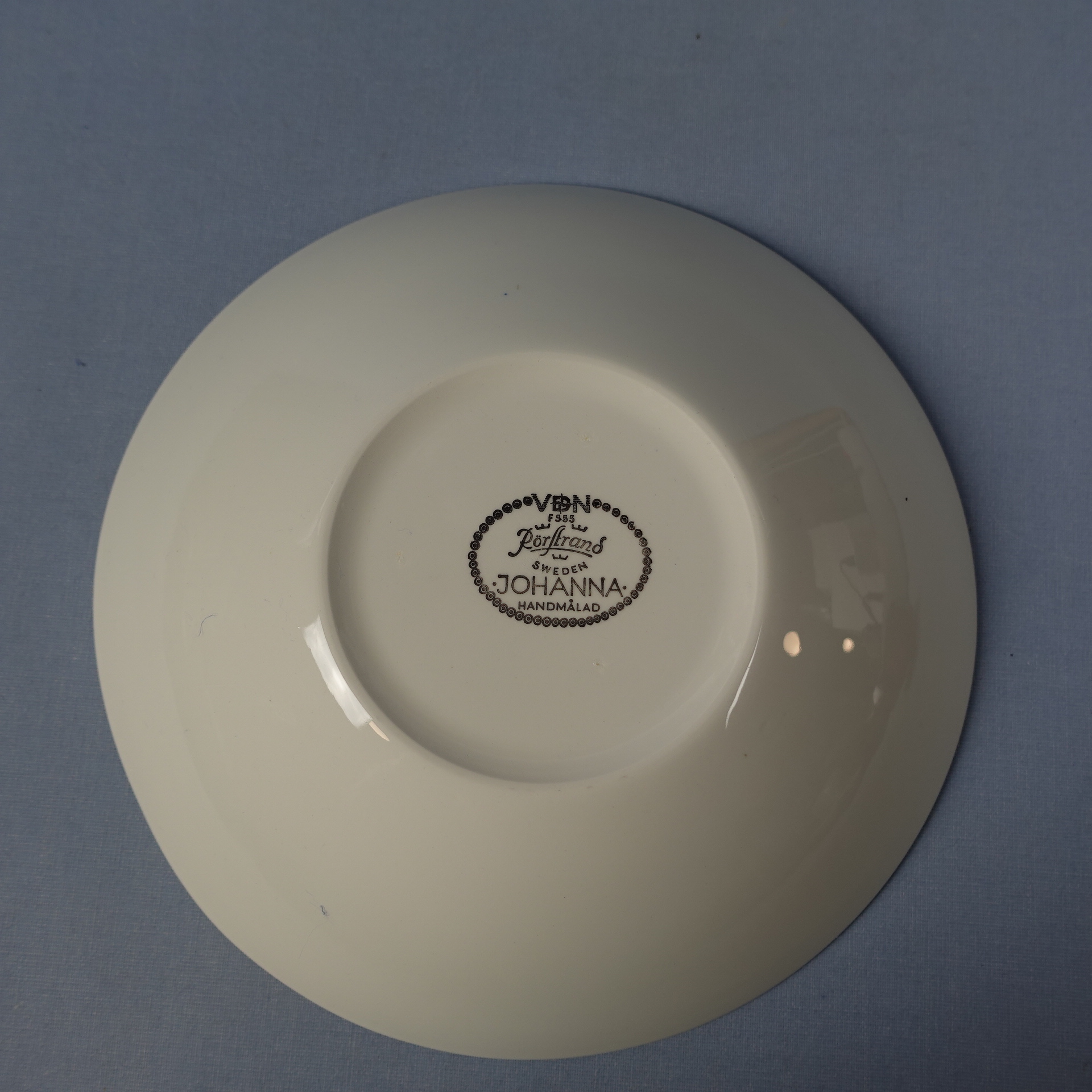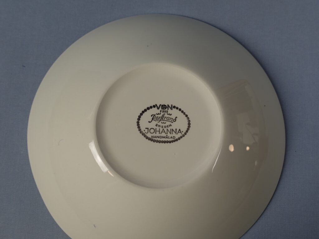 A deep plate from the Johanna series designed by Hertha Bengtsson for Rörstrand. The hand-painted decoration was produced in the 1960s/70s. The plates for sale are intact and otherwise in good condition, almost unused.