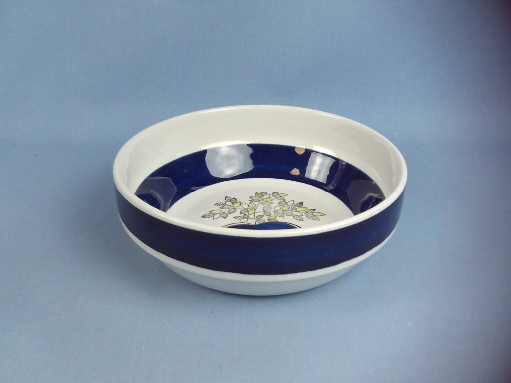 A serving bowl from the Viktoria series designed by Christina Campbell for Rörstrand. The hand-painted decoration was produced between 1967 and 1971. The bowl is 6.3 cm high and 18.6 cm in diameter. The bowl for sale is intact and otherwise in good condition.