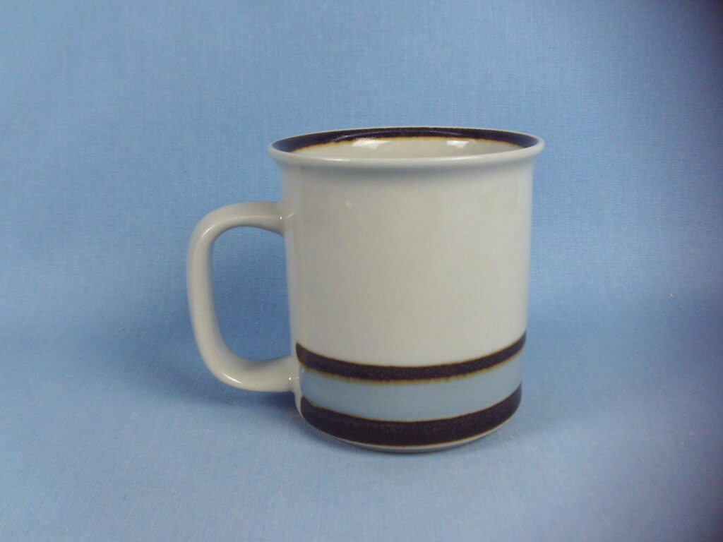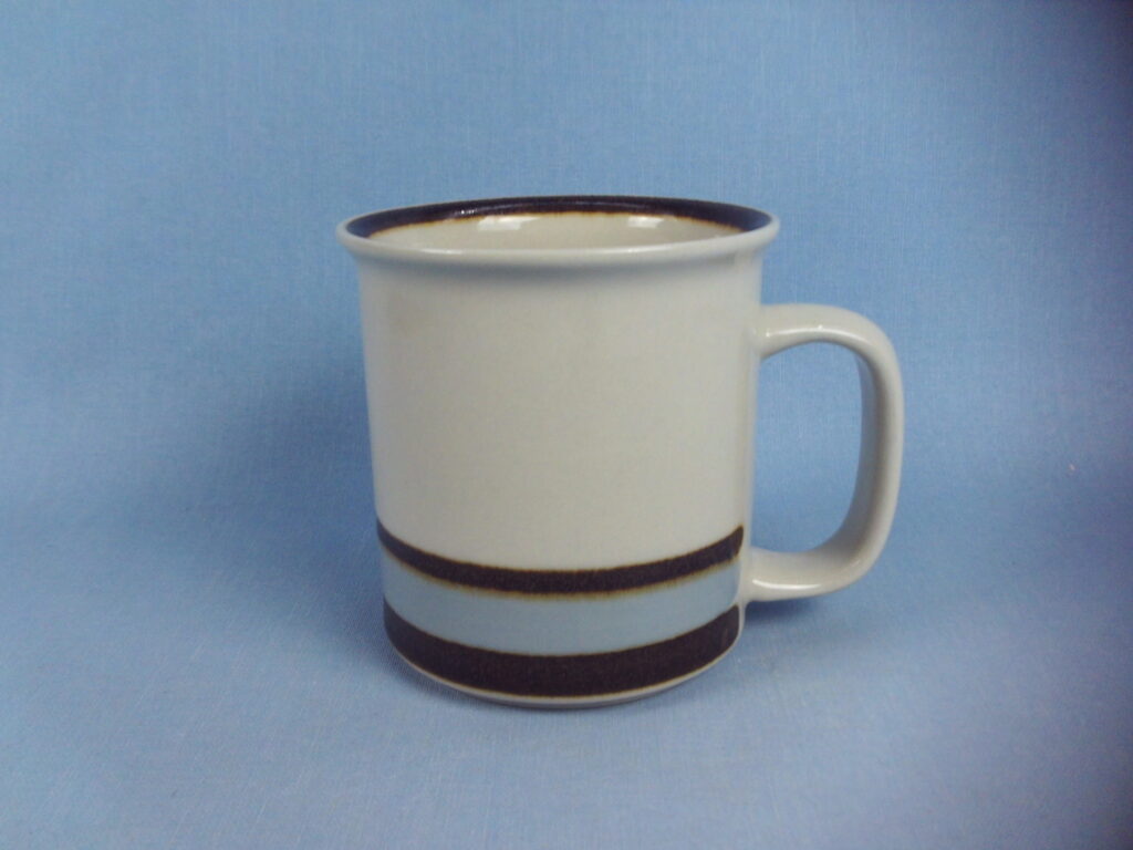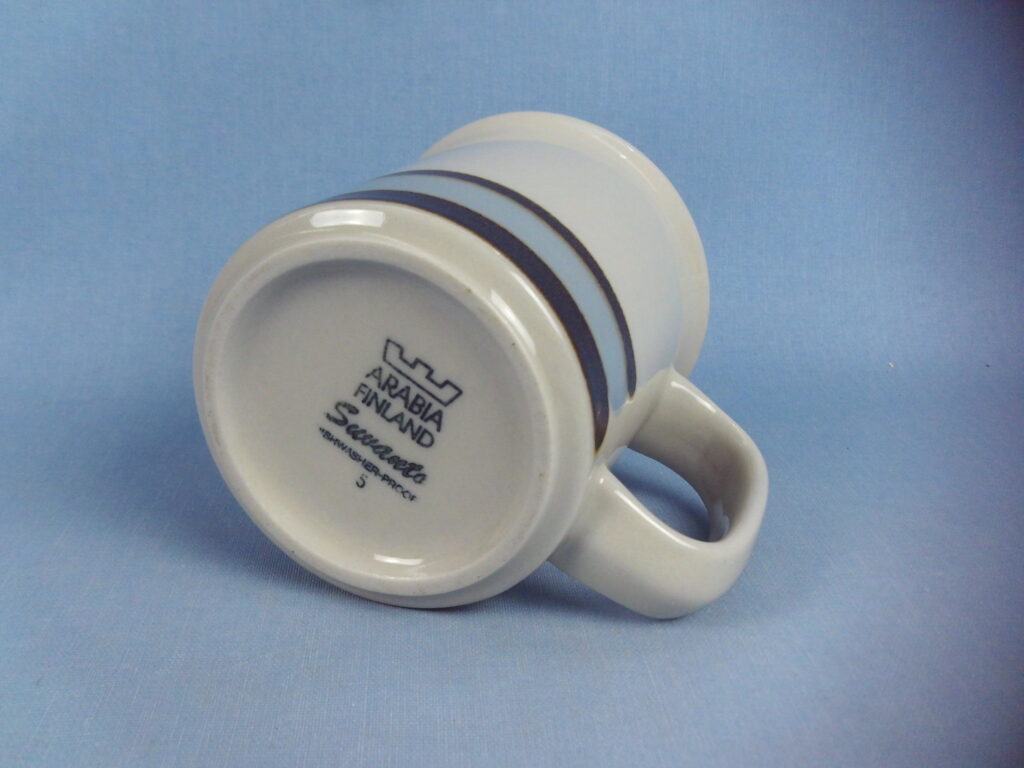 A mug from the Suvanto series designed by Raija Uosikkinen for Arabia. The decoration was produced on the S-model dishes designed by Ulls Procopé in 1985-88. The diameter of the mug is 8.2 cm, height 8.8 cm and volume 30 cl. The mugs for sale are intact and otherwise in very good condition.