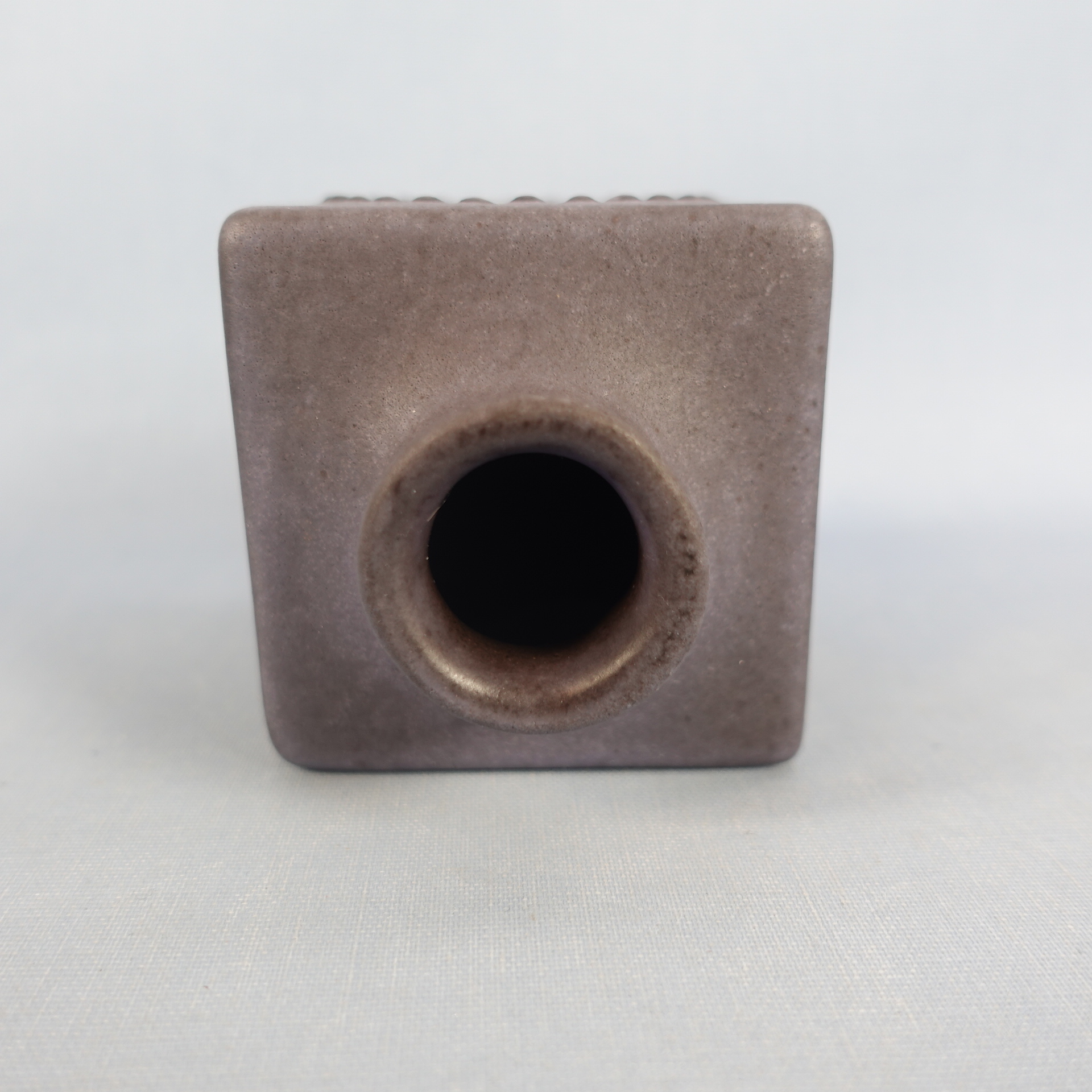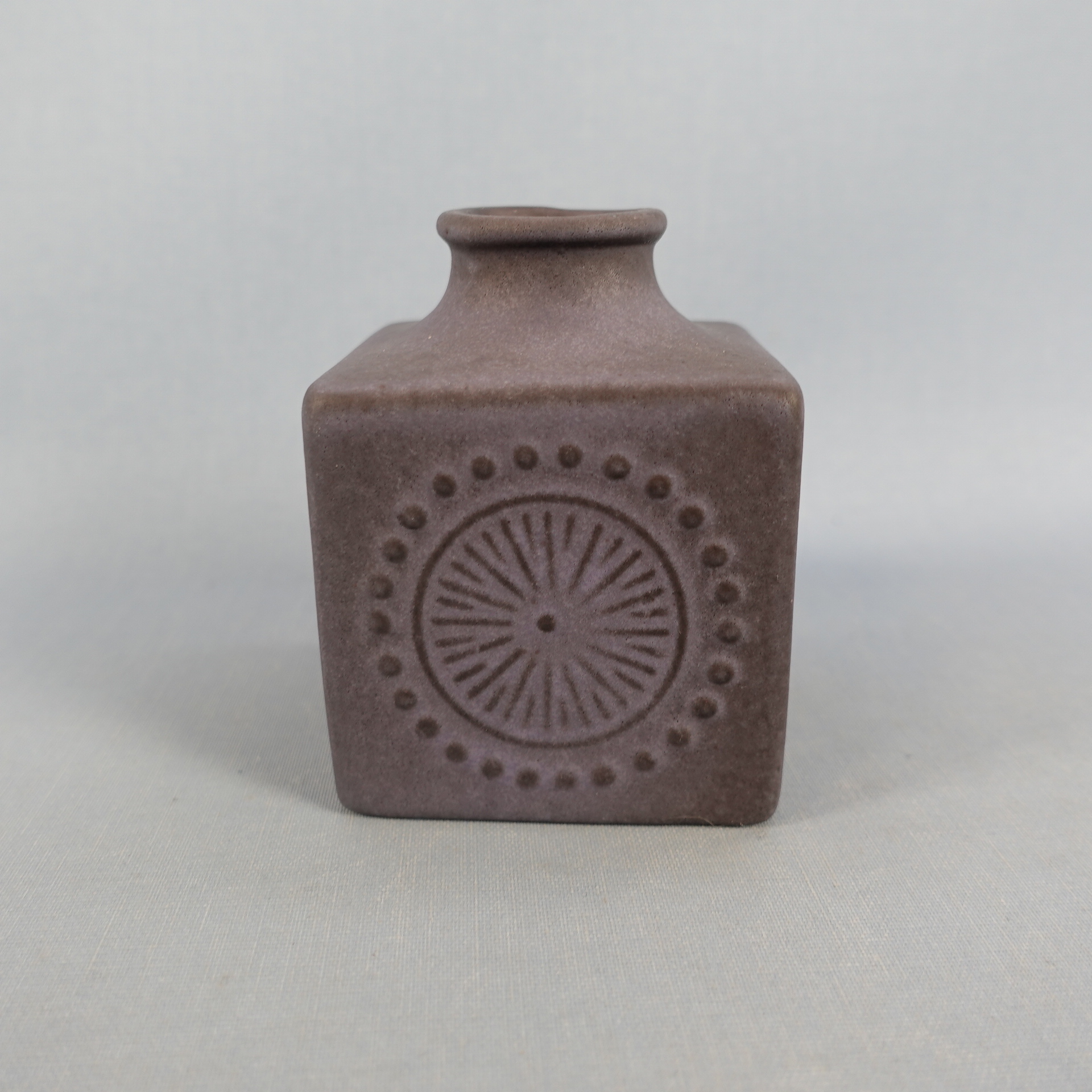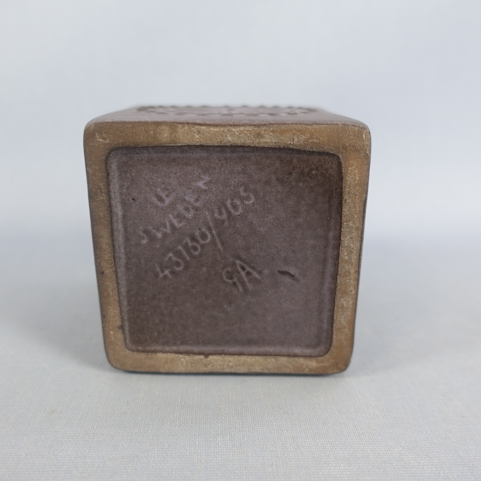 A small cube-shaped vase designed by Göran Andersson for Uppsala-Ekeby. The vase is from the 1960s. The width of the vase is 7 cm and the height is 9 cm. The beautiful lilac-colored vase for sale is intact and otherwise in good condition.