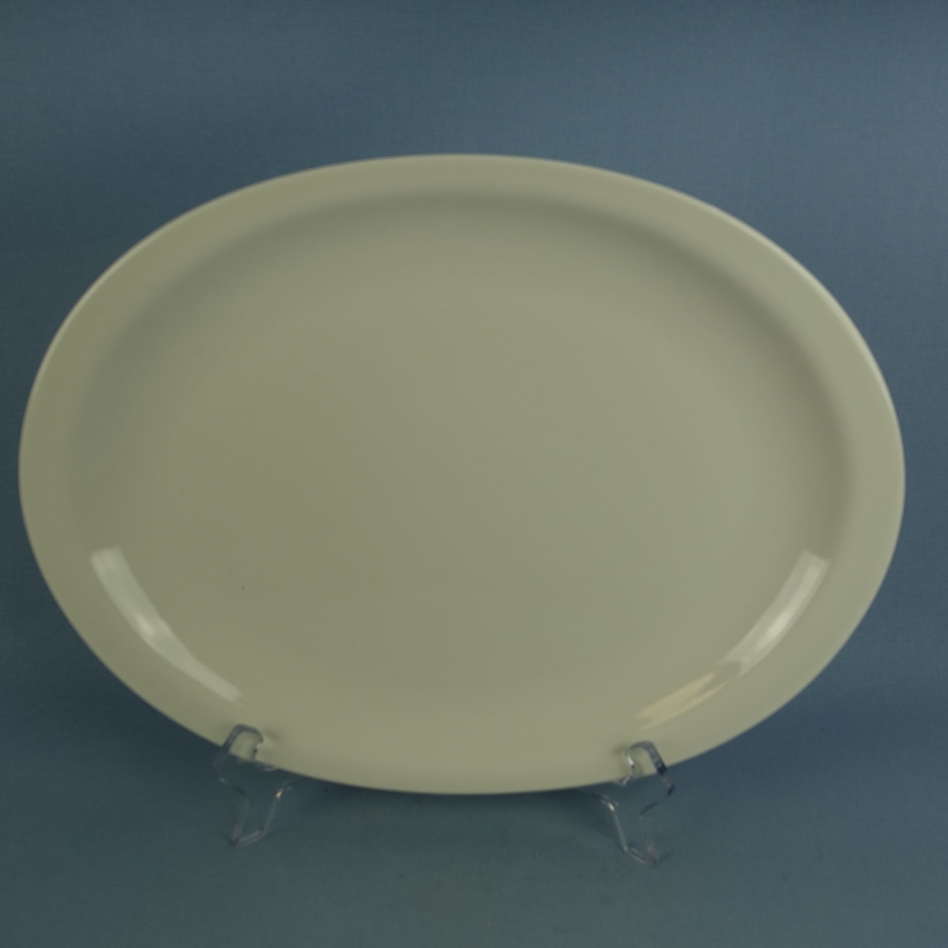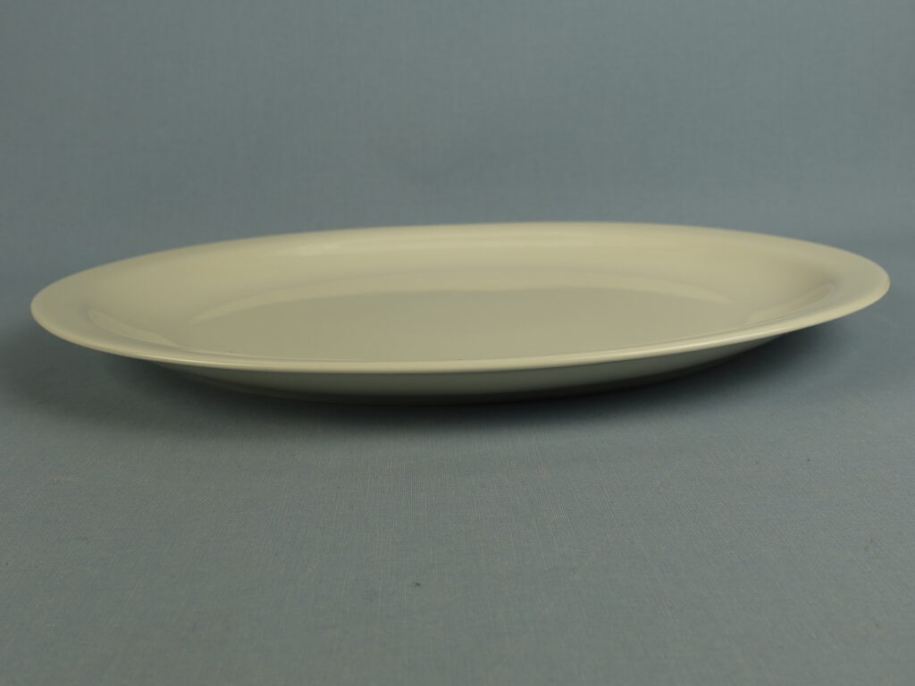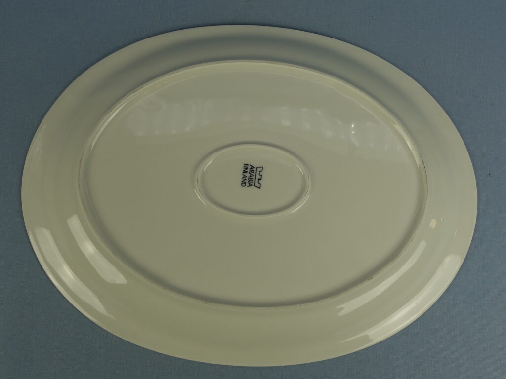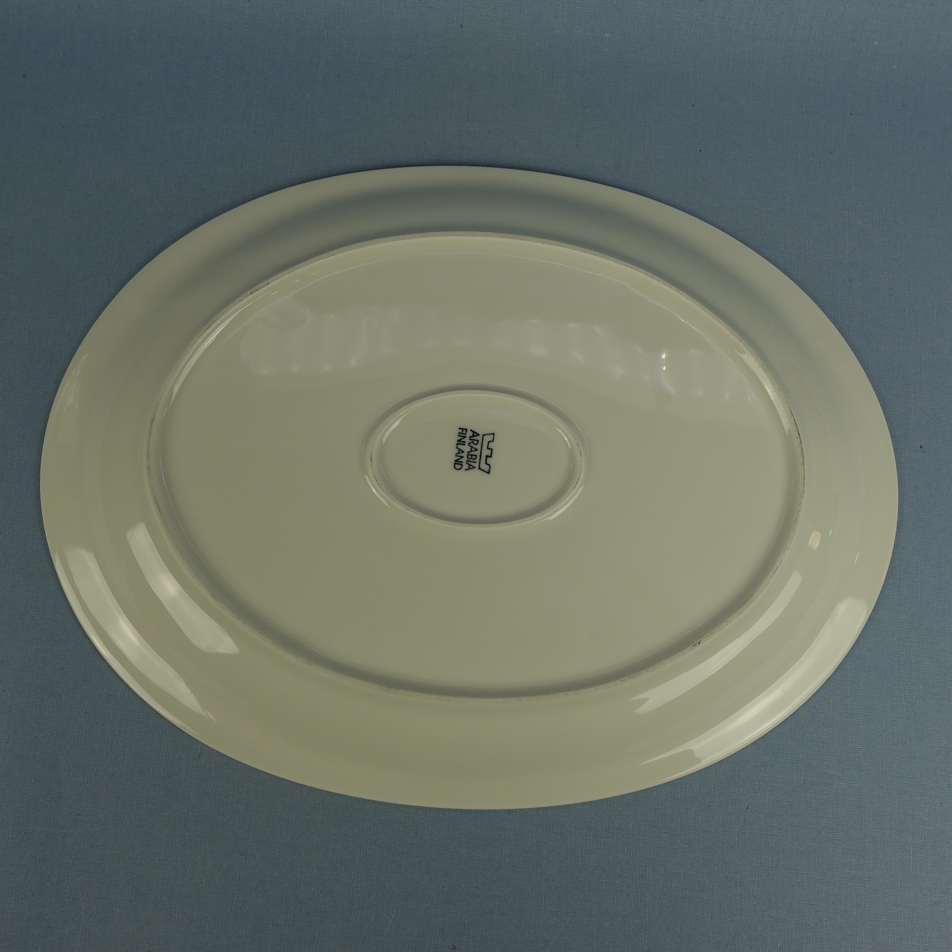 White oval serving platter from the Arctica series designed by Pentagon Design for Arabia. The platter measures 33 x 25 cm. The platter for sale is intact and in good condition. It only shows minor signs of use.