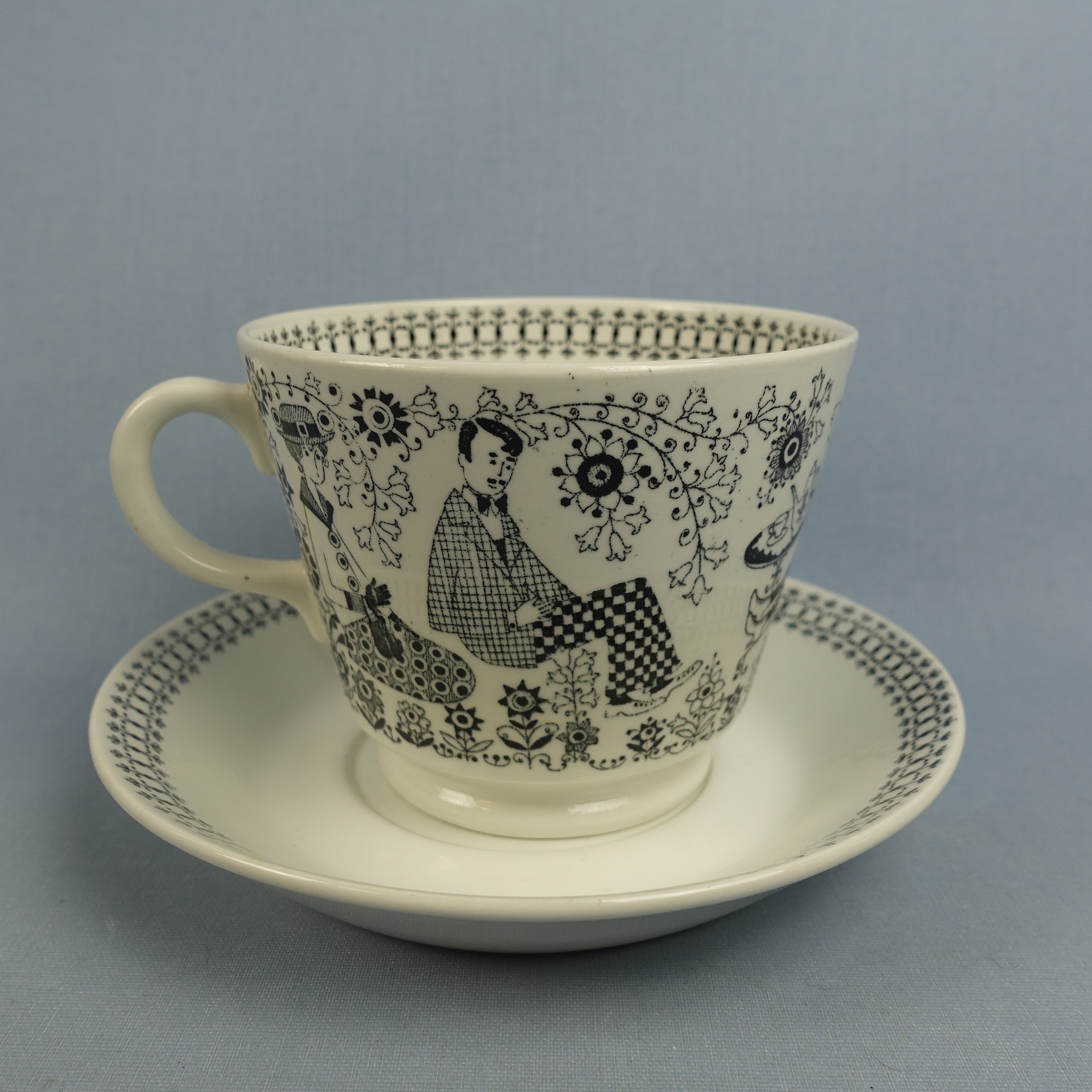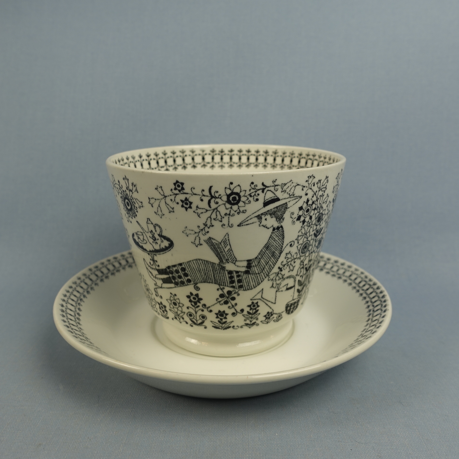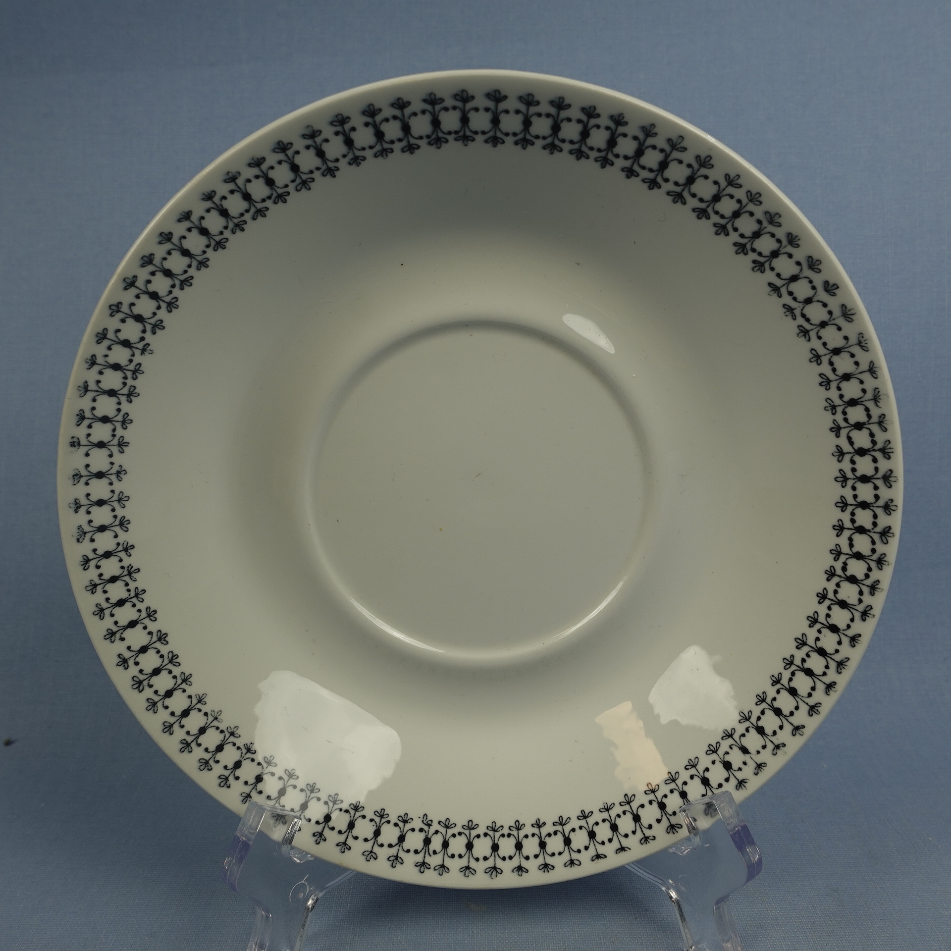 Raija Uosikkisen Arabialle suunnitteleman Emilia-sarjan isokokoinen kahvikuppi. Koriste oli tuotannossa Kaj Franckin suunnittelemassa XB-mallin kupissa v. 1958-66. Kupin korkeus on 9,2 cm, halkaisija 11,5 cm ja tilavuus 50 cl. Lautasen halkaisija on 17 cm ja korkeus 3 cm. Myynnissä oleva harvinainen kuppi on ehjä ja muutenkin hyväkuntoinen. Siinää ei ole juurikaan käytöstä tulleita jälkiä, eikä myöskään krakeloitumia. Kupin korvassa on pieni tuotannon aikainen väritahra kts. kuva.