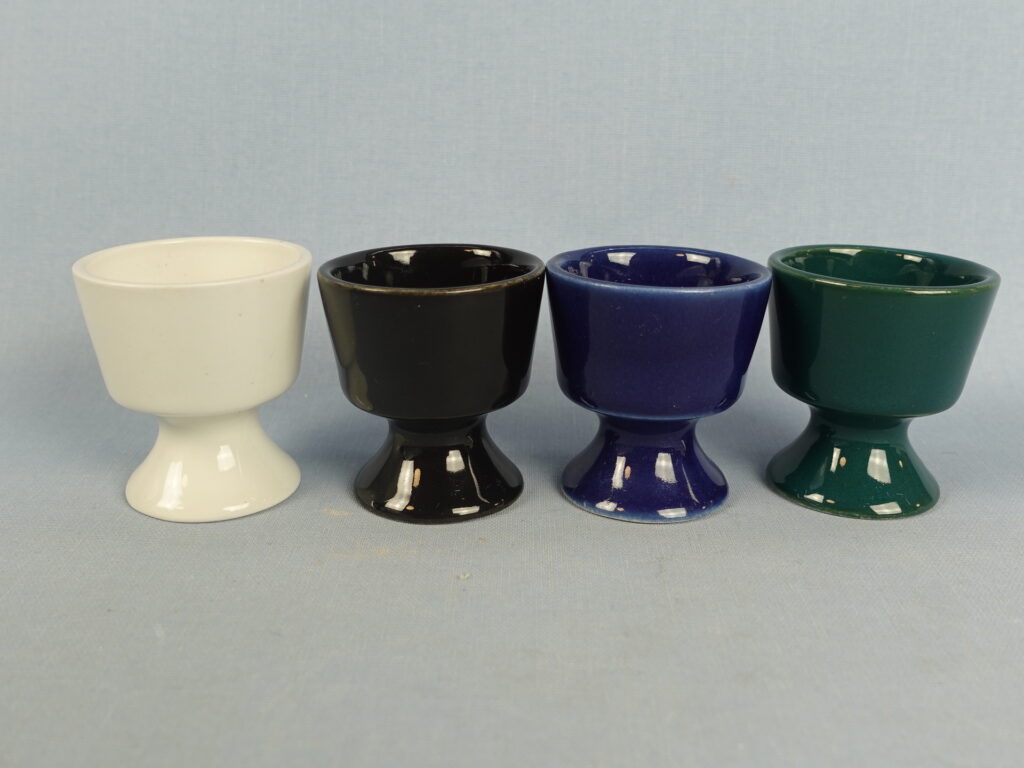 Kaarina Ahon Arabialle suunnittelema HN-mallin munakuppi eri värisillä Kilta-lasitteilla. Munakupit lienevät 1960-luvun tuotantoa. Munakupin korkeus on 5,4 cm ja halkaisija 4,8 cm. Myynnissä olevat munakupit ovat ehjiä ja muutenkin hyväkuntoisia.