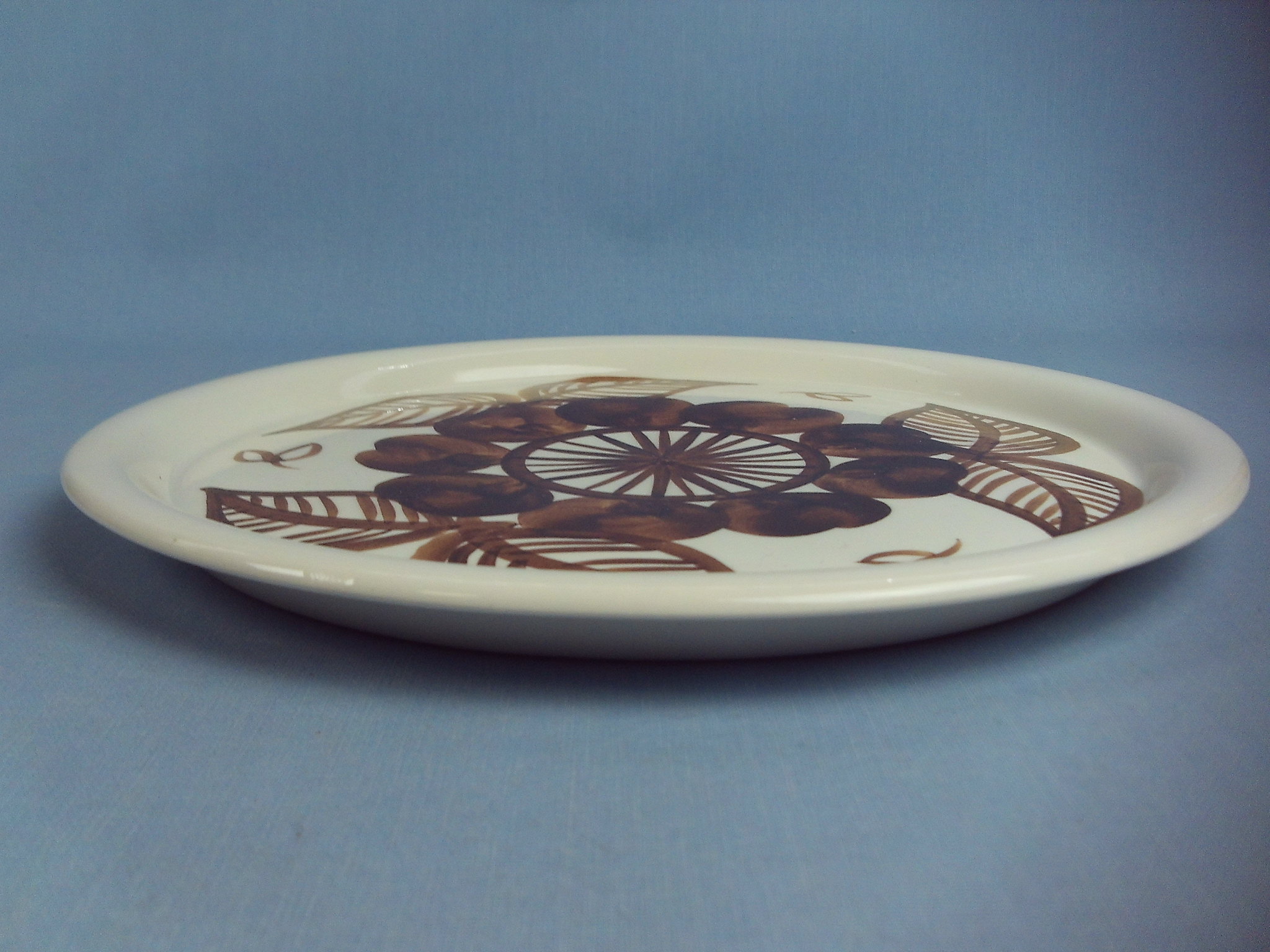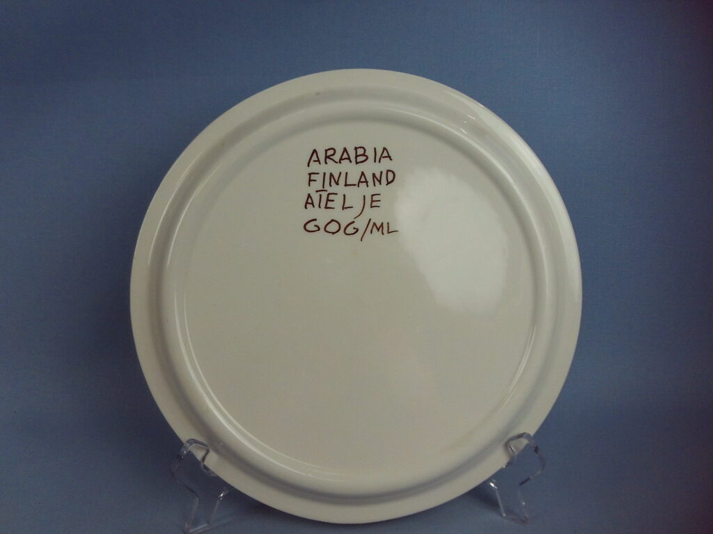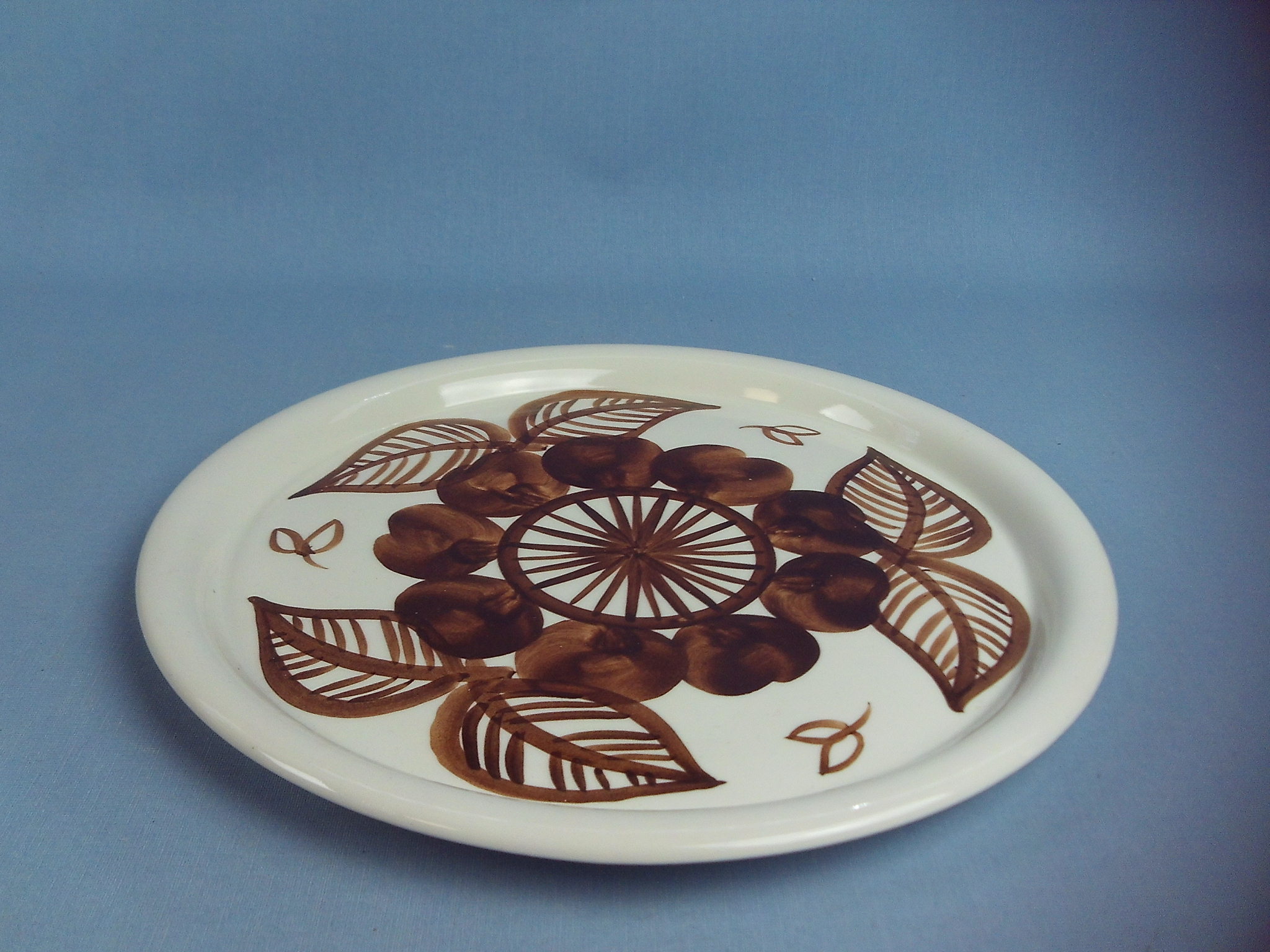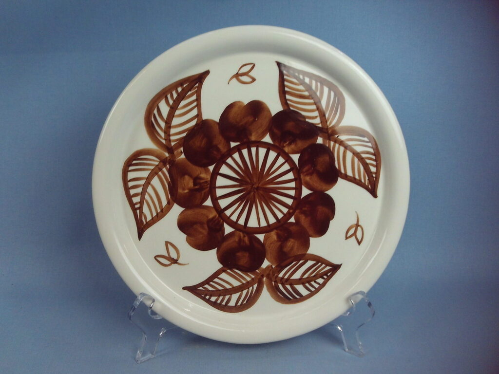 Gunvor Olin-Grönqvistin Arabialle suunnittelema ruskea Köökki-sarjan lautanen. Käsinmaalattu koriste oli tuotannossa v. 1960-76. Lautasen halkaisija on 23,5 cm ja korkeus 1,5 cm. Myynnissä oleva lautanen on ehjä ja muutenkin hyväkuntoinen, lähes naarmuton.