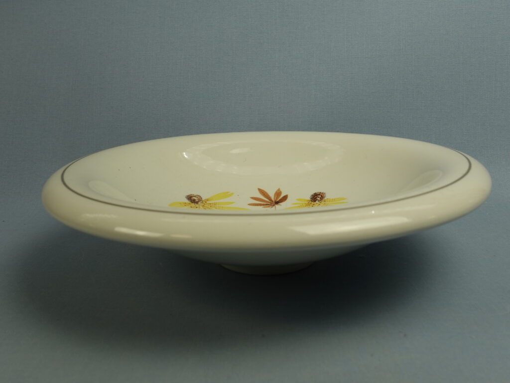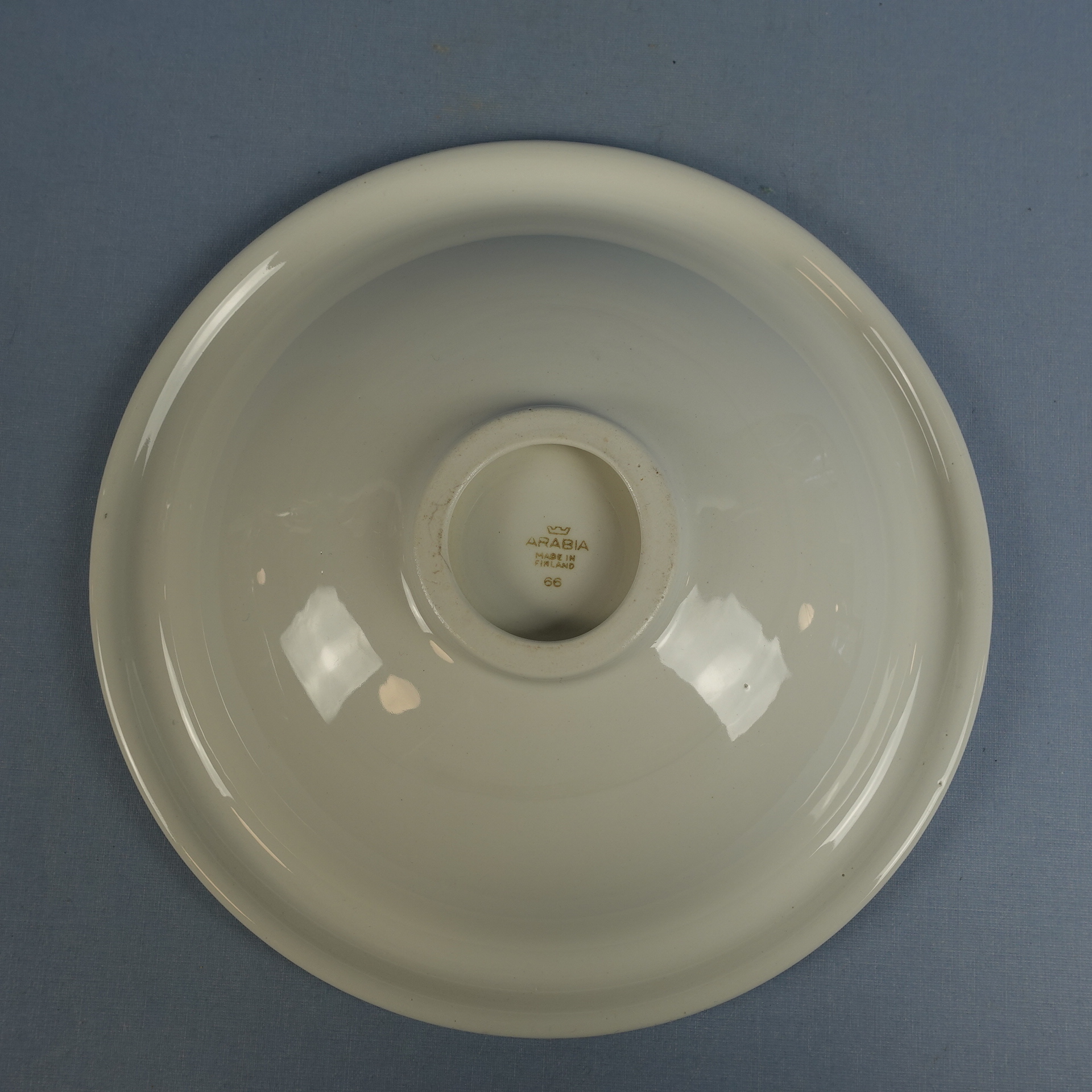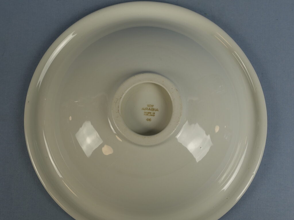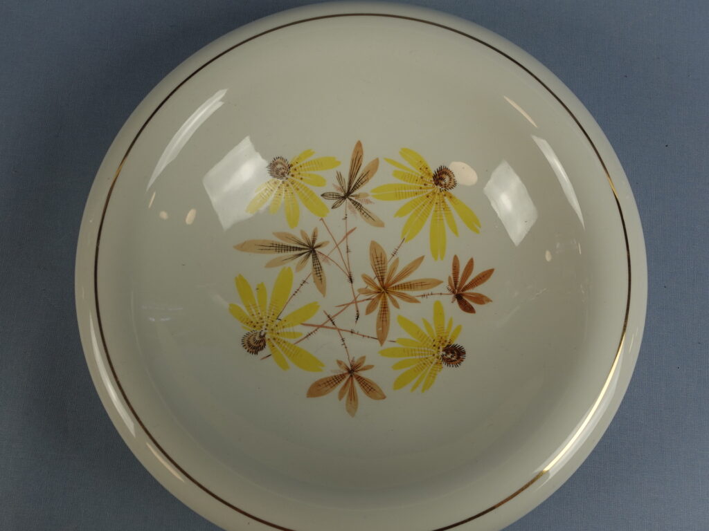 Arabian valmistama koristekulho keltaisilla kukilla. Kulho on 1950/-60-luvun tuotantoa. Kulhon halkaisija on 25 cm ja korkeus 6,5 cm. Myynnissä oleva kulho on ehjä ja muutenkin hyväkuntoinen.