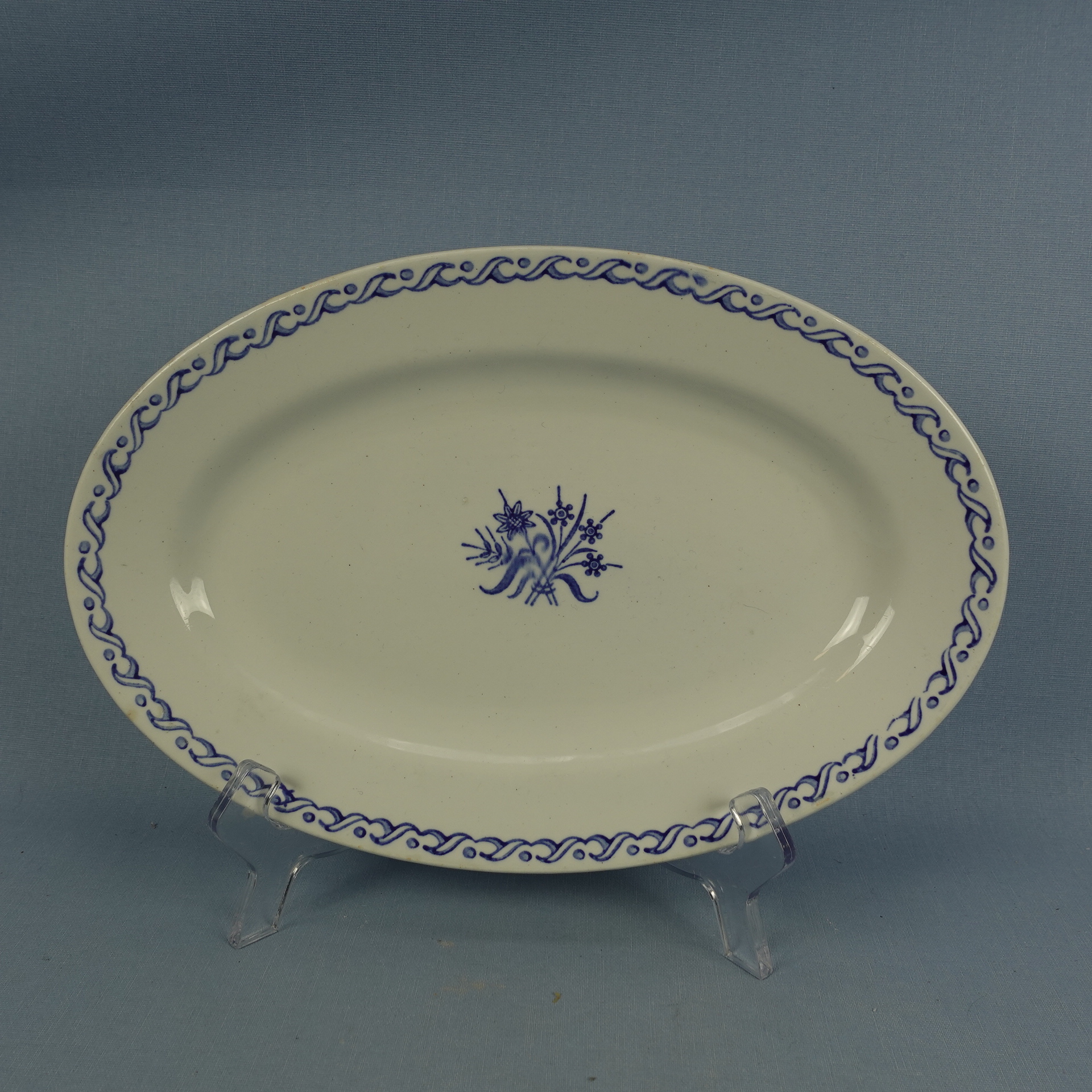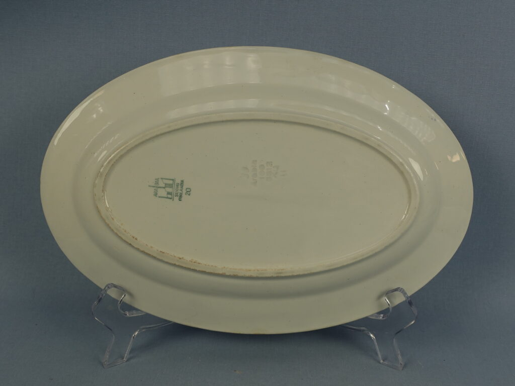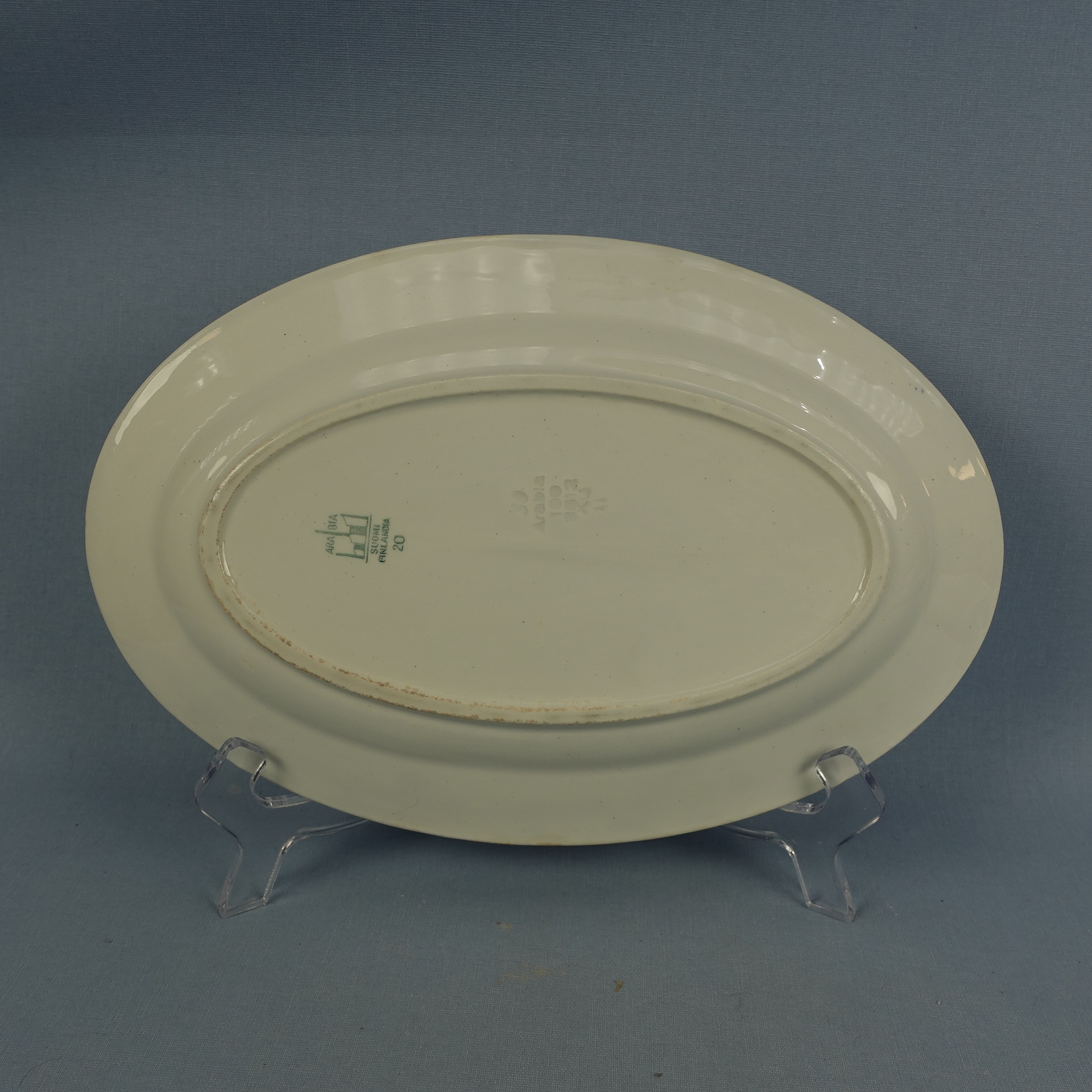 Arabian valmistama sininen Lehvä tarjoiluvati 1930-luvulta. Vadin pituus on 27 cm ja leveys 18 cm. Myynnissä oleva soikea vati on ehjä ja muutenkin hyväkuntoinen.