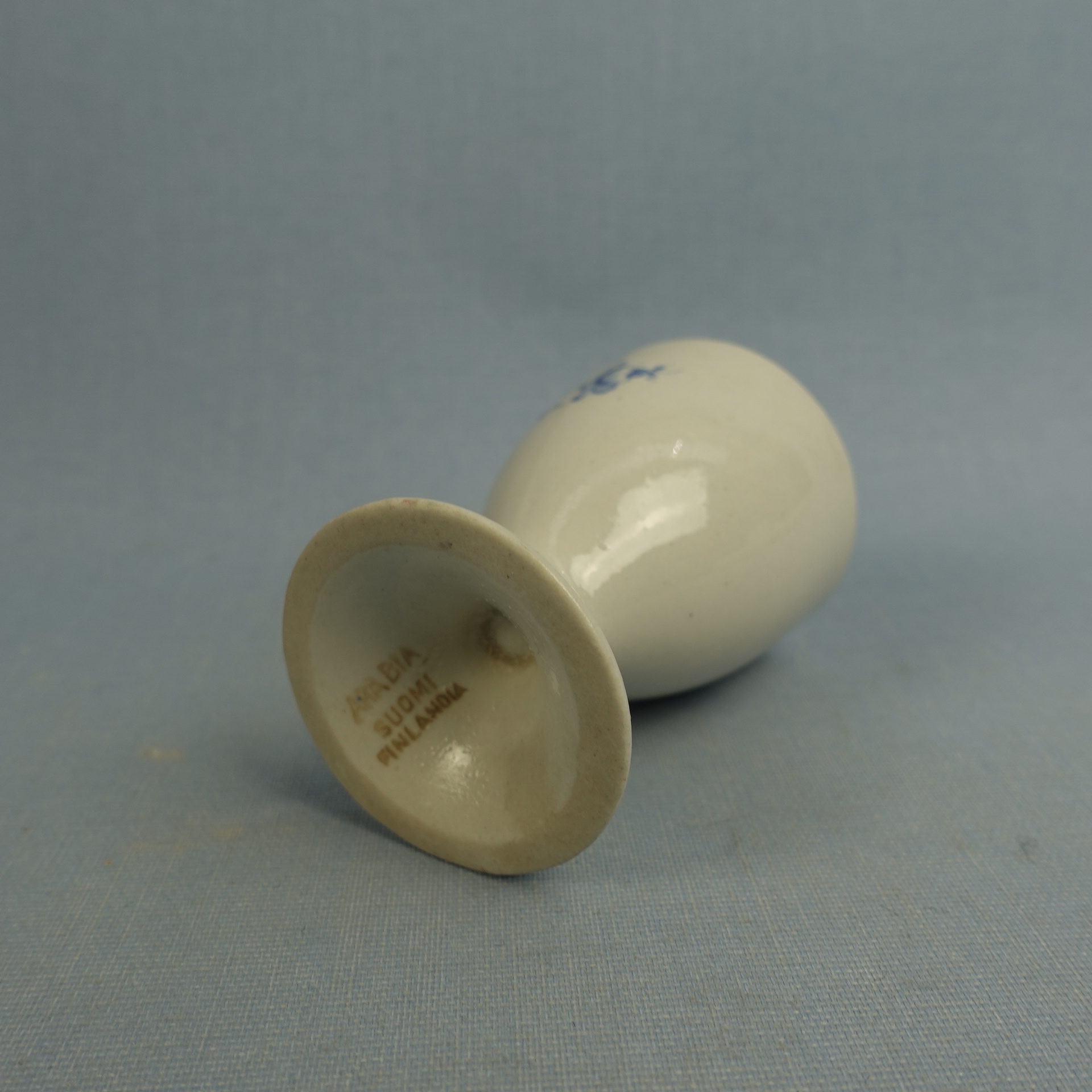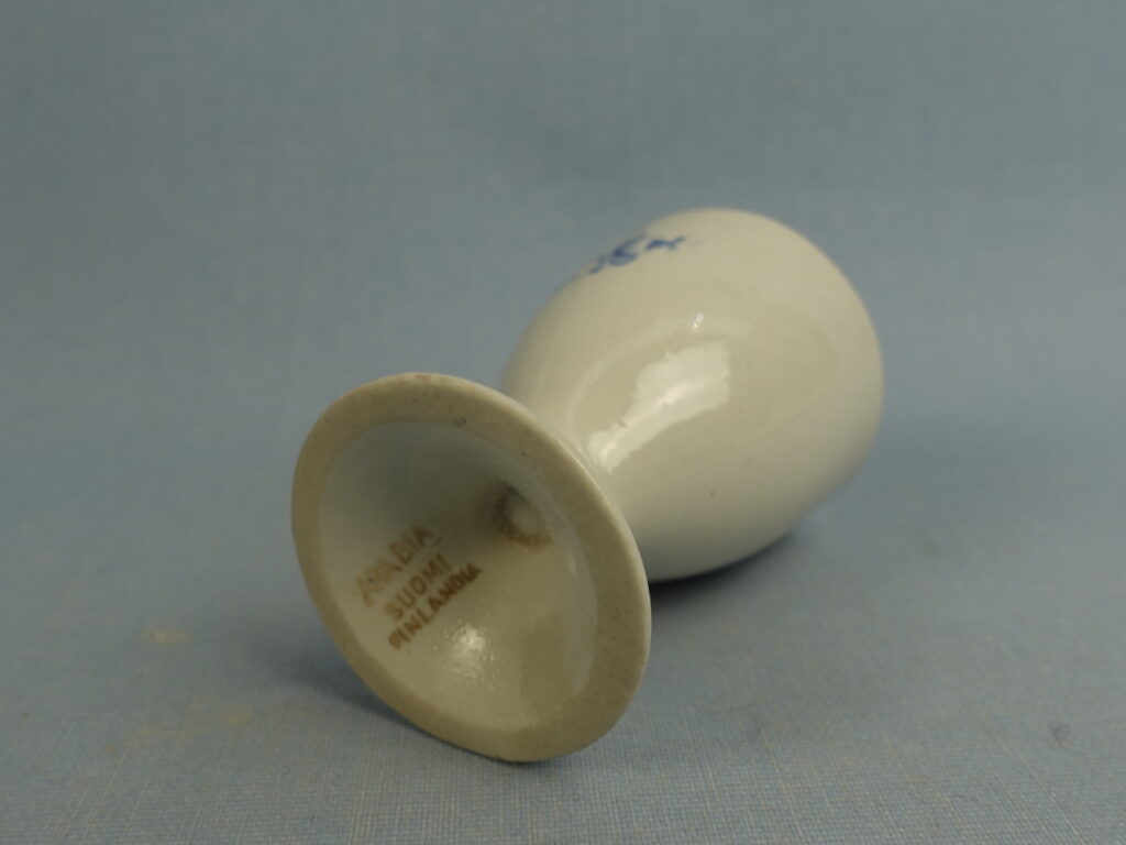 Reinhard Richterin Arabialle suunnitteleman HB-mallin munakuppi sinisellä kukalla. Munakuppi oli tuotannossa v. 1930/-40-luvulla. Munakupin korkeus on 6,2 cm ja halkaisija 4,4 cm. Myynnissä oleva munakuppi on ehjä ja muutenkin hyväkuntoinen.