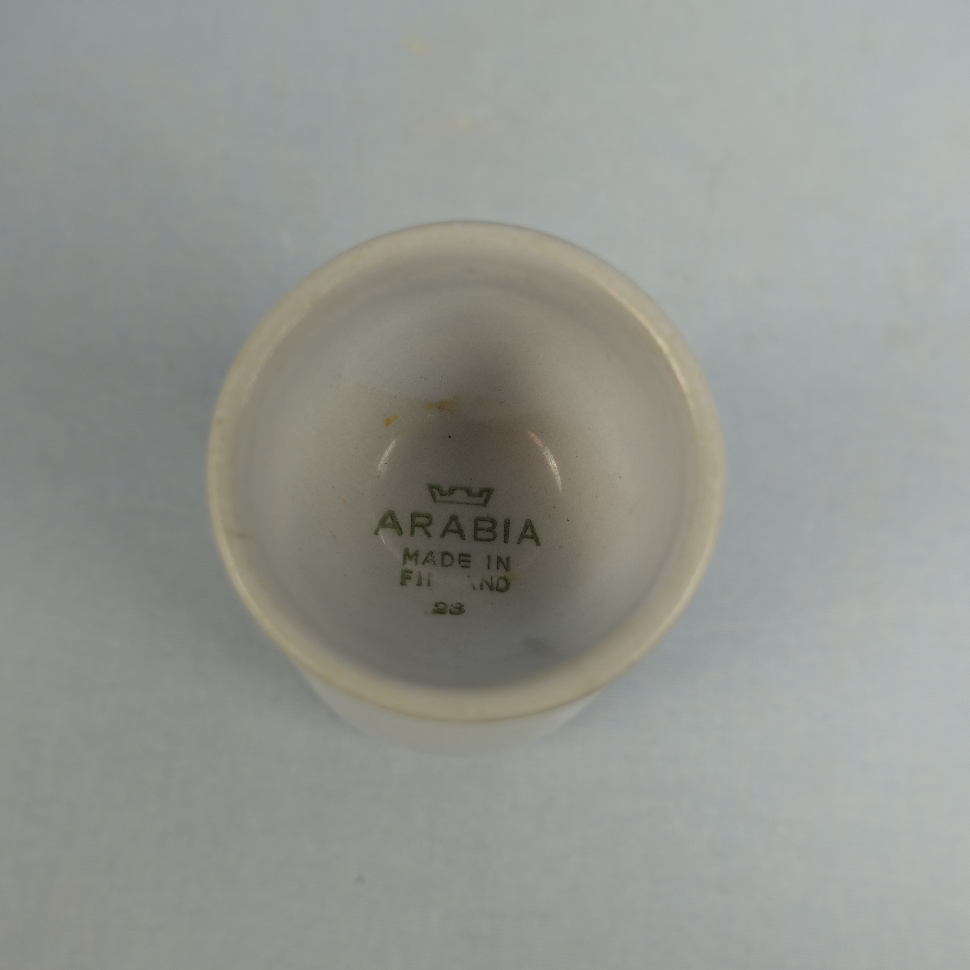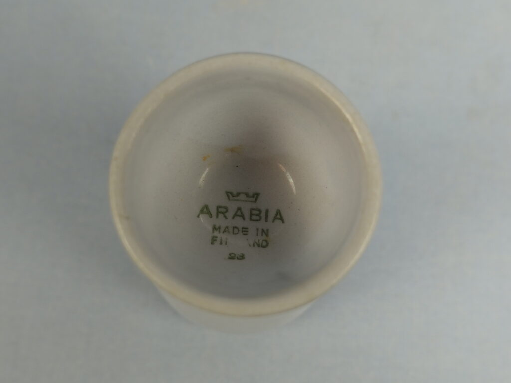 Olga Osolin Arabialle suunnittelema R-mallin sininen munakuppi/pikari. Munakupin korkeus on 10,2 cm ja halkaisija 4,8 cm. Pikarin halkaisija on 7 cm ja tilavuus 24 cl. Myynnissä oleva munakuppi/pikari on ehjä ja muutenkin hyväkuntoinen.
