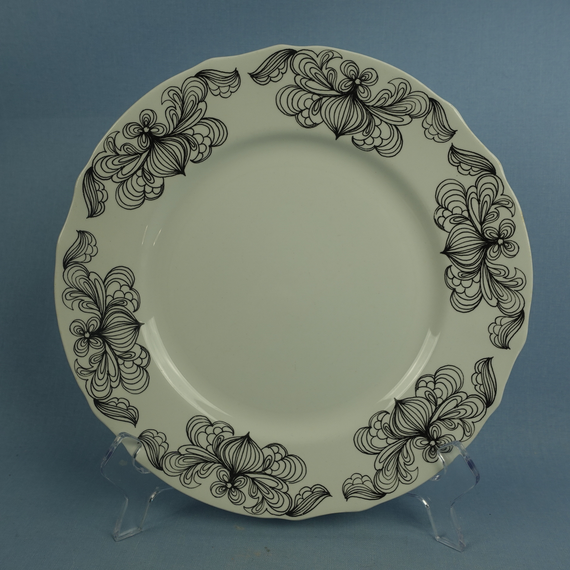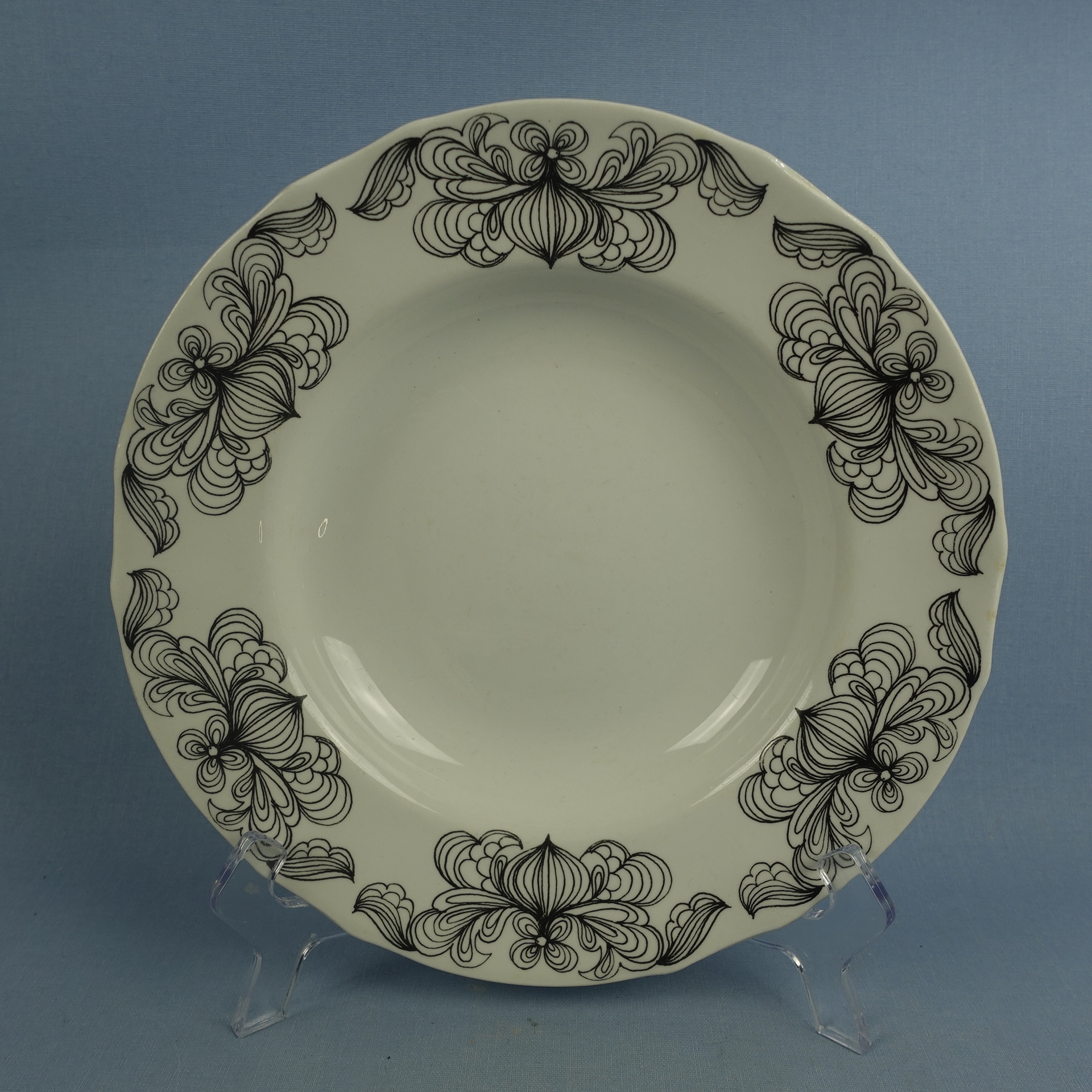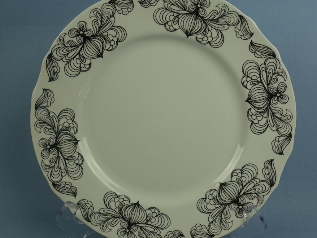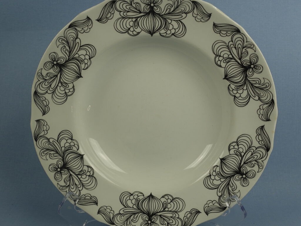 Esteri Tomulan Arabialle suunnitteleman Sipuli-sarjan erikokoiset lautaset. Koriste oli OTK:n tilaustyö v. 1970. Myynnissä olevat lautaset ovat ehjiä, mutta käytöstä tulleita jälkiä on näkyvissä.