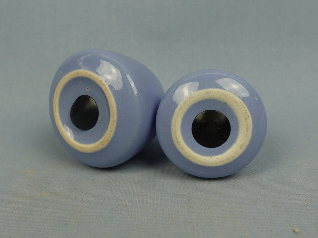 Olga Osolin Arabialle suunnittelema R-mallin sininen suola-ja pippurisirotin. Sirottimet olivat tuotannossa v. 1953-68. Isomman (=suolasirottimen) korkeus on 5 cm ja pienemmän (=pippurisirottimen) korkeus on 4,5 cm. Myynnissä olevat sirottimet ovat ehjiä ja muutenkin hyväkuntoisia, myös pohjatulpat ovat tallella.
