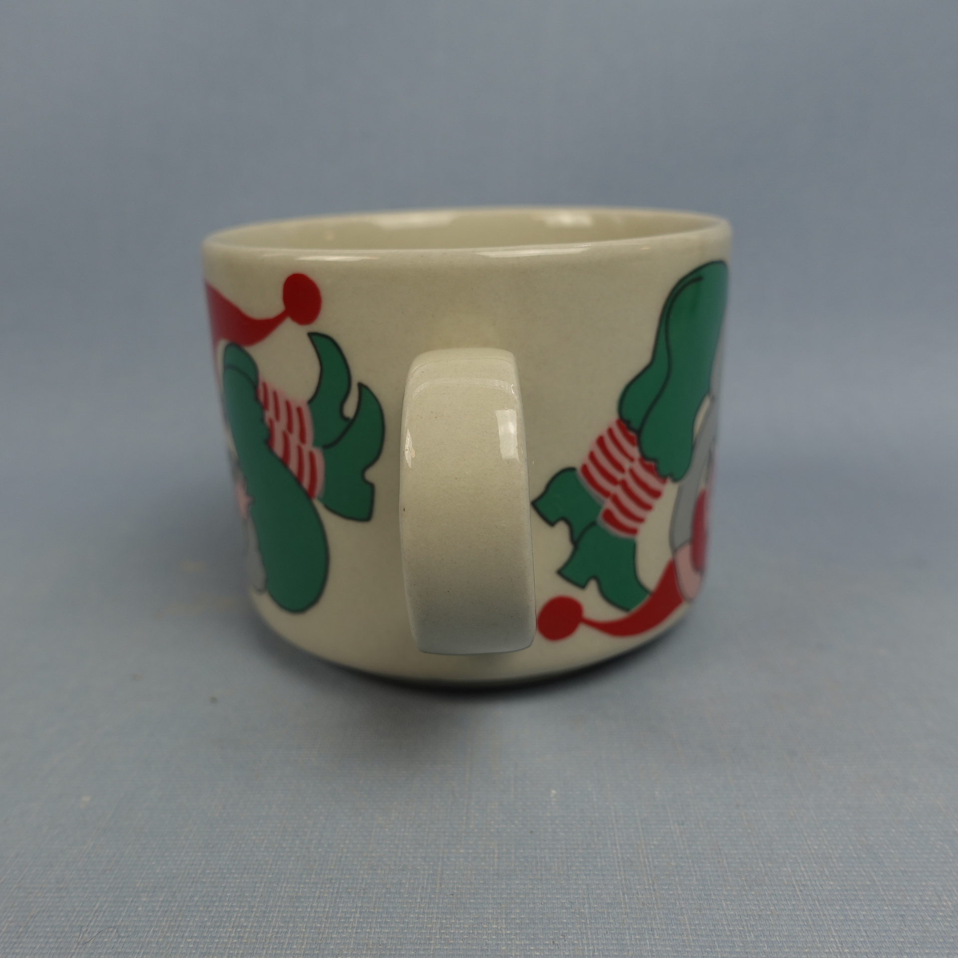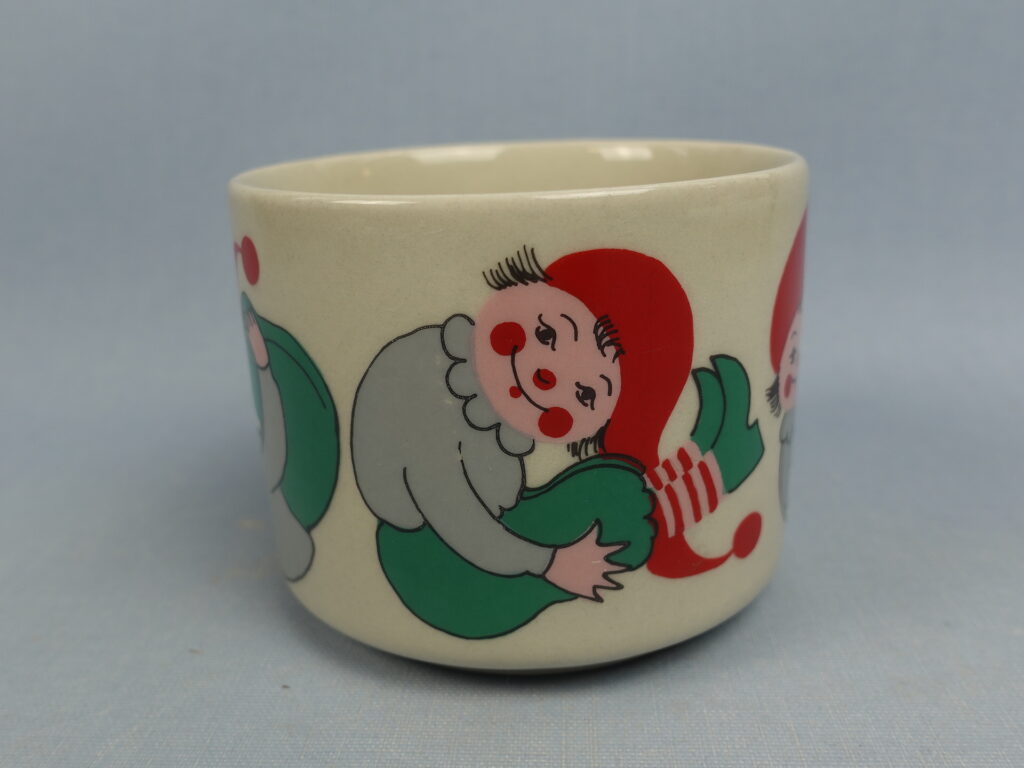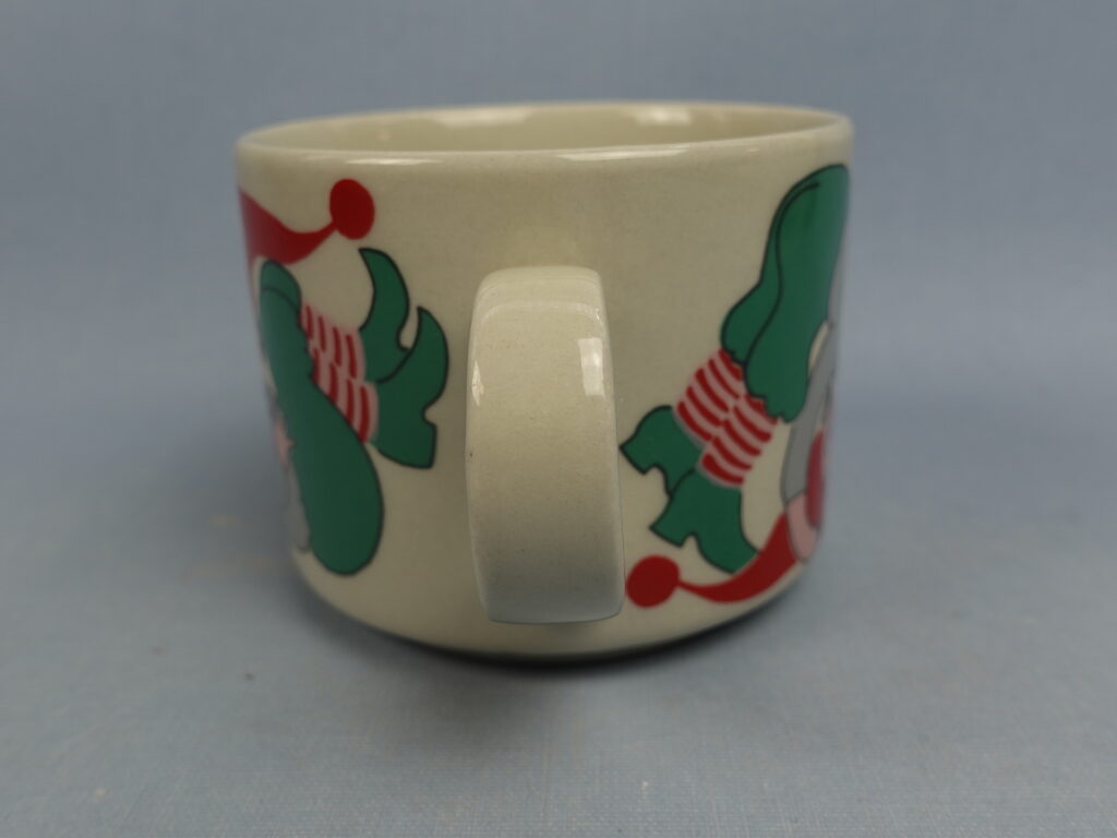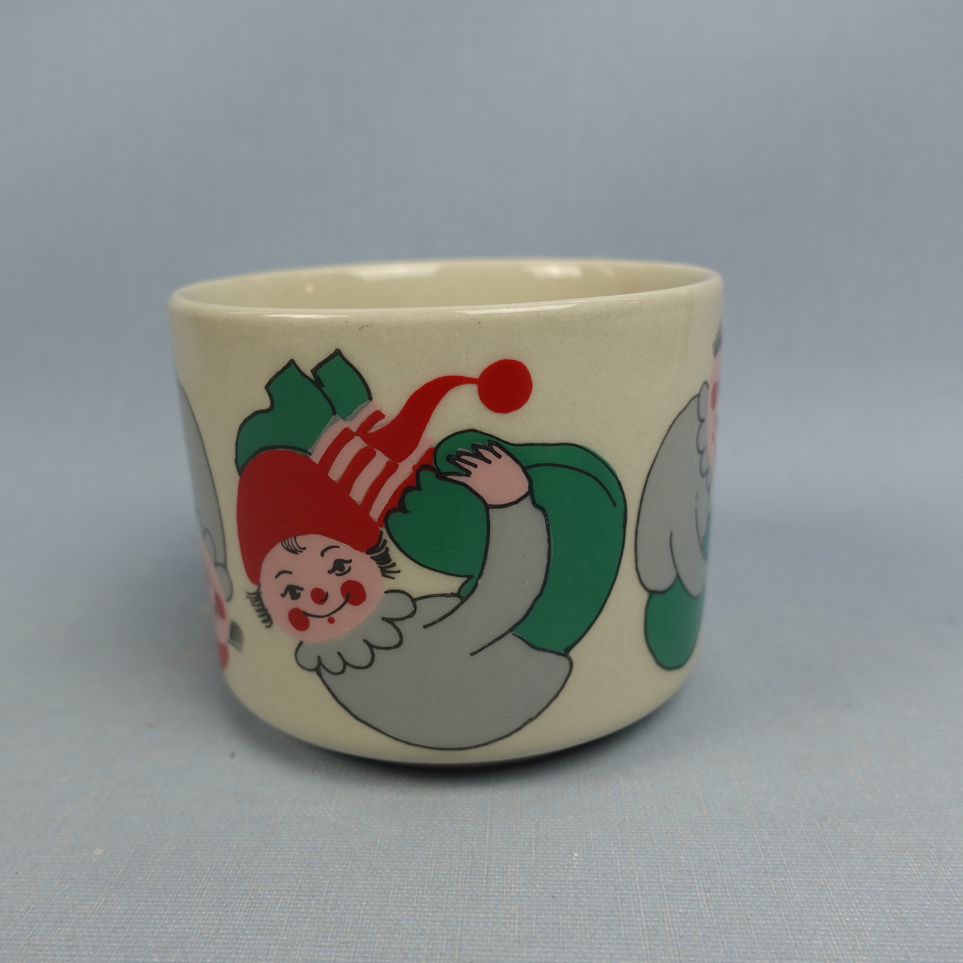 Arabian valmistama veikeä Tonttu muki 1970-luvulta. Mukin korkeus on 7 cm, halkaisija 8,5 cm ja tilavuus 28 cl. Myynnissä oleva muki on ehjä ja muutenkin hyväkuntoinen. Koristeissa ei ole naarmuja eikä kulumaa.