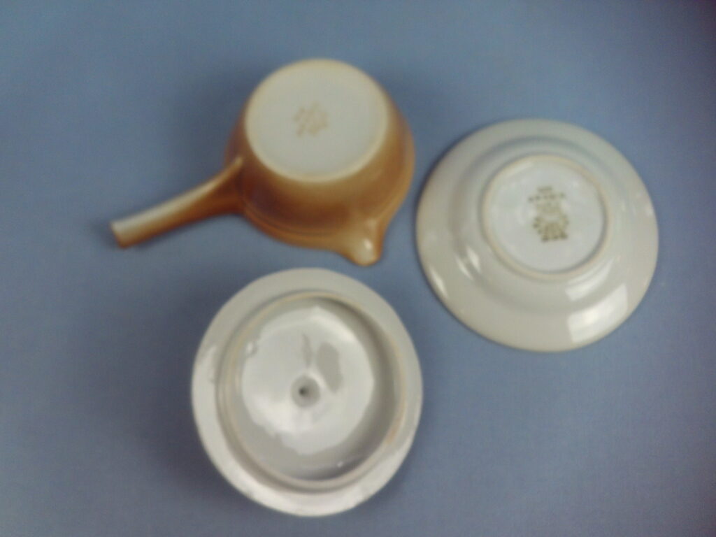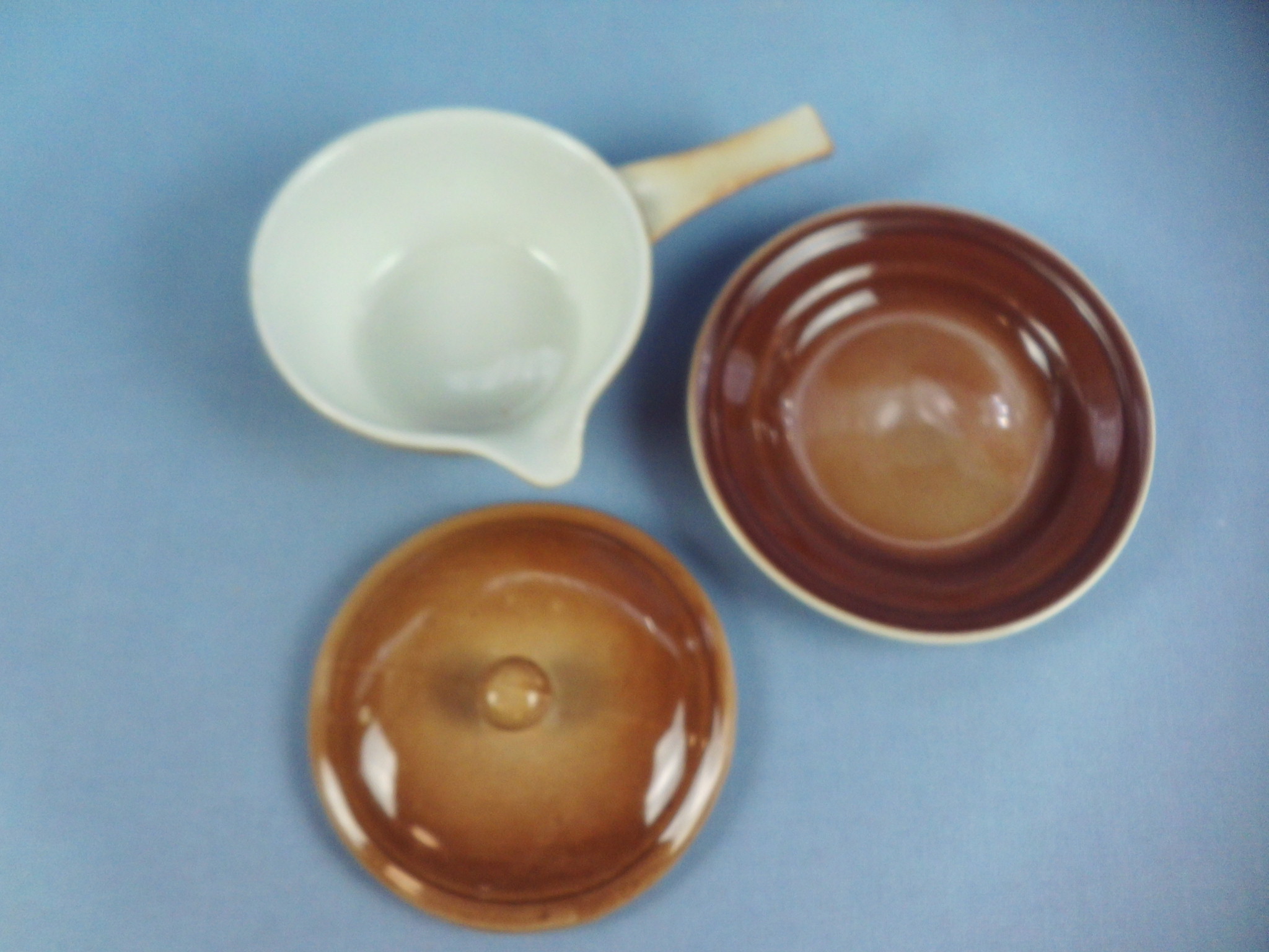 Arabian valmistama ruskea voisula-astia kannella ja aluslautasella. Tuote on ehjä ja muutenkin hyväkuntoinen.