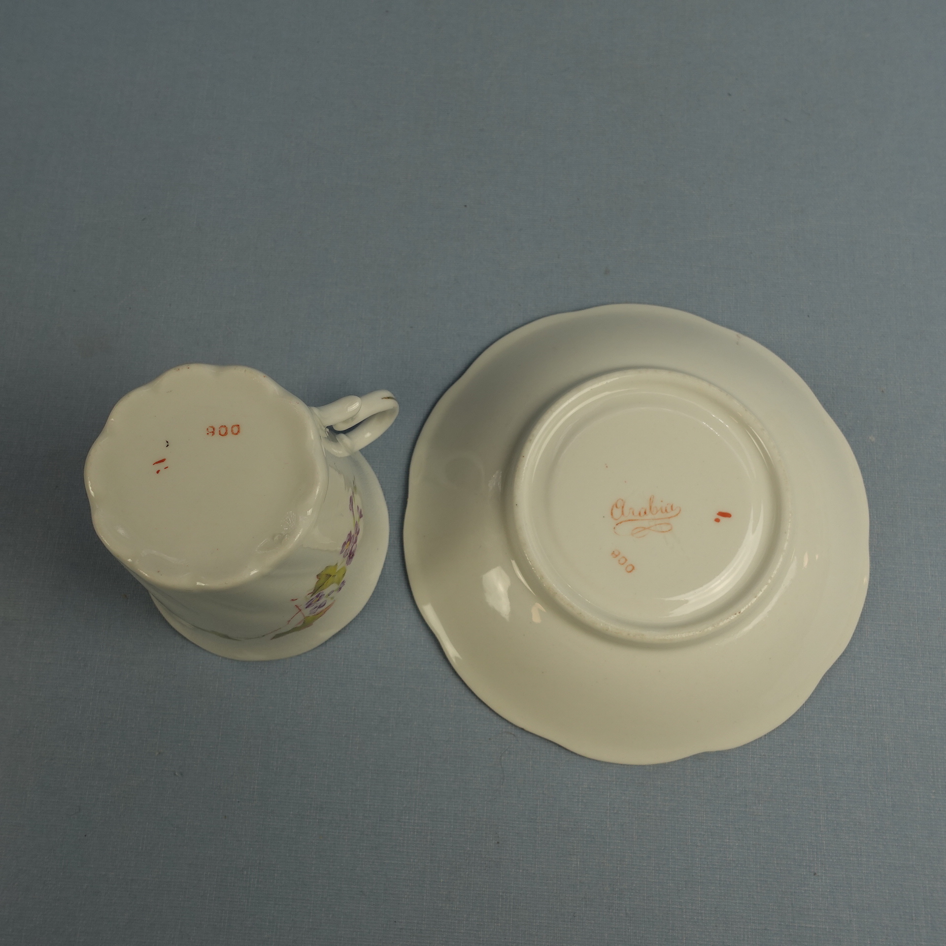 Arabian vanha kahvikuppi rotanhäntä-leimalla. Leimaa on käytetty v.1900-1920.