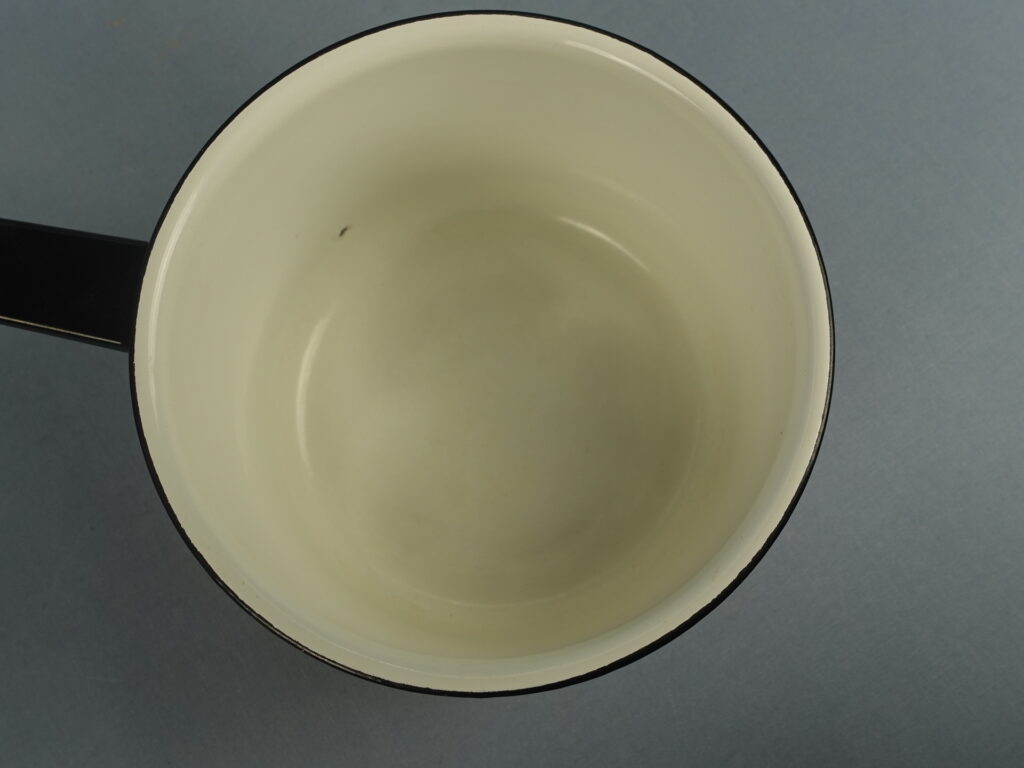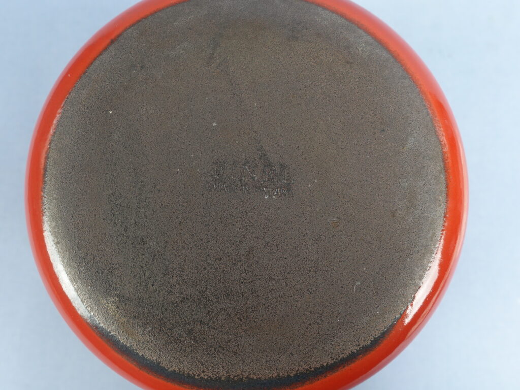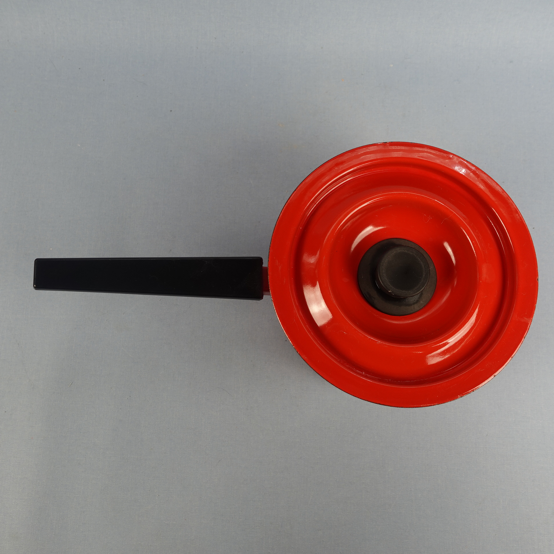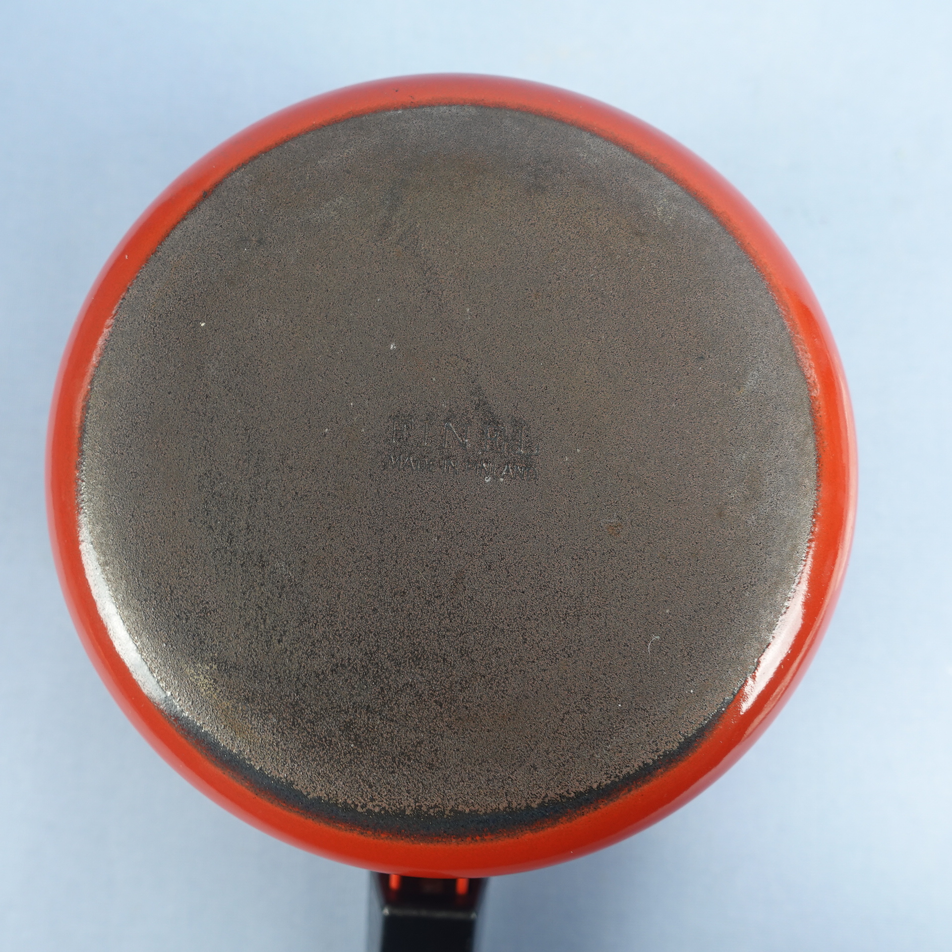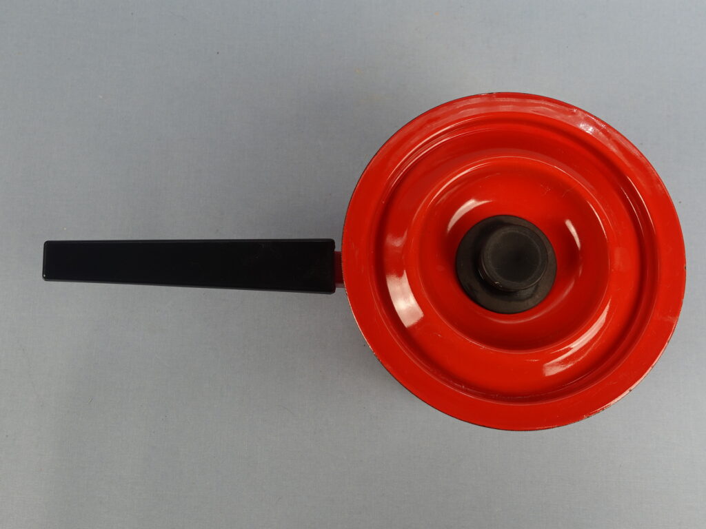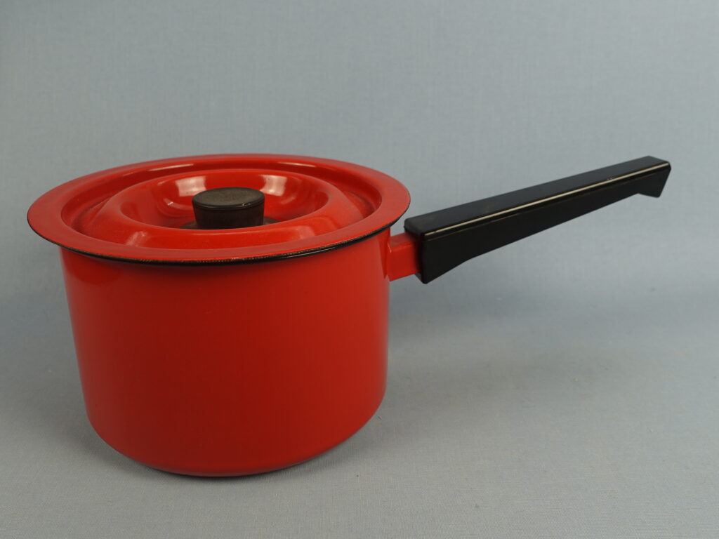 Finelin valmistama paksupohjainen punainen emalikasari mustalla bakeliittikahvalla. Kasari 1960/-70-luvun alun tuotantoa. Kasarin korkeus on ilman 10,3 cm, halkaisija 15,5 cm ja tilavuus 1,2 litraa. Myynnissä oleva kasari on kaikin puolin siisti ja hyväkuntoinen lukuunottamatta sisäpuolella olevaa pientä emalilohkeamaa kts. kuva.