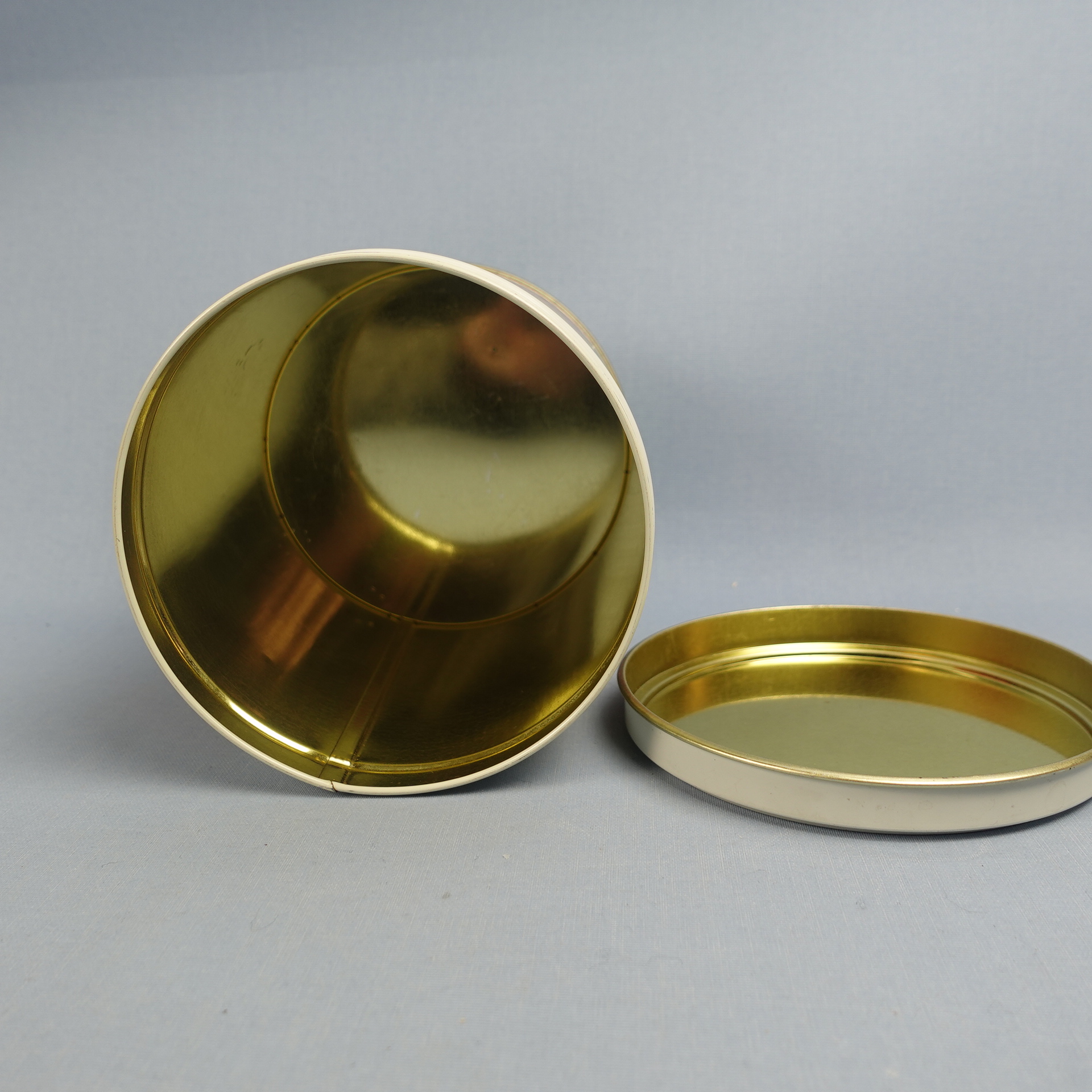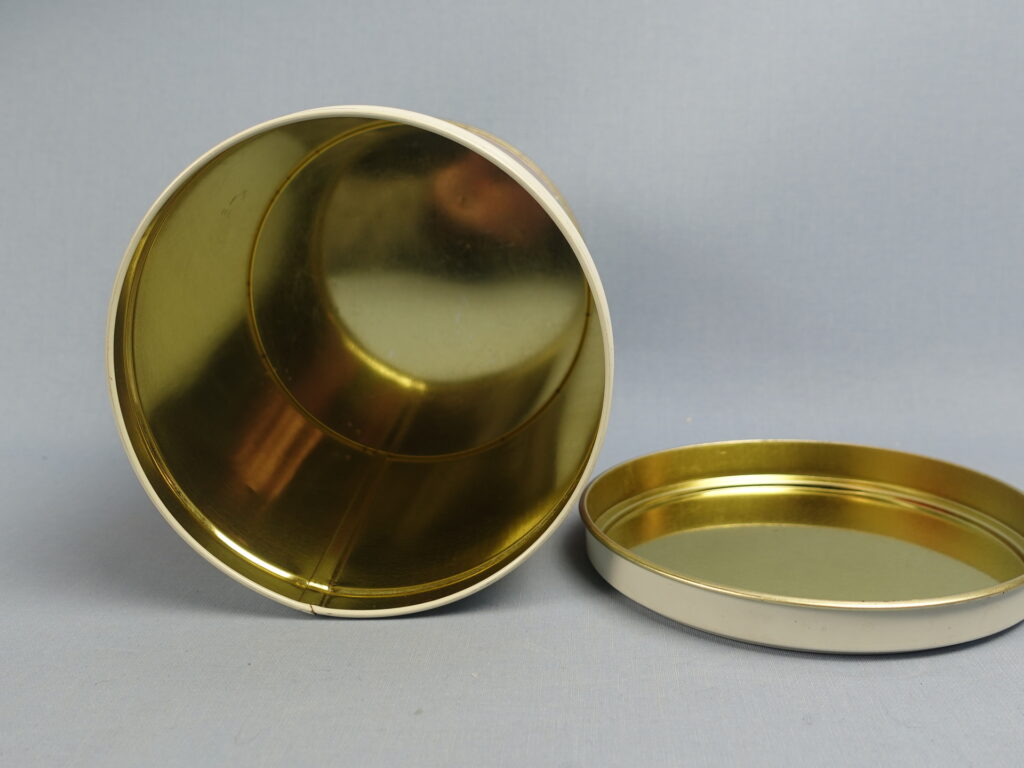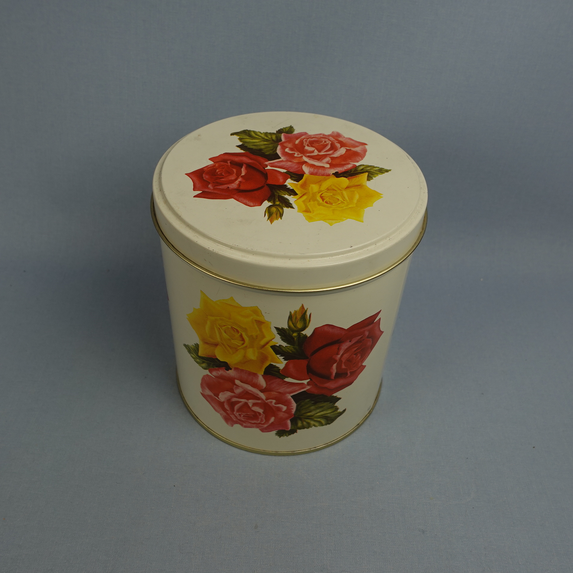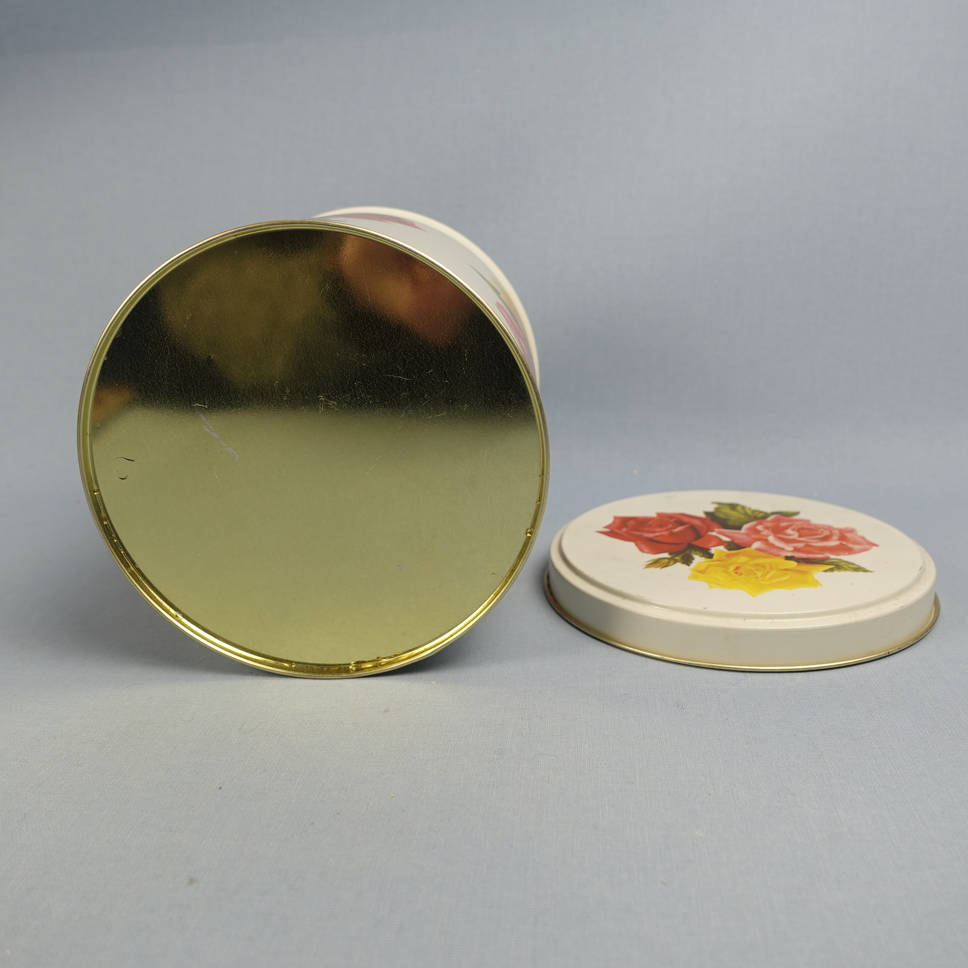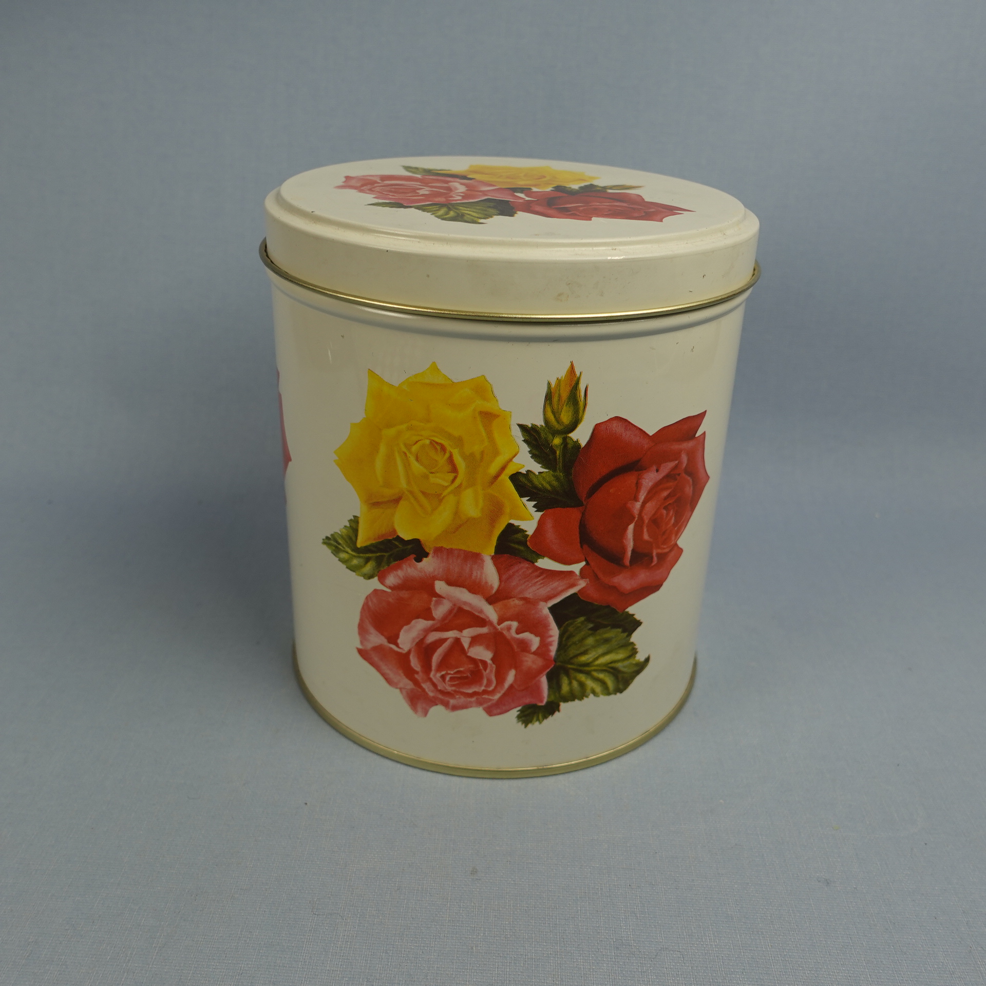 Suomalaisen GWS:n valmistama kauniilla ruusuilla koristeltu peltipurkki. Purkin korkeus on 14,5 cm ja halkaisija 13 cm. Myynnissä oleva purkki on erittäin hyväkuntoinen. Purkki on kolhuton, koristeet ovat naarmuttomat ja purkin sisäpinta on kiiltävä.
