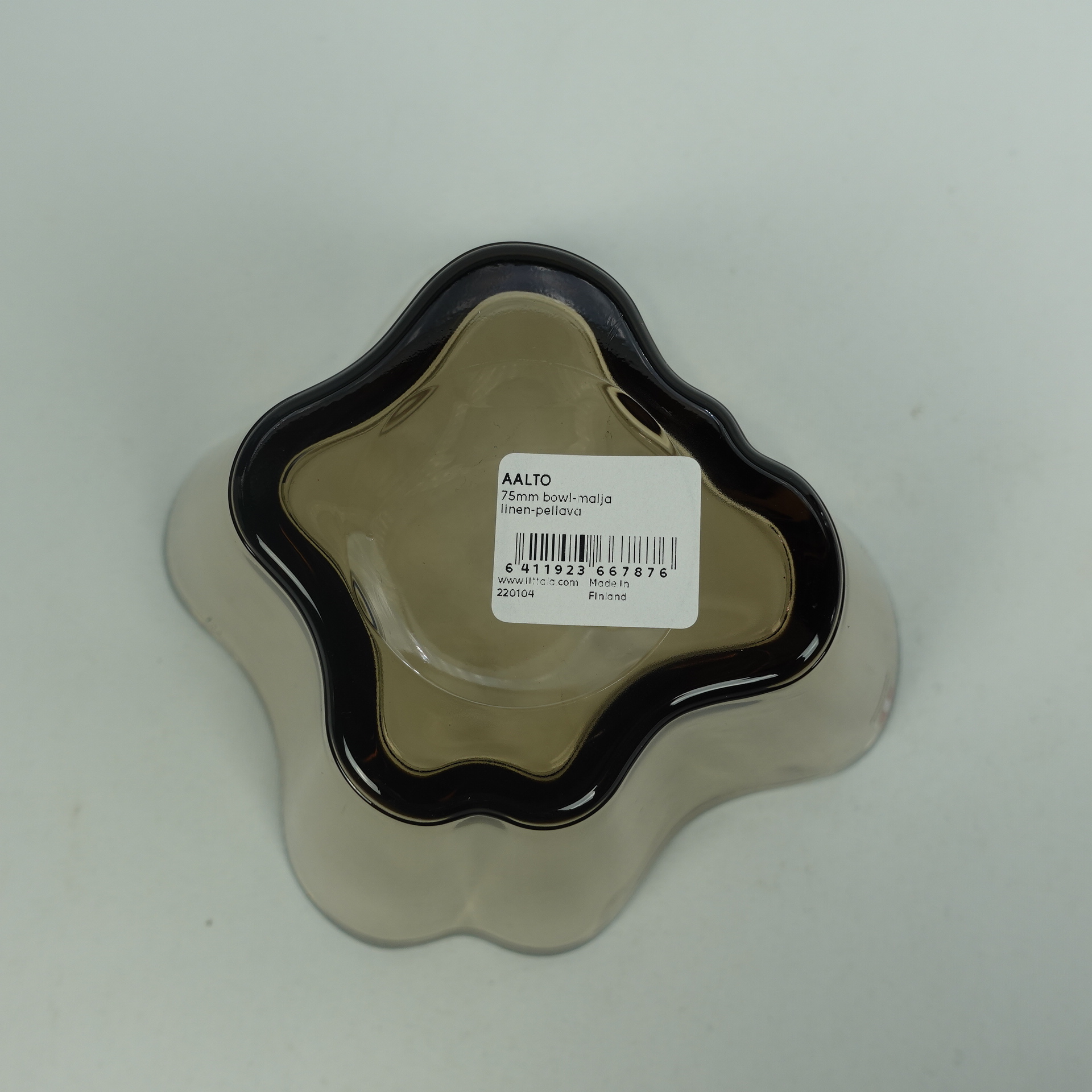 Iittalan Alvar Aalto collection-sarjaan kuuluva pellava Aalto kulho. Kulhon tuotanto päättyi v.2024. Kulhon korkeus on 75 mm ja halkaisija 140 mm. Myynnissä olevat kulhot ovat tarrallisia, ehjiä ja muutenkin hyväkuntoisia.