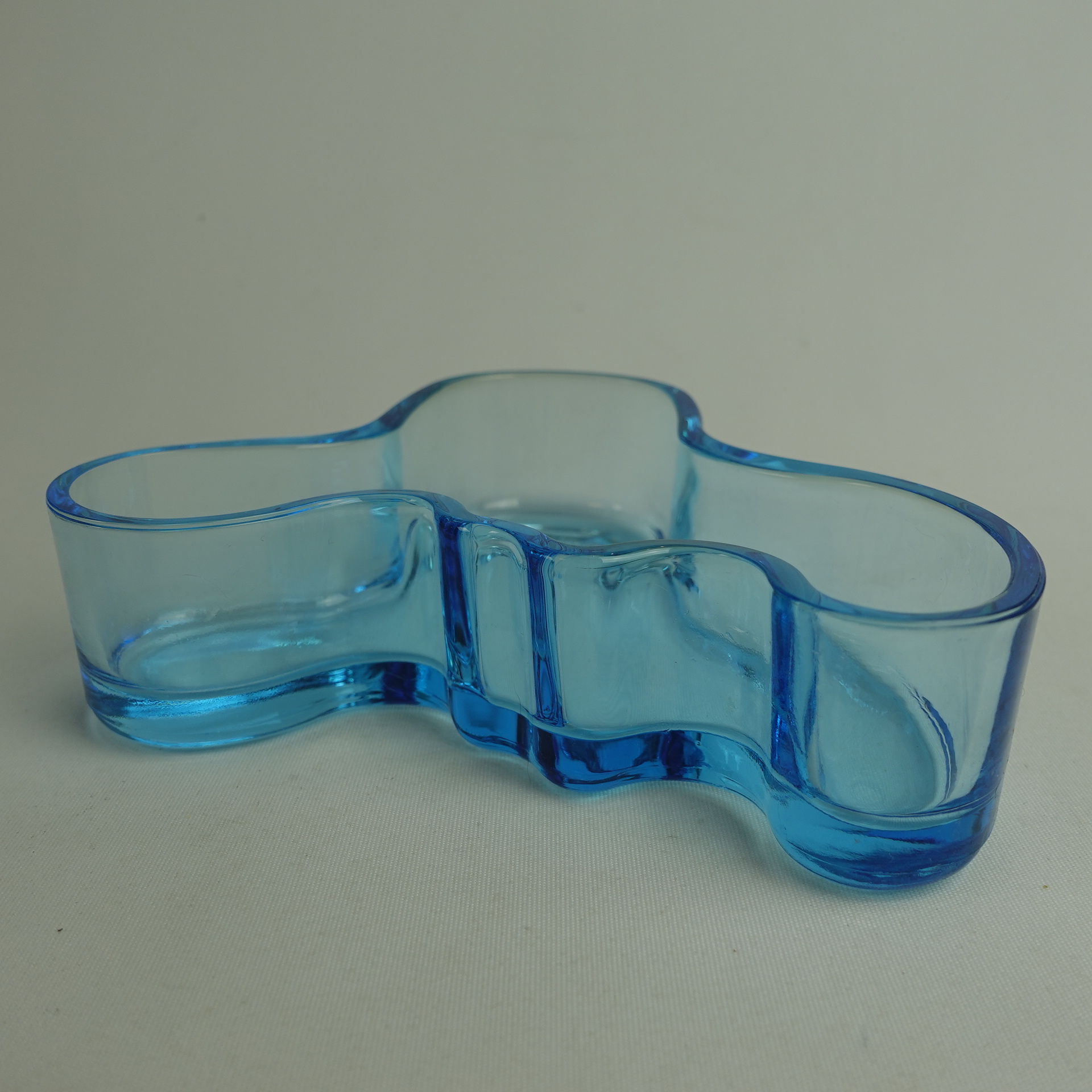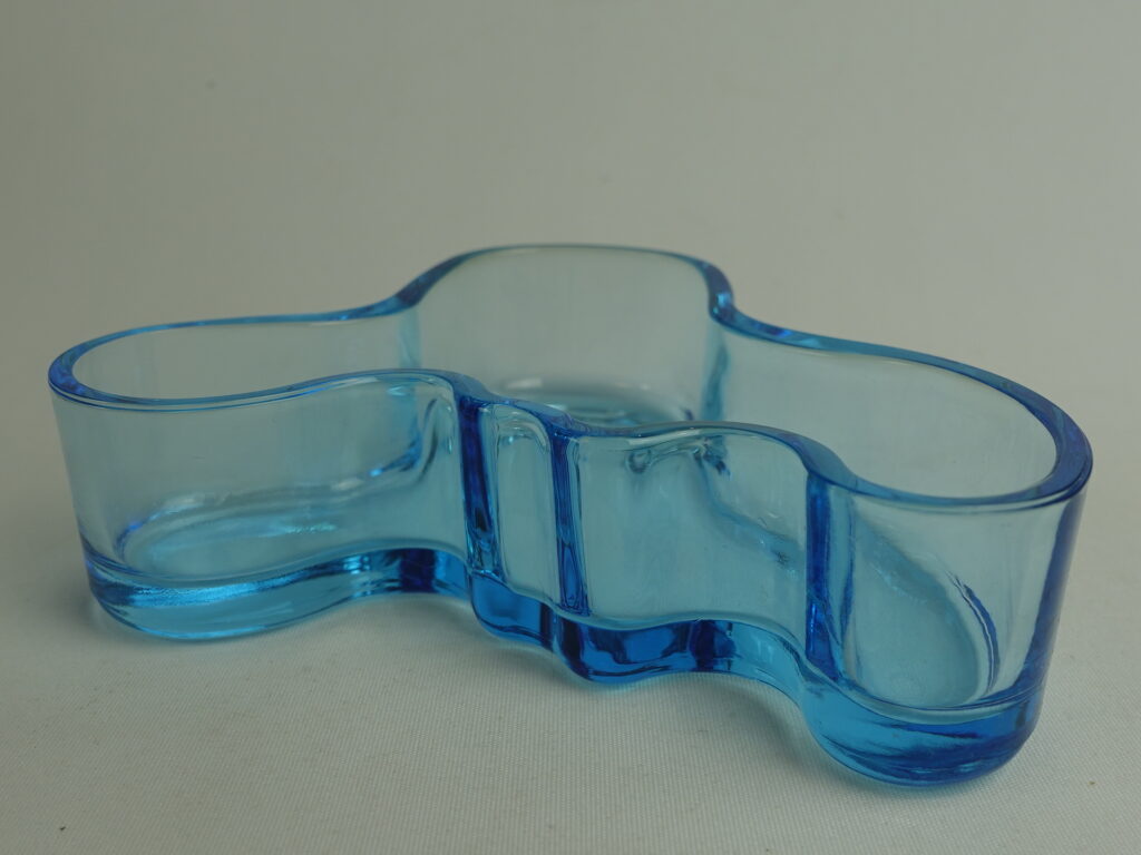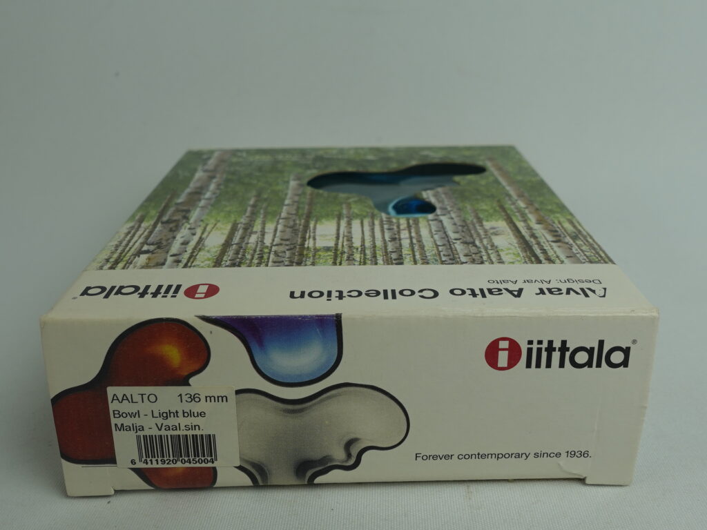 Iittalan Aalto Collection-sarjaan kuuluva vaaleansininen matala Aalto malja. Värin tuotanto päättyi v. 2007. Maljan koko on 136 mm x 40 mm. Pohjassa kohokirjaimin: Iittala. Myynnissä oleva malja on ehjä ja muutenkin hyväkuntoinen. Myös alkuperäinen myyntipakkaus on tallella.